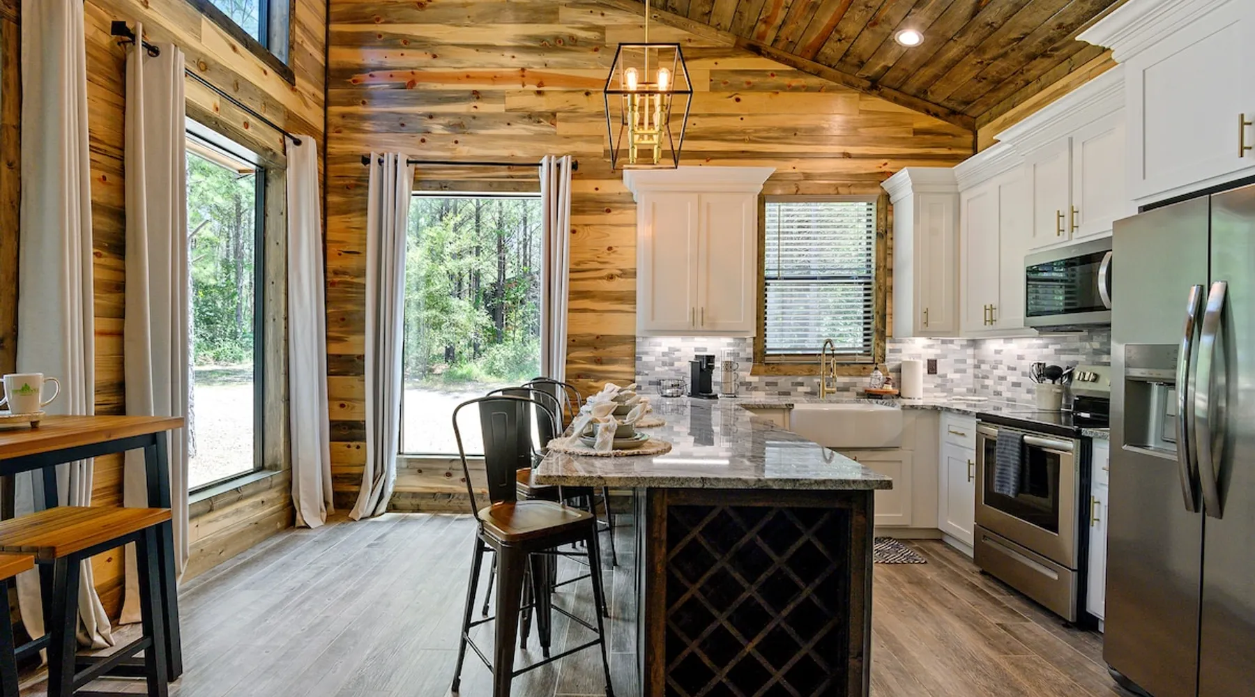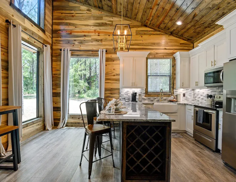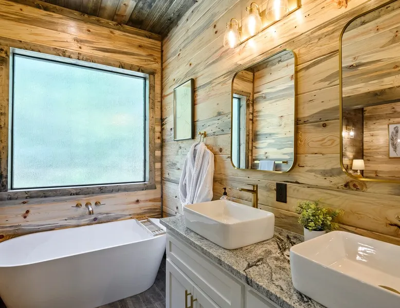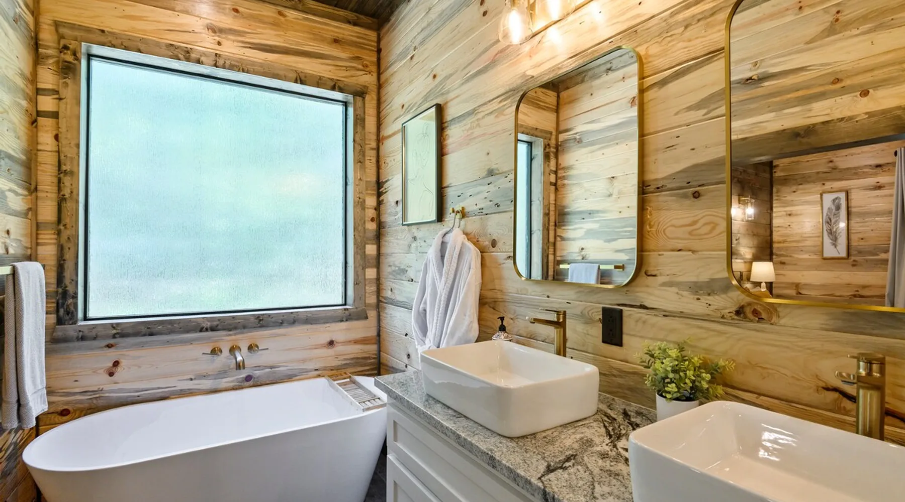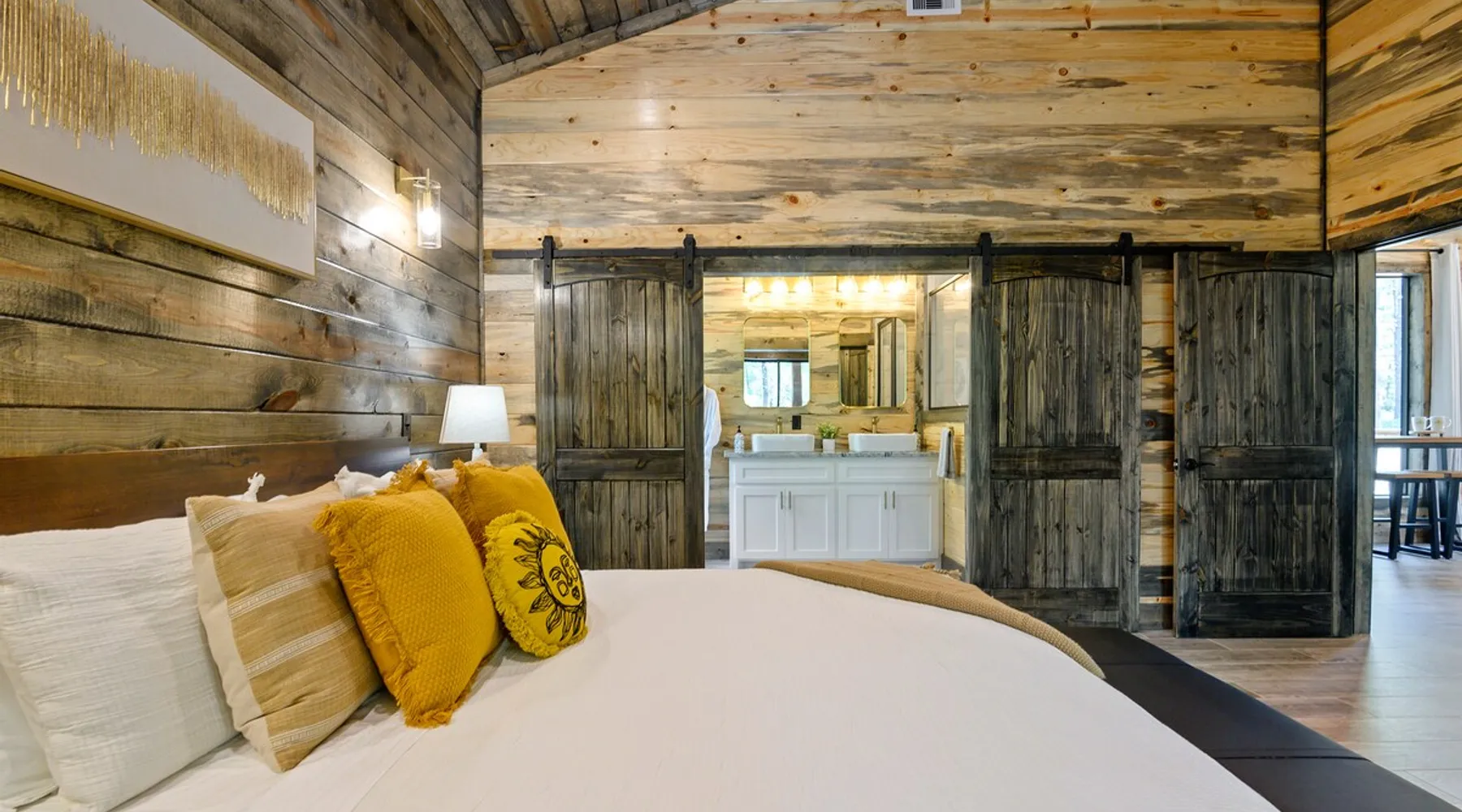 Whole Lotta Love - Bravo Cabin Rentals, LLC Experience a romantic getaway at Bravo Cabin Rentals' Whole Lotta Love cabin in Hochatown, offering a secluded and intimate setting among the towering pine trees. The single-bedroom cabin provides ultimate privacy for you and your loved one to enjoy a peaceful nature retreat. The space The cabin features a full-service kitchen equipped with all the necessary appliances for cooking, along with a dining area bathed in natural light where you can savor your meals together. After dinner, cozy up in the living room with a leather sofa, gas fireplace, and big-screen HDTV for a movie night by the crackling fire. The master bedroom boasts a king-size bed, nightstands, a bench, a closet with hangers, a big-screen HDTV, and direct access to the patio. The ensuite bathroom features double vanity sinks, a large soaker tub, and a walk-in shower with double shower heads for a luxurious experience. Outdoor living spaces include patio furniture for two, a gas fireplace, a big screen HDTV, swinging egg chairs, a gas grill, a hot tub, and a fire pit with seating for four, providing ample opportunities for relaxation and enjoyment during your stay at this charming cabin. General - Full-size washer and dryer available in the laundry closet. An EV outlet is available, but guests will need to provide their own charger. Gas fireplaces are seasonally available (October-May 15th). Any cancellations processed in which a refund is due to the guest will incur a $50 processing fee. The maximum occupancy for this cabin is 2, with no exceptions. Guest access Entire cabin Other things to note It is located near all the best restaurants, activities, and park amenities. It is just a short drive to Broken Bow Lake, Beavers Bend State Park, popular hiking trails, restaurants, breweries, wineries, and downtown Hochatown, and access to all the outdoors activities you want – boating, hiking, fly-fishing, kayaking, zip-lining, ATV trails, horseback riding, Cedar Creek Golf Course, Choctaw Landing Casino, mini-golf, helicopter rides, mining for gold, train rides, go-carts, and a great petting zoo. Don’t forget these items when you come to visit: • Rain gear and light jackets (Our average rainfall is 55″-60″ each year). • We have beautiful scenic trails; good hiking boots are a must. • Water shoes for our vast shorelines and streams. • Insect repellent, sunblock, and other first-aid supplies. • Coffee and filters – enjoy this while sitting on the deck in the early morning. • Condiments --A starter supply of coffee/filters, salt/pepper, paper towels, toilet paper, bath soap, dish soap, dishwasher tablets, trash bags, and laundry soap is provided. Still, guests may need to bring additional supplies. If we are missing something or you have a question we haven't answered, please feel free to reach out to us directly at Bravo Cabin Rentals and we will personally respond as soon as possible. We look forward to making your next vacation in Broken Bow/Hochatown one you won’t forget!