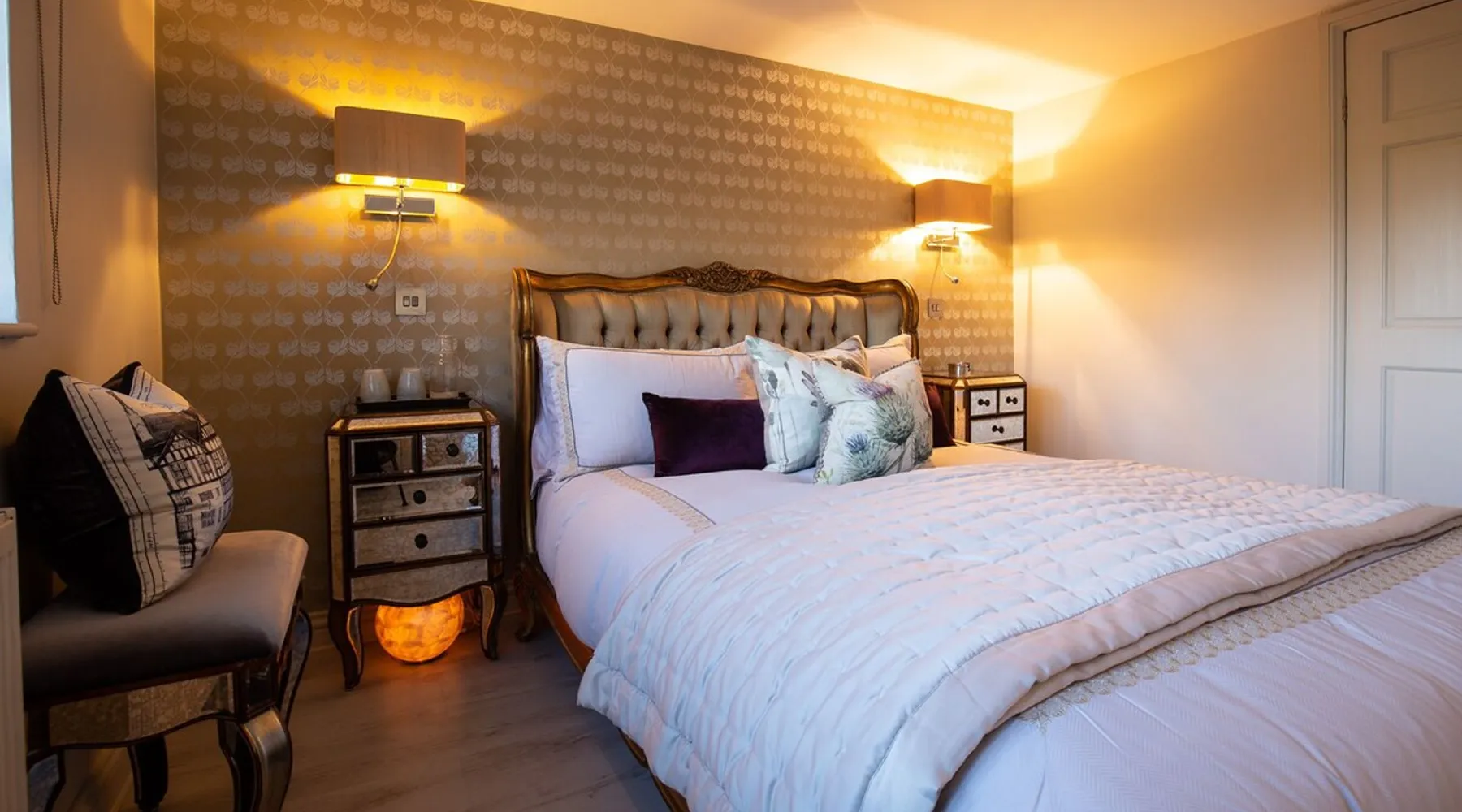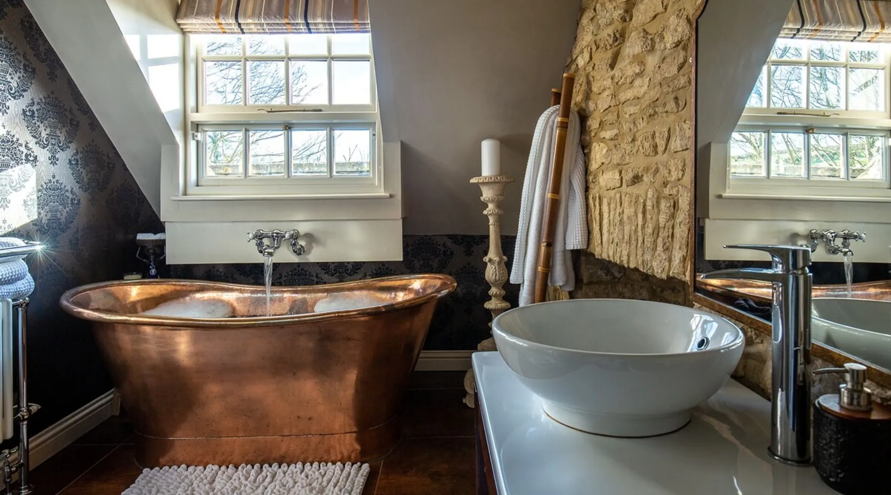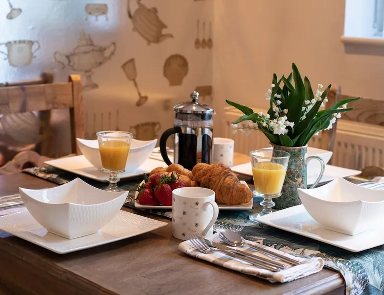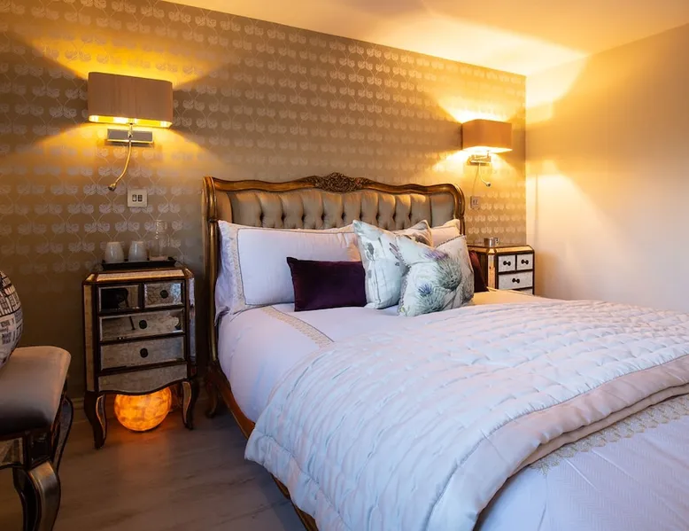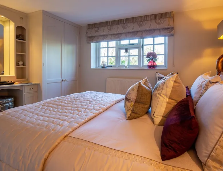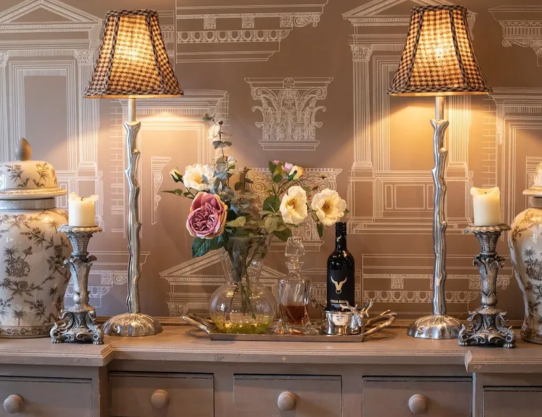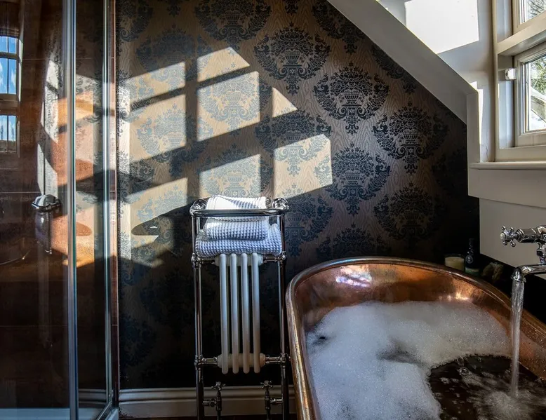 This chic Grade II* listed spa is a boutique escape ideally situated within walking distance of Stow-on-the-Wold and Lower Swell. In the living room is a wood burner in an exquisite wood surround and you will find a section of glass floor looking down to the source of the spa waters below. On the ground floor there is also a kitchen with a dining area where patio doors lead out to a garden. Across the first and second floor are two double bedrooms and a bathroom with a freestanding copper bath. The space Driving through the Cotswolds to your holiday destination you will pass by popular destinations like Stow-on-the-Wold, Upper and Lower Swell and Bourton-on-the-Water. When you arrive at Pineapple Spa Cottage the breathtaking carved stone facade is a reflection of the beauty you will find within. It is debated that the property was designed by Samuel Pepys Cockerell, the architect behind Sezincote House. The front door opens into the living room with a large ornate mirror, wood burner in a detailed surround and a luxurious sparkling chandelier in the high ceiling above. A comfortable sofa and armchair gather around the fire providing a comfortable place to enjoy an evening drink. An open stone wall showcases the pineapple font through an archway as you pass through to the rest of the cottage. The well-equipped kitchen has an electric AGA, a Belfast sink and plenty of space to prepare delicious meals to be enjoyed around the four-seater dining table. Doors open from here to the lawned garden which you can climb to enjoy beautiful Cotswold country views. From the living room a number of steps lead you to the lavish bedrooms which have been furnished with a high attention to detail. The bathroom at Pineapple Spa Cottage is a fantastic addition where you will find yourself spending many hours. The freestanding reclaimed copper bath makes you feel like royalty as you soak away your worries. With off-road parking for two cars and unmissable sights such as Sezincote House and Gardens, Chastleton House and the towns and villages of Chipping Norton, Broadway and Cheltenham a bit further afield this is the perfect Cotswold getaway. Ground Floor Sitting Room: Full of unique features and eye-catching décor the first thing that takes your eye is the pineapple water fountain at the end of the room. No longer connected to the spa supply, many women over the years have visited this tiny spa for the health benefits of the waters here. A glass panel in the corner of the room shows the spa below and if you listen carefully you can hear the water trickling. There is comfortable seating for four, a wood burner, artwork showing the spa exterior and an upcycled dresser which used to house chickens. Full of character this sitting room is a beautiful space to spend your evenings. Kitchen/Diner: Two steps from the living room take you down to the kitchen/diner passing a handy WC on the left. The kitchen has enough space to prepare meals with an electric AGA and all the modern conveniences you could need. The dining table seats four in front of patio doors which open to the garden and patio. First Floor In front of the pineapple spa font, stairs curve around to the first bedroom. Bedroom One: The only room on this floor, this first bedroom is a king-size double with an elegant gold bedframe and luxuriously plump bedding. Built-in wardrobes hiding a pull-out TV and a dressing table with carved pineapple details around the mirror is perfect for getting ready for a meal out. There are mirrored bedside tables and wall lights to each side of the bed. Overlooking the garden this quiet room is a peaceful retreat. Second Floor More stairs take you up to the second-floor landing with a small bench, before there are three steps down to the second bedroom and the bathroom. Bedroom Two: In the eaves at the front of the cottage, this king-size double room has an open stone wall, exposed beams and a wooden floor. Decorated in a tranquil blue with a selection of books you can relax on the armchair with a cup of coffee. A bedside table and built-in dress offer storage and there is a lamp and TV. The ornate framed mirror adds a touch of luxury to this room. Bathroom: Completing this cottage is a stunning bathroom with a freestanding copper bath, separate shower, bowl sink unit and WC. The reclaimed bath holds its heat so you can spend hours here away from the real world. An old fireplace surround and open stone wall add a grandeur to this room. Outside A patio outside the kitchen has a dining table for four and leads up to a sloped lawn which looks out across surrounding countryside and a lake, above which the sunsets are spectacular. Opposite the cottage there is private parking for two cars. Guest access Guests have full access to the house and garden. Other things to note • Book with us to get exclusive discounts to top attractions and experiences. • Pineapple Spa Cottage is an adult-only property and does not accept children or infants. • This property does not accept dogs or other pets. • There are a number of internal steps on each floor.