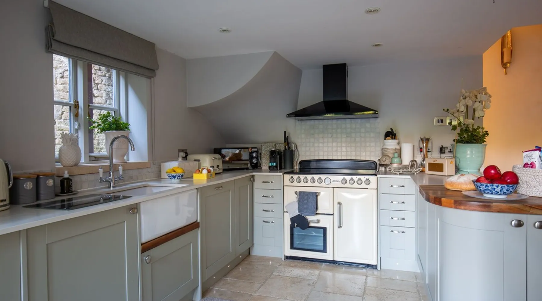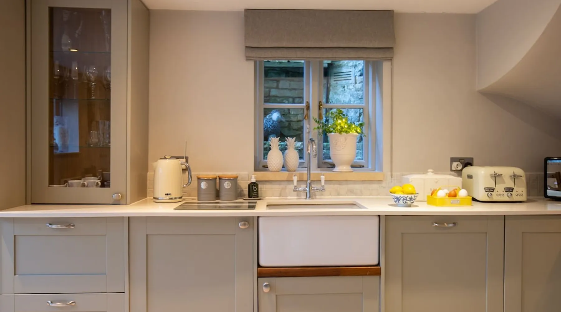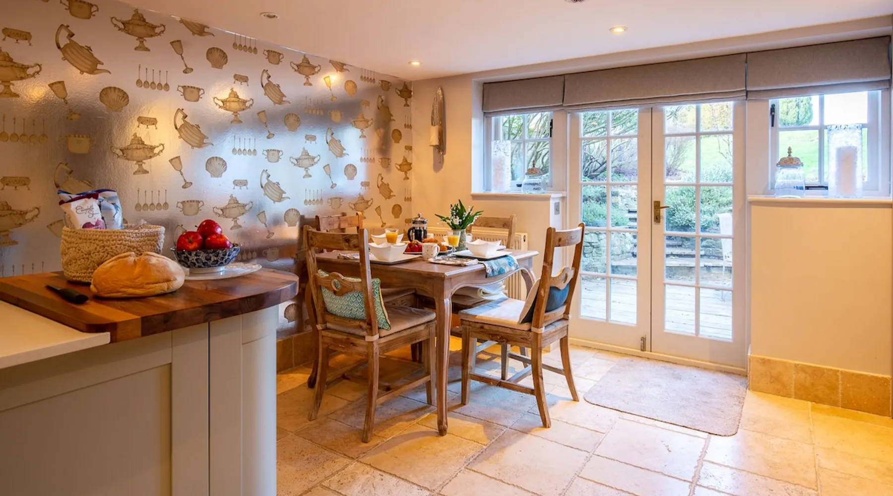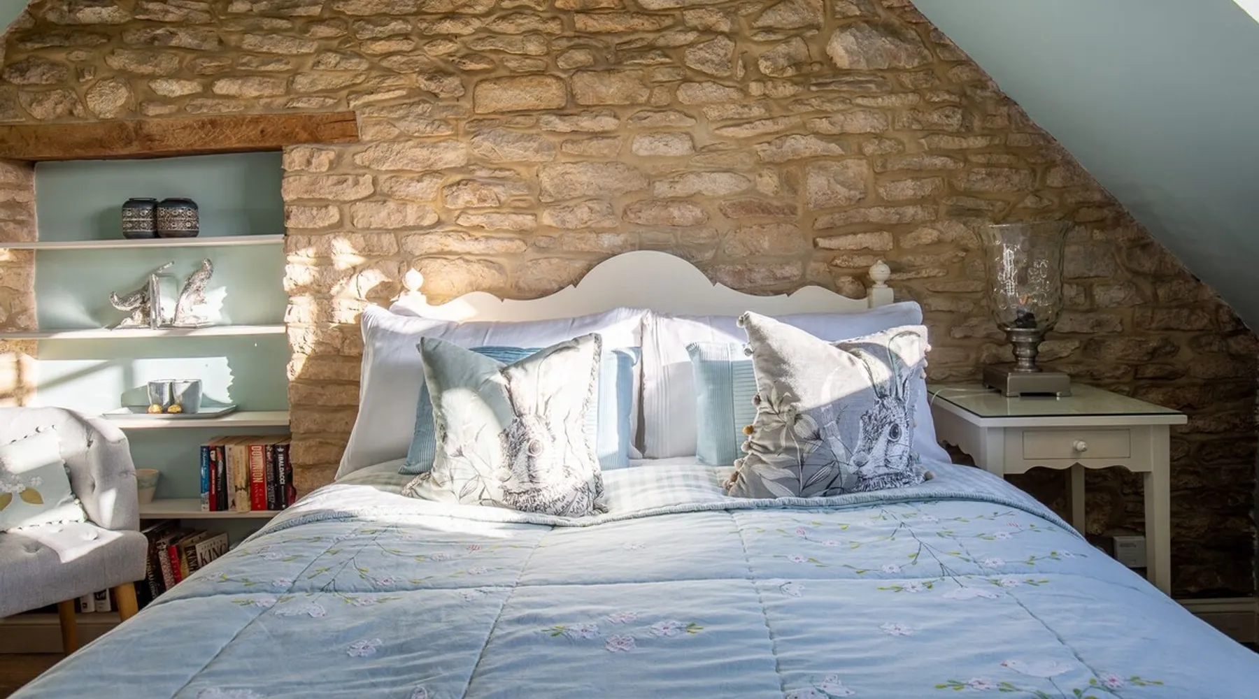 This chic Grade II* listed spa is a boutique escape ideally situated within walking distance of Stow-on-the-Wold and Lower Swell. In the living room is a wood burner in an exquisite wood surround and you will find a section of glass floor looking down to the source of the spa waters below. On the ground floor there is also a kitchen with a dining area where patio doors lead out to a garden. Across the first and second floor are two double bedrooms and a bathroom with a freestanding copper bath. The space Driving through the Cotswolds to your holiday destination you will pass by popular destinations like Stow-on-the-Wold, Upper and Lower Swell and Bourton-on-the-Water. When you arrive at Pineapple Spa Cottage the breathtaking carved stone facade is a reflection of the beauty you will find within. It is debated that the property was designed by Samuel Pepys Cockerell, the architect behind Sezincote House. The front door opens into the living room with a large ornate mirror, wood burner in a detailed surround and a luxurious sparkling chandelier in the high ceiling above. A comfortable sofa and armchair gather around the fire providing a comfortable place to enjoy an evening drink. An open stone wall showcases the pineapple font through an archway as you pass through to the rest of the cottage. The well-equipped kitchen has an electric AGA, a Belfast sink and plenty of space to prepare delicious meals to be enjoyed around the four-seater dining table. Doors open from here to the lawned garden which you can climb to enjoy beautiful Cotswold country views. From the living room a number of steps lead you to the lavish bedrooms which have been furnished with a high attention to detail. The bathroom at Pineapple Spa Cottage is a fantastic addition where you will find yourself spending many hours. The freestanding reclaimed copper bath makes you feel like royalty as you soak away your worries. With off-road parking for two cars and unmissable sights such as Sezincote House and Gardens, Chastleton House and the towns and villages of Chipping Norton, Broadway and Cheltenham a bit further afield this is the perfect Cotswold getaway. Ground Floor Sitting Room: Full of unique features and eye-catching décor the first thing that takes your eye is the pineapple water fountain at the end of the room. No longer connected to the spa supply, many women over the years have visited this tiny spa for the health benefits of the waters here. A glass panel in the corner of the room shows the spa below and if you listen carefully you can hear the water trickling. There is comfortable seating for four, a wood burner, artwork showing the spa exterior and an upcycled dresser which used to house chickens. Full of character this sitting room is a beautiful space to spend your evenings. Kitchen/Diner: Two steps from the living room take you down to the kitchen/diner passing a handy WC on the left. The kitchen has enough space to prepare meals with an electric AGA and all the modern conveniences you could need. The dining table seats four in front of patio doors which open to the garden and patio. First Floor In front of the pineapple spa font, stairs curve around to the first bedroom. Bedroom One: The only room on this floor, this first bedroom is a king-size double with an elegant gold bedframe and luxuriously plump bedding. Built-in wardrobes hiding a pull-out TV and a dressing table with carved pineapple details around the mirror is perfect for getting ready for a meal out. There are mirrored bedside tables and wall lights to each side of the bed. Overlooking the garden this quiet room is a peaceful retreat. Second Floor More stairs take you up to the second-floor landing with a small bench, before there are three steps down to the second bedroom and the bathroom. Bedroom Two: In the eaves at the front of the cottage, this king-size double room has an open stone wall, exposed beams and a wooden floor. Decorated in a tranquil blue with a selection of books you can relax on the armchair with a cup of coffee. A bedside table and built-in dress offer storage and there is a lamp and TV. The ornate framed mirror adds a touch of luxury to this room. Bathroom: Completing this cottage is a stunning bathroom with a freestanding copper bath, separate shower, bowl sink unit and WC. The reclaimed bath holds its heat so you can spend hours here away from the real world. An old fireplace surround and open stone wall add a grandeur to this room. Outside A patio outside the kitchen has a dining table for four and leads up to a sloped lawn which looks out across surrounding countryside and a lake, above which the sunsets are spectacular. Opposite the cottage there is private parking for two cars. Guest access Guests have full access to the house and garden. Other things to note • Book with us to get exclusive discounts to top attractions and experiences. • Pineapple Spa Cottage is an adult-only property and does not accept children or infants. • This property does not accept dogs or other pets. • There are a number of internal steps on each floor.