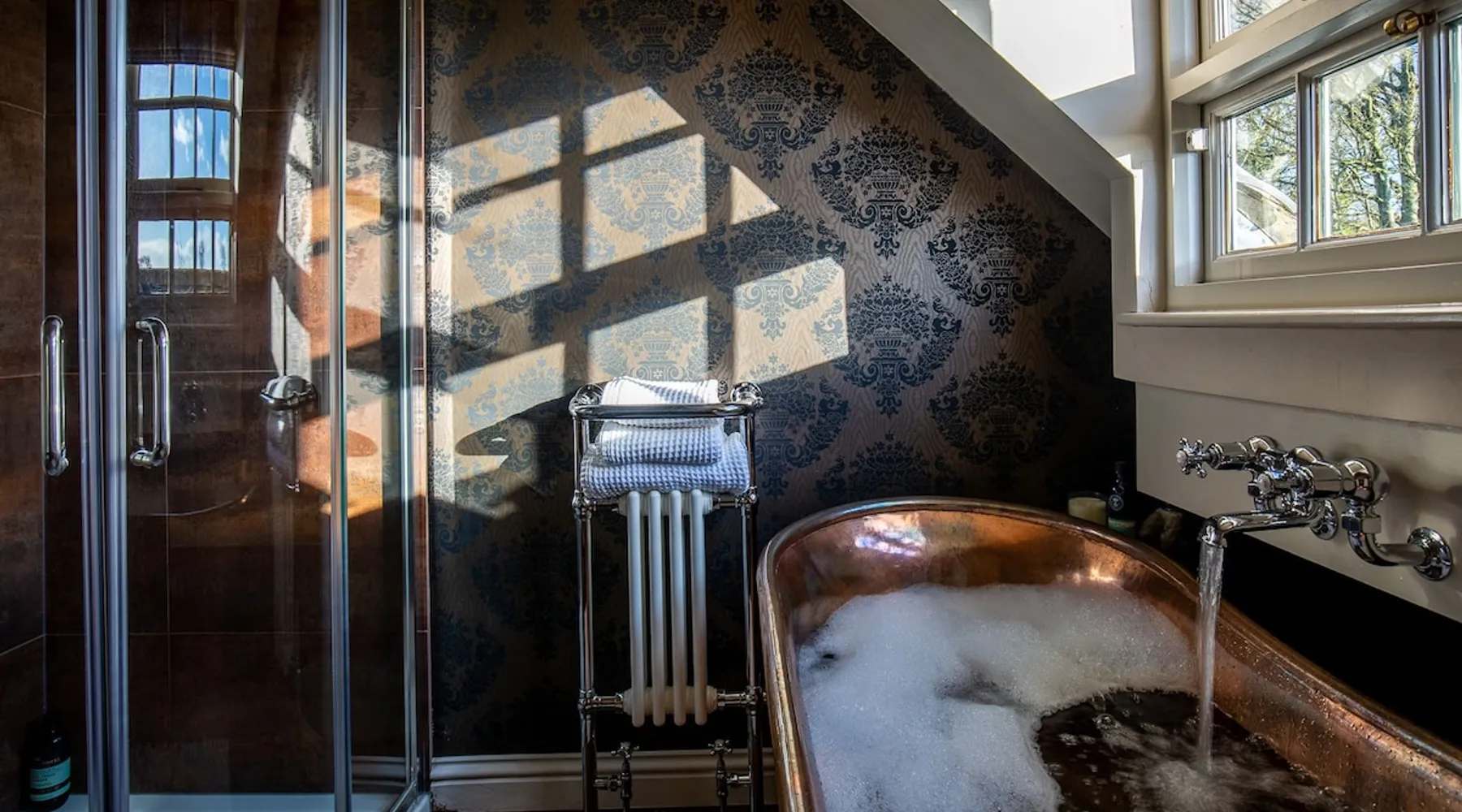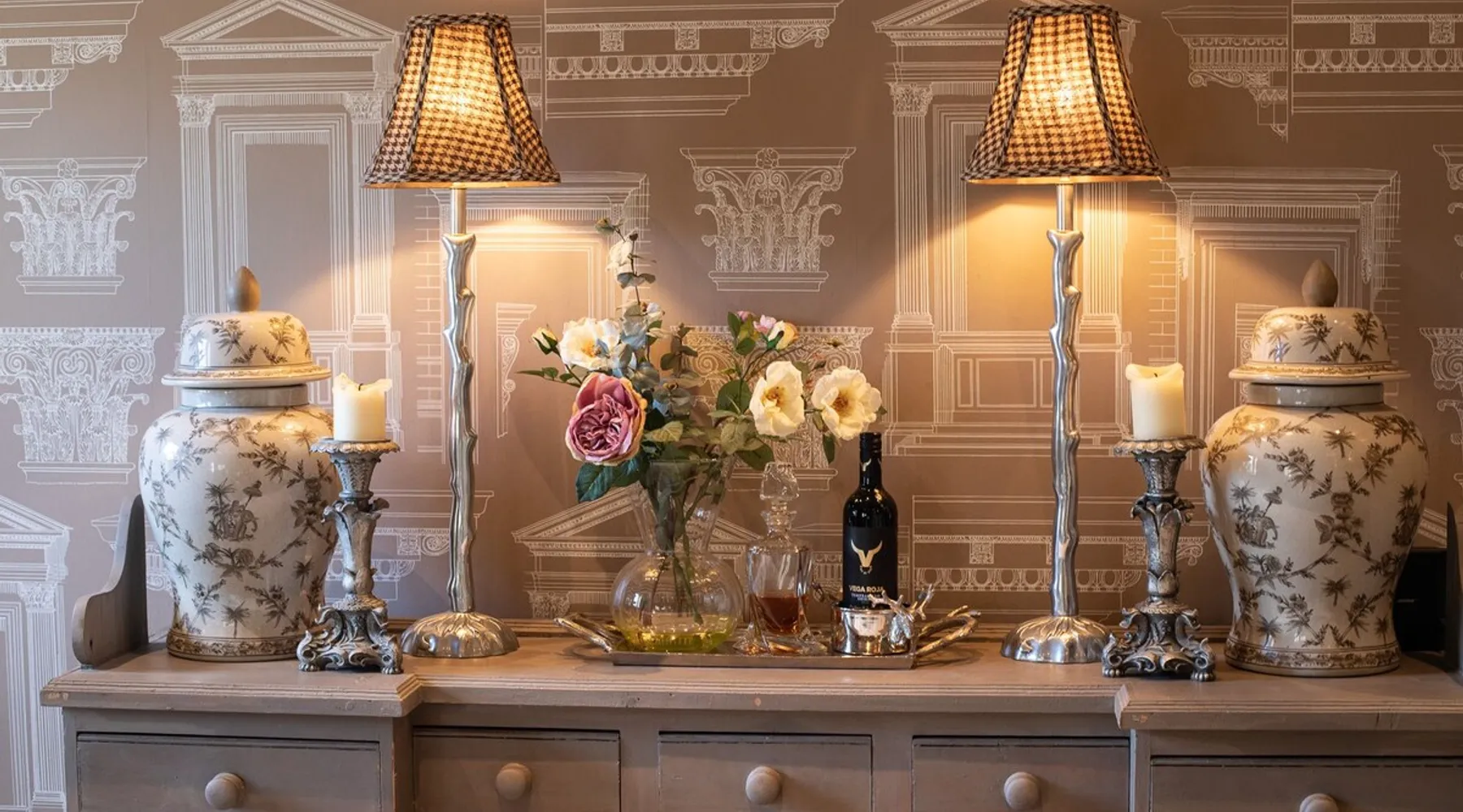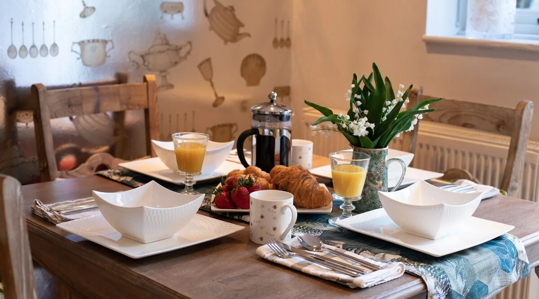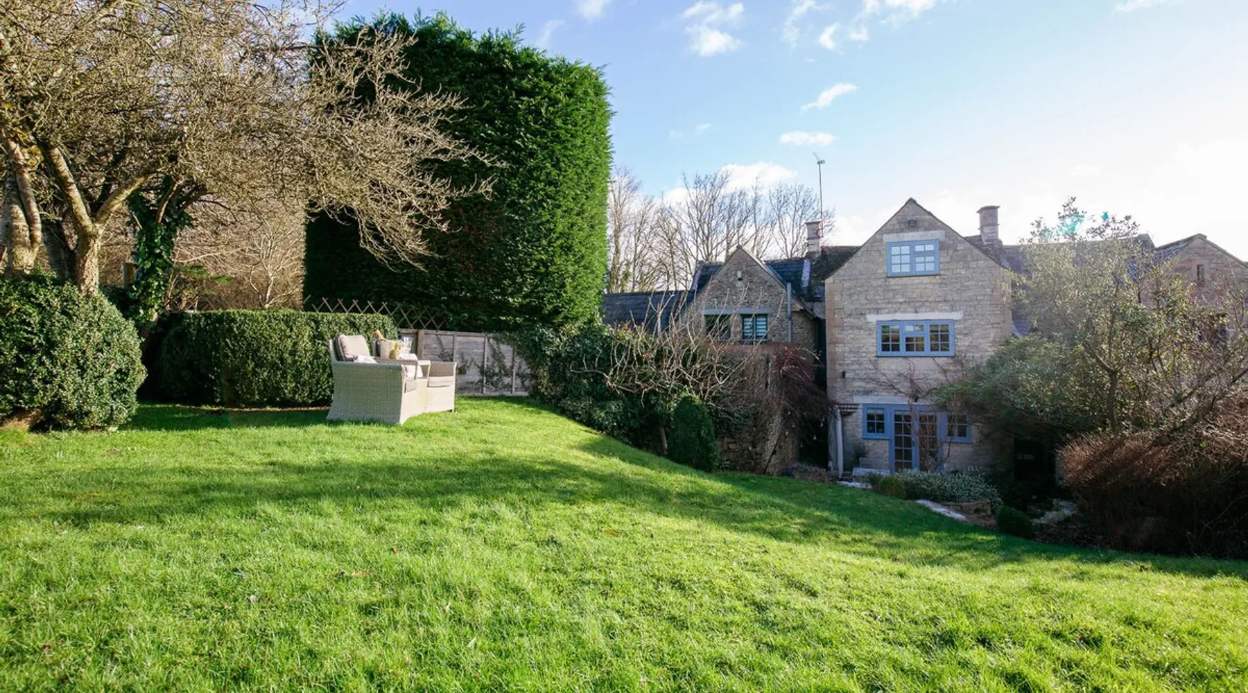 This chic Grade II* listed spa is a boutique escape ideally situated within walking distance of Stow-on-the-Wold and Lower Swell. In the living room is a wood burner in an exquisite wood surround and you will find a section of glass floor looking down to the source of the spa waters below. On the ground floor there is also a kitchen with a dining area where patio doors lead out to a garden. Across the first and second floor are two double bedrooms and a bathroom with a freestanding copper bath. The space Driving through the Cotswolds to your holiday destination you will pass by popular destinations like Stow-on-the-Wold, Upper and Lower Swell and Bourton-on-the-Water. When you arrive at Pineapple Spa Cottage the breathtaking carved stone facade is a reflection of the beauty you will find within. It is debated that the property was designed by Samuel Pepys Cockerell, the architect behind Sezincote House. The front door opens into the living room with a large ornate mirror, wood burner in a detailed surround and a luxurious sparkling chandelier in the high ceiling above. A comfortable sofa and armchair gather around the fire providing a comfortable place to enjoy an evening drink. An open stone wall showcases the pineapple font through an archway as you pass through to the rest of the cottage. The well-equipped kitchen has an electric AGA, a Belfast sink and plenty of space to prepare delicious meals to be enjoyed around the four-seater dining table. Doors open from here to the lawned garden which you can climb to enjoy beautiful Cotswold country views. From the living room a number of steps lead you to the lavish bedrooms which have been furnished with a high attention to detail. The bathroom at Pineapple Spa Cottage is a fantastic addition where you will find yourself spending many hours. The freestanding reclaimed copper bath makes you feel like royalty as you soak away your worries. With off-road parking for two cars and unmissable sights such as Sezincote House and Gardens, Chastleton House and the towns and villages of Chipping Norton, Broadway and Cheltenham a bit further afield this is the perfect Cotswold getaway. Ground Floor Sitting Room: Full of unique features and eye-catching décor the first thing that takes your eye is the pineapple water fountain at the end of the room. No longer connected to the spa supply, many women over the years have visited this tiny spa for the health benefits of the waters here. A glass panel in the corner of the room shows the spa below and if you listen carefully you can hear the water trickling. There is comfortable seating for four, a wood burner, artwork showing the spa exterior and an upcycled dresser which used to house chickens. Full of character this sitting room is a beautiful space to spend your evenings. Kitchen/Diner: Two steps from the living room take you down to the kitchen/diner passing a handy WC on the left. The kitchen has enough space to prepare meals with an electric AGA and all the modern conveniences you could need. The dining table seats four in front of patio doors which open to the garden and patio. First Floor In front of the pineapple spa font, stairs curve around to the first bedroom. Bedroom One: The only room on this floor, this first bedroom is a king-size double with an elegant gold bedframe and luxuriously plump bedding. Built-in wardrobes hiding a pull-out TV and a dressing table with carved pineapple details around the mirror is perfect for getting ready for a meal out. There are mirrored bedside tables and wall lights to each side of the bed. Overlooking the garden this quiet room is a peaceful retreat. Second Floor More stairs take you up to the second-floor landing with a small bench, before there are three steps down to the second bedroom and the bathroom. Bedroom Two: In the eaves at the front of the cottage, this king-size double room has an open stone wall, exposed beams and a wooden floor. Decorated in a tranquil blue with a selection of books you can relax on the armchair with a cup of coffee. A bedside table and built-in dress offer storage and there is a lamp and TV. The ornate framed mirror adds a touch of luxury to this room. Bathroom: Completing this cottage is a stunning bathroom with a freestanding copper bath, separate shower, bowl sink unit and WC. The reclaimed bath holds its heat so you can spend hours here away from the real world. An old fireplace surround and open stone wall add a grandeur to this room. Outside A patio outside the kitchen has a dining table for four and leads up to a sloped lawn which looks out across surrounding countryside and a lake, above which the sunsets are spectacular. Opposite the cottage there is private parking for two cars. Guest access Guests have full access to the house and garden. Other things to note • Book with us to get exclusive discounts to top attractions and experiences. • Pineapple Spa Cottage is an adult-only property and does not accept children or infants. • This property does not accept dogs or other pets. • There are a number of internal steps on each floor.