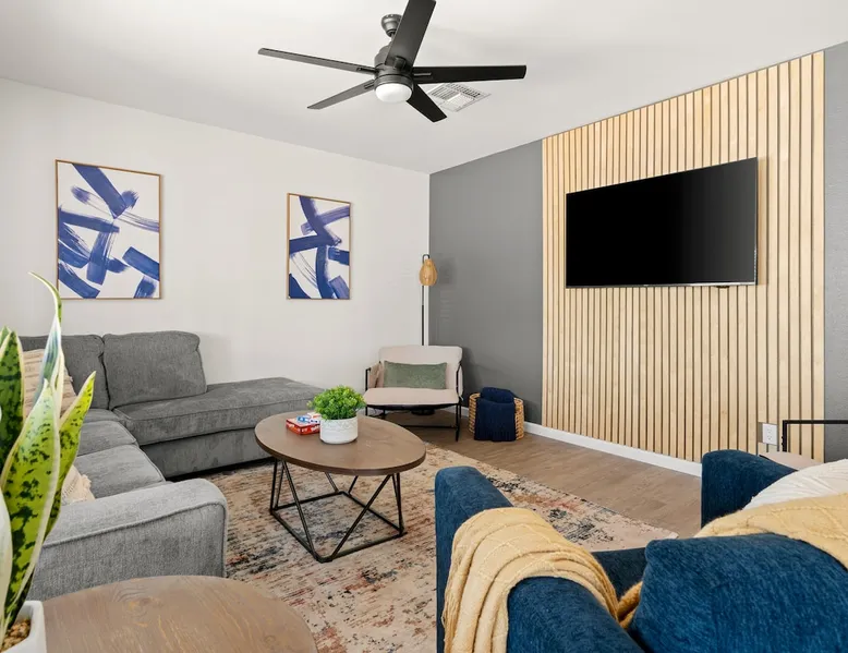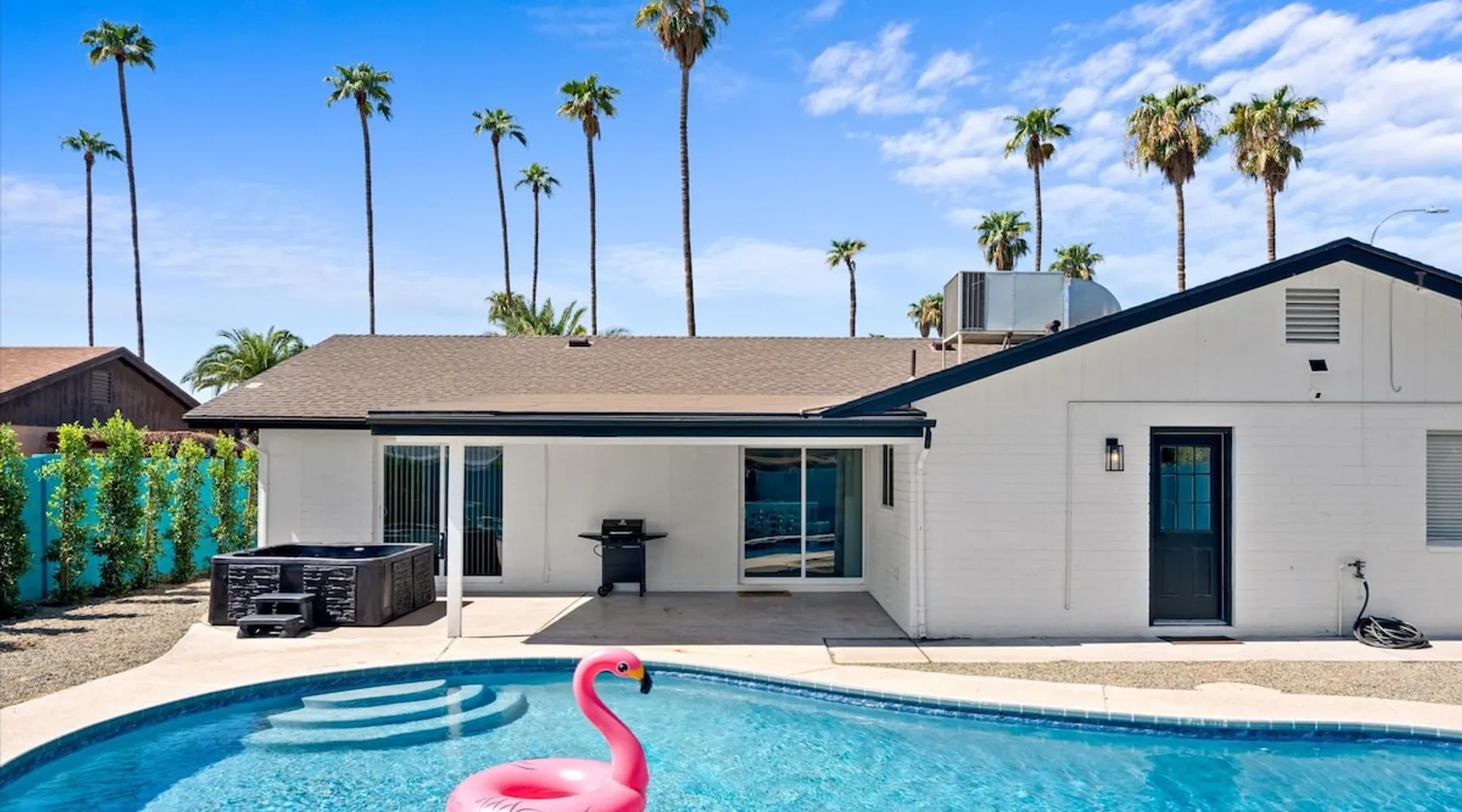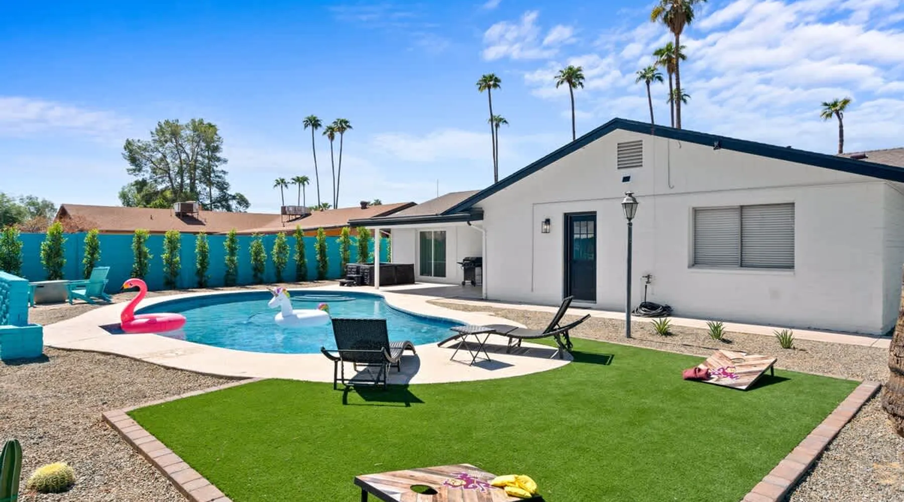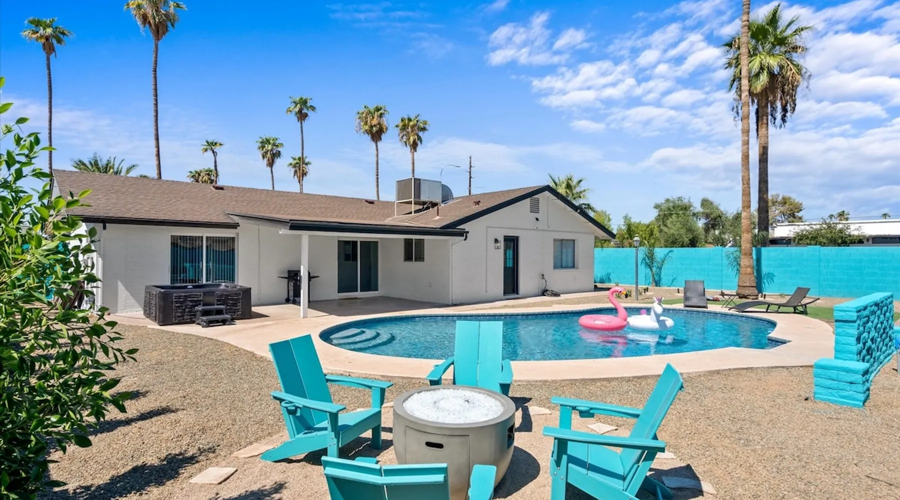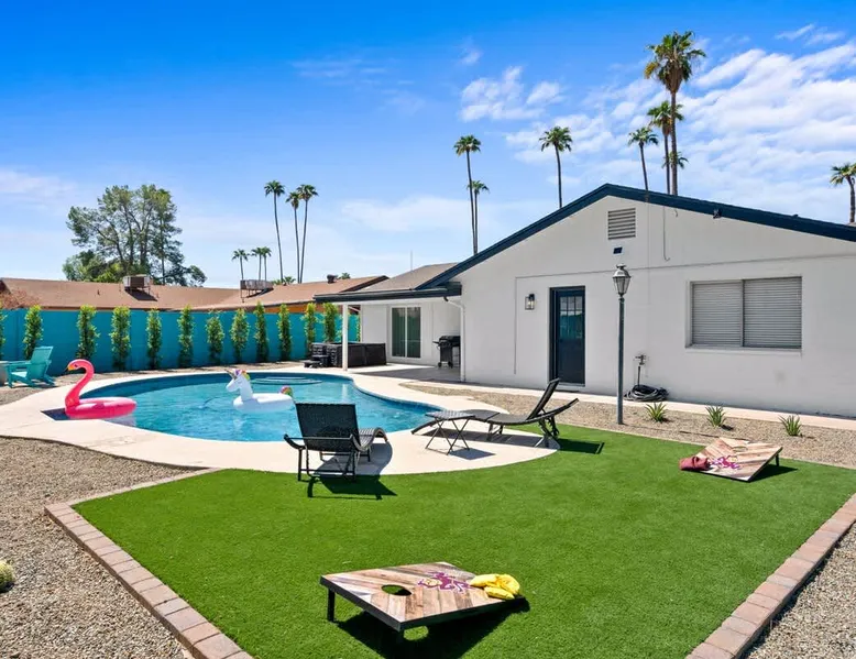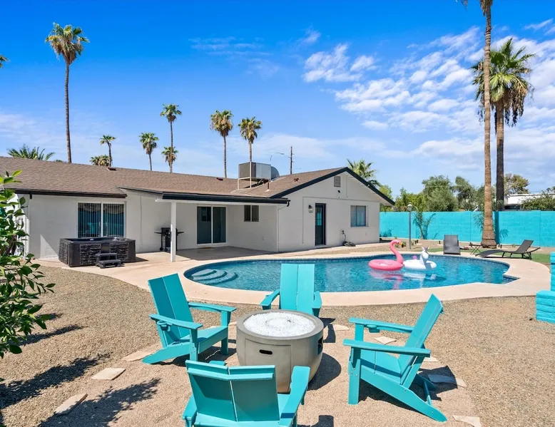 The perfect blend of comfort, style, and convenience awaits you. This home is a dog friendly, 3 bdrm, 2 bath located in a charming suburban Tempe neighborhood on a cul-de sac. Private backyard oasis w/ pool & spa. You can rent this on a short term or month to month. The home is just 10 minutes to ASU and the Phoenix airport, 5 minutes to Mesa, Mesa Community College and Banner Hospital, 15 minutes to Chandler and Old Town Scottsdale, 30 minutes to Gilbert and minutes to Spring Training. The space A cozy living room with soft, warm, inviting colors and soft lighting that enhances the cozy atmosphere. This private home contain features that create a wonderful retreat where you can relax, entertain guests, and enjoy the comforts of home.Well-appointed kitchen with modern appliances. Elegant dining area for family meals and entertaining. Comfortable bedrooms for a restful night's sleep. Modern bathrooms with all the necessary amenities. Ample storage space throughout the home. pool provides a refreshing way to cool off during hot days, and the spa offers relaxation and stress relief with its warm, bubbling water. Outdoor fireplace for extra warmth and ambiance in the backyard. BBQ area is perfect for outdoor gatherings and delicious meals cooked on the grill. You have the convenience of full sized washer & dryer on site. This private home pet friendly with added one time pet fee and is conveniently located in a quiet and friendly neighborhood, with easy access to ASU, Old Town Scottsdale, Phoenix, and Spring training as well as Phoenix airport. You'll also be just minutes away from shopping centers, excellent dining options, and recreational activities. Guest access Guests have the entire home to themselves. Other things to note The pool is not heated, but available year round. Spring Training: **40 minutes to Peoria Sports Complex & Goodyear Ballpark for Cleveland Indians, Cincinnati Reds, San Diego Padres, Seattle Mariners **52 minutes to Surprise Stadium- Kansas City Royals & Texas Rangers **7 minutes to Sloan Park- Cubs Spring training **12 minutes to Hohokam Stadium-A's Spring Training **35 minutes to Camelback Ranch - LA Dodgers & Chicago White Sox **30 mins to American Family Fields- Milwaukee Brewers **13 minutes to Tempe Diablo Stadium- Los Angeles Angels **14 minutes to Scottsdale Stadium- SF Giants TPT License #21529772 STR License# 000673