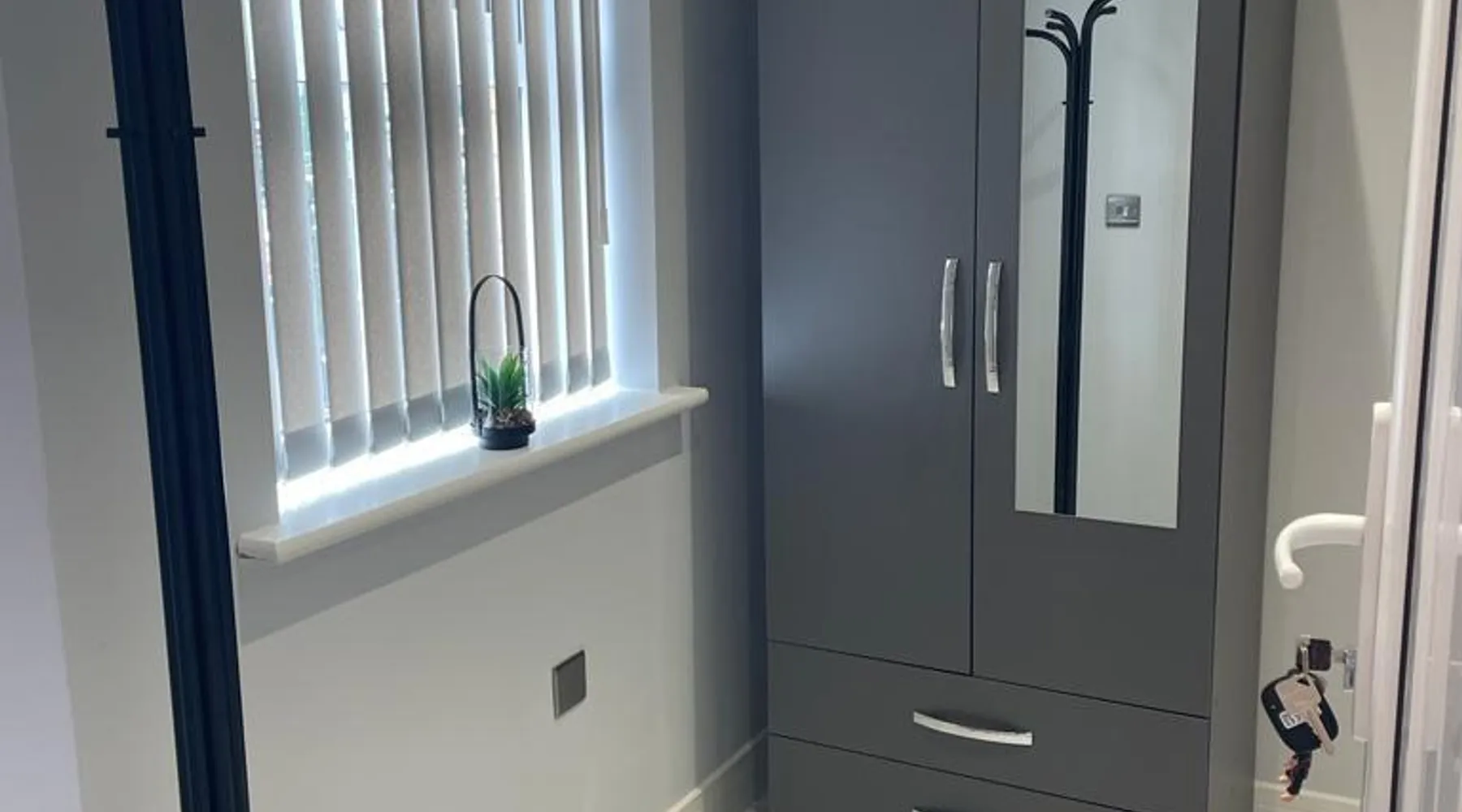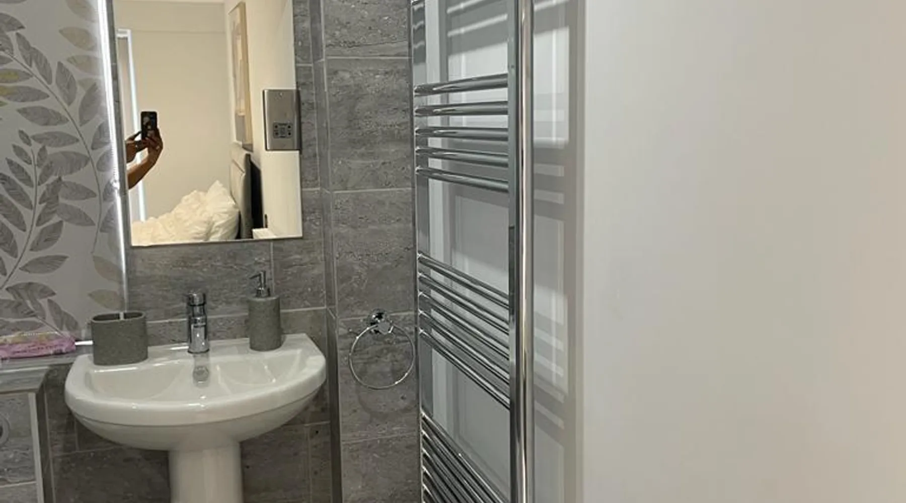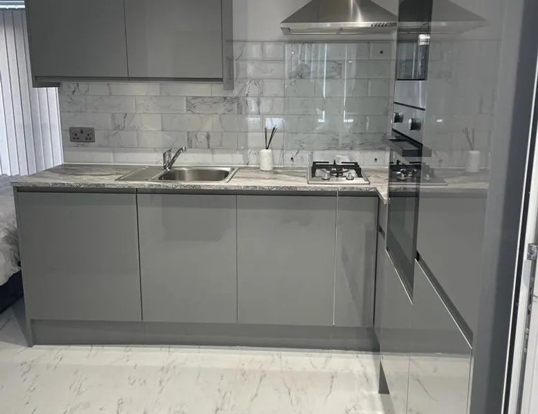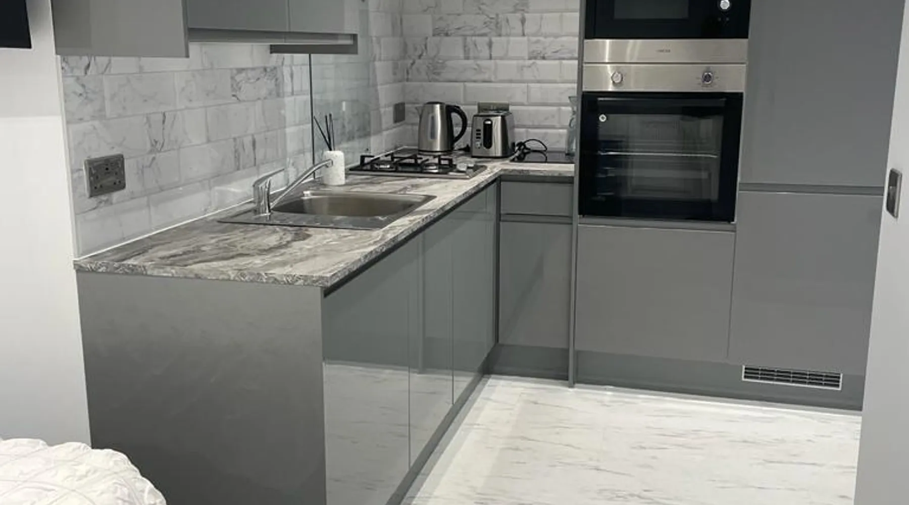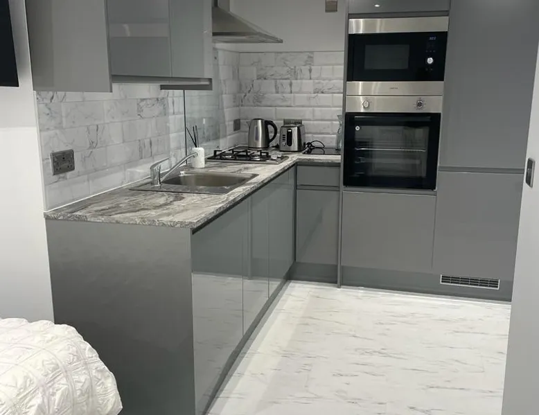 A cosy studio flat within reach of Milton Keynes city centre and easy reach to A5 and M1 The space A studio apartment with a kitchen and a cosy double bed is a perfect space for a solo traveller or a couple looking for a comfortable and convenient stay. As you enter the apartment, you will find the kitchen area on one side, equipped with all the essential appliances such as a fridge, stove, microwave, and a set of basic cookware and utensils. Adjacent to the kitchen is the sleeping area with a cosy double bed, complemented by soft pillows and comfortable bedding. The bed is placed against a stylish headboard and is accompanied by a bedside table and lamp for added convenience. Opposite the bed, you will find a wall-mounted TV that provides entertainment during leisure hours. The apartment is decorated in a contemporary style with modern fixtures and fittings, creating a welcoming and cosy ambience. The large windows in the apartment allow ample natural light, creating an inviting atmosphere. The attached bathroom features a modern shower, sink, and toilet with fresh towels and complimentary toiletries provided. The studio apartment is ideal for a short or long-term stay, with a well-designed and functional space that will make your stay enjoyable and comfortable.