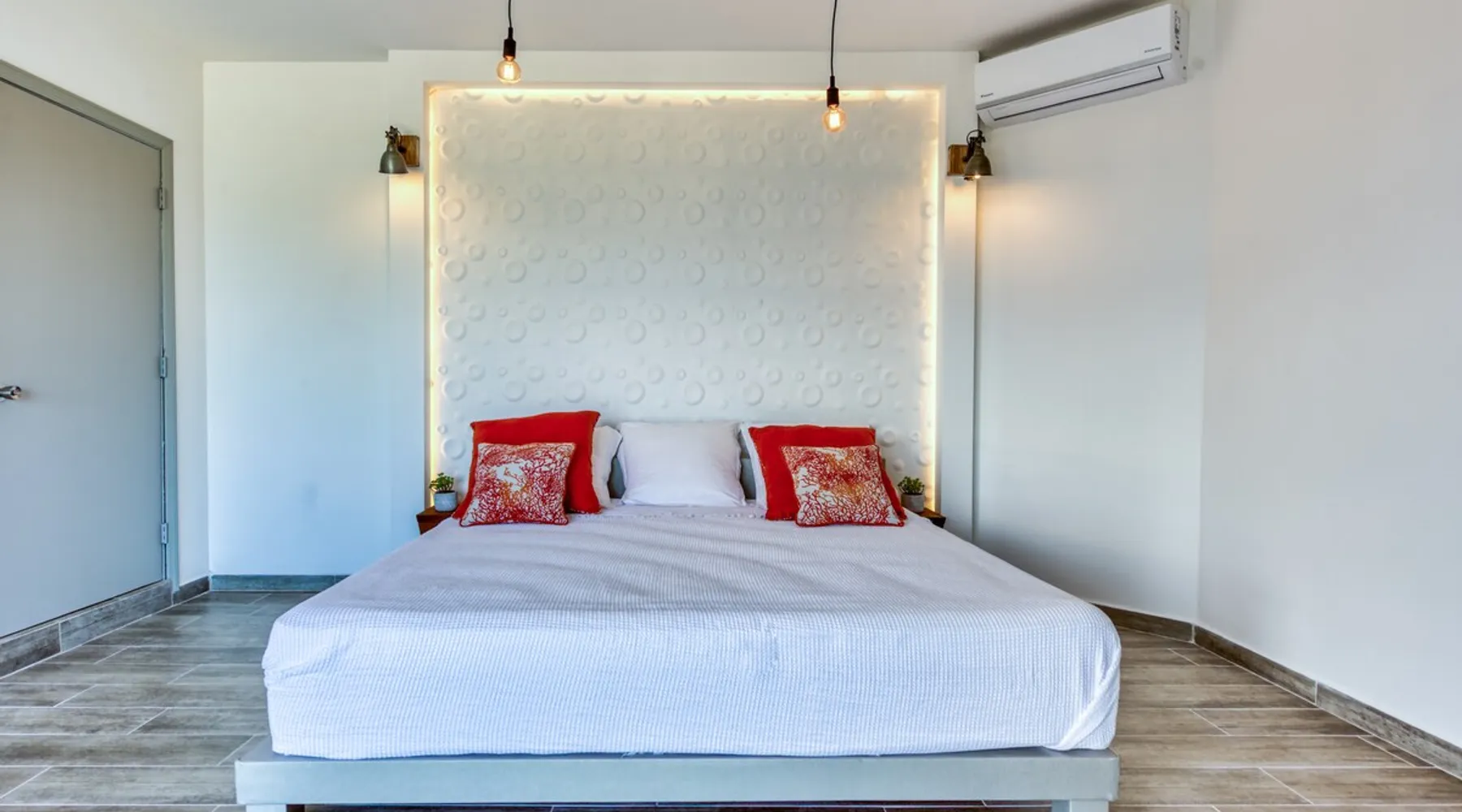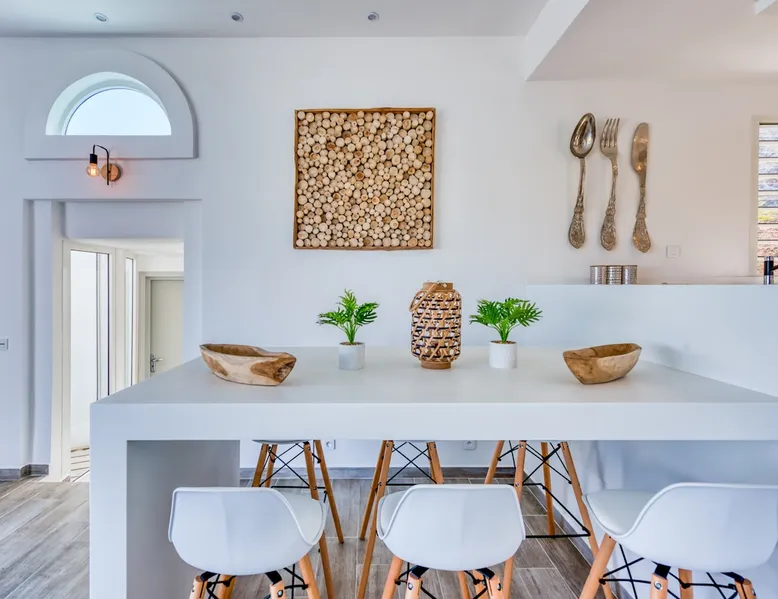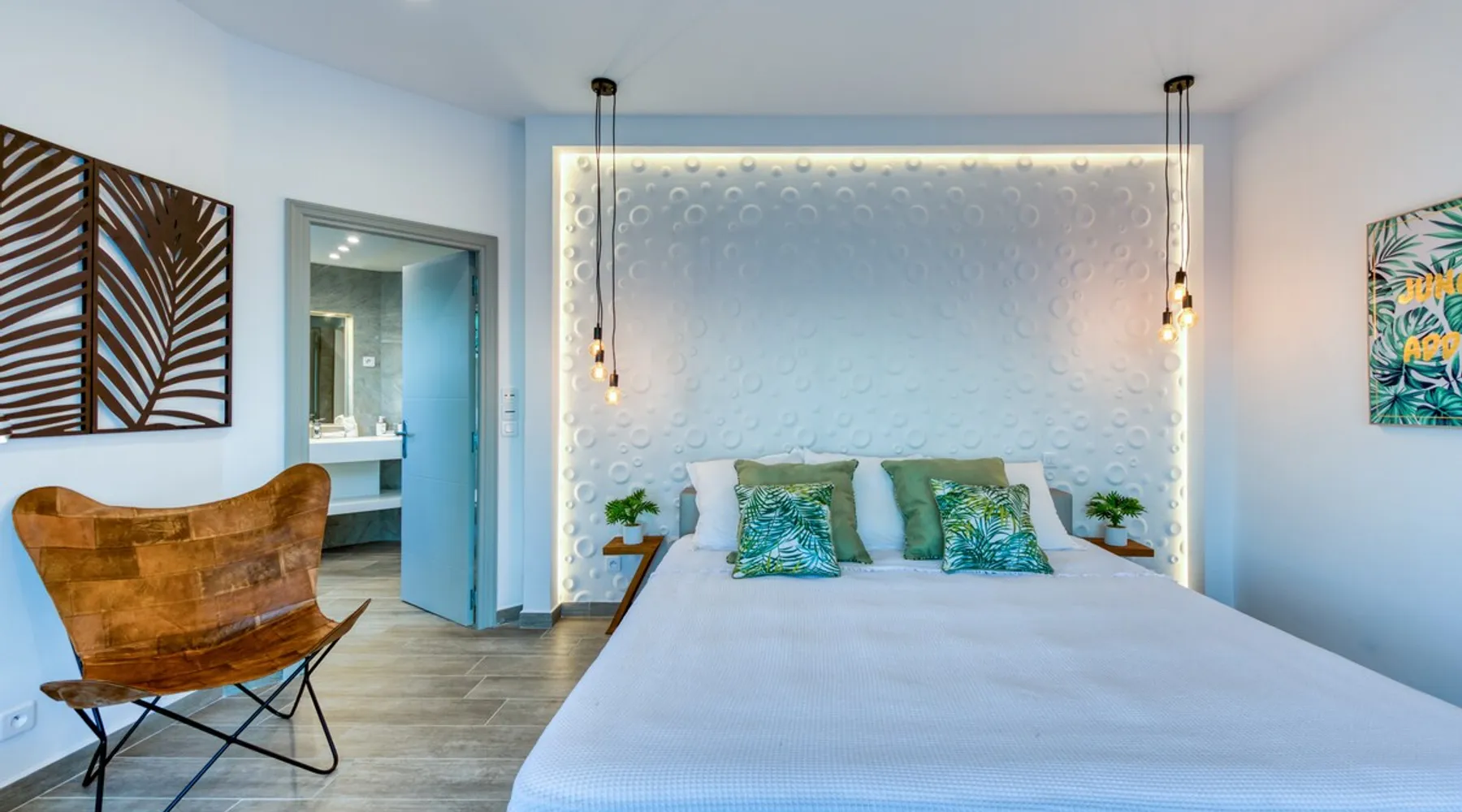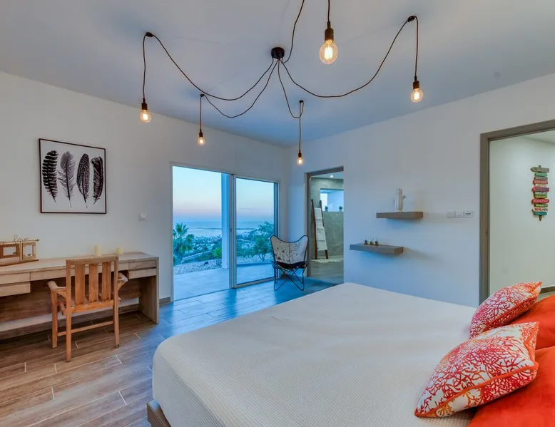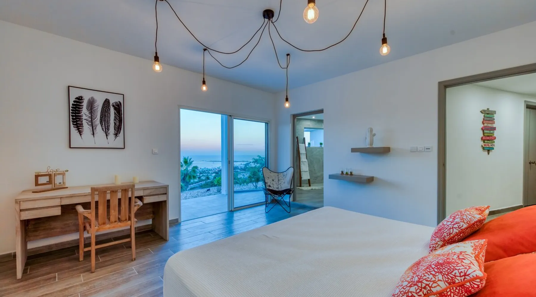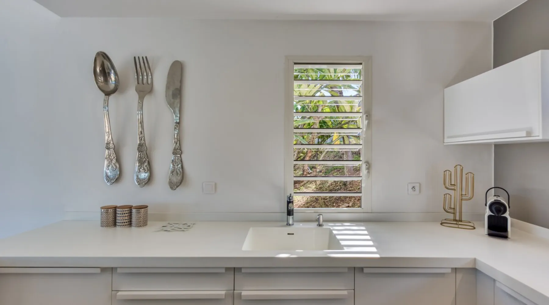 Overlooking the turquoise waters of Orient Bay and the islands of Pinel and Tintamarre, Villa Topaze is a modern and contemporary 3 bedroom property. Villa Topaze has indoor accessed bedrooms, a/c throughout, and a well equipped gym with a view. Villa Topaze is a fantastic family vacation home. Villa Topaze can be rented with Villa Turquoze to make 7 bedrooms. Villa Topaze the best way to spent your vacation in St Martin and can be rented as a 2 or a 3 bedroom villa!