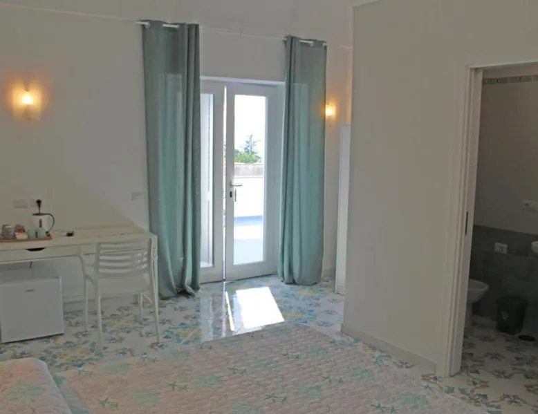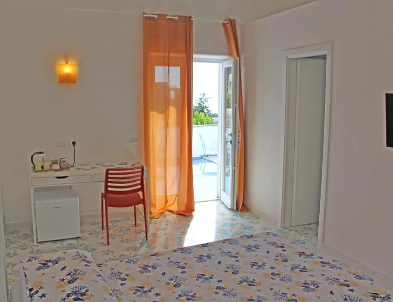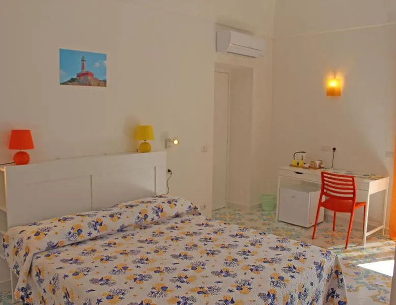 Elegant Accommodations: B&B Casa Angelina in Anacapri offers family rooms with sea views, air-conditioning, and private bathrooms. Each room includes a bidet, hairdryer, and free toiletries. Modern Amenities: Guests enjoy free WiFi, a terrace, and outdoor furniture. Additional amenities include a refrigerator, work desk, mini-bar, sofa, and electric kettle. Breakfast and Location: An Italian breakfast is served daily. The property is highly rated for its terrace, scenic location, and breakfast provided by the property. Nearby Attractions: Axel Munthe House is a 7-minute walk away, and Villa San Michele lies less than 0.6 mi from the property. Other attractions include Bagni di Tiberio Beach (1.5 mi) and I Faraglioni (3.1 mi). The double room features air conditioning, a mini-bar, a terrace with sea views as well as a private bathroom boasting a shower. The unit has 2 beds.