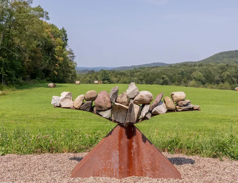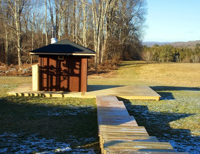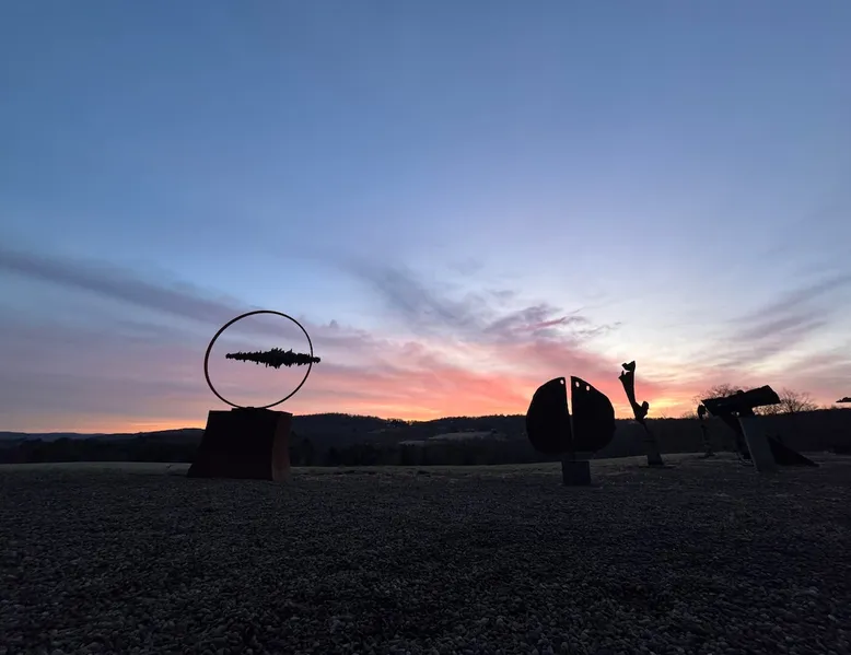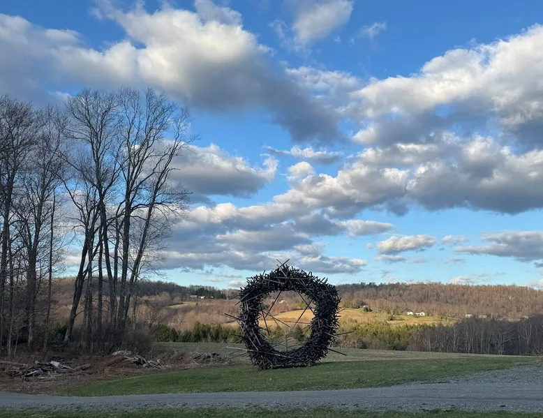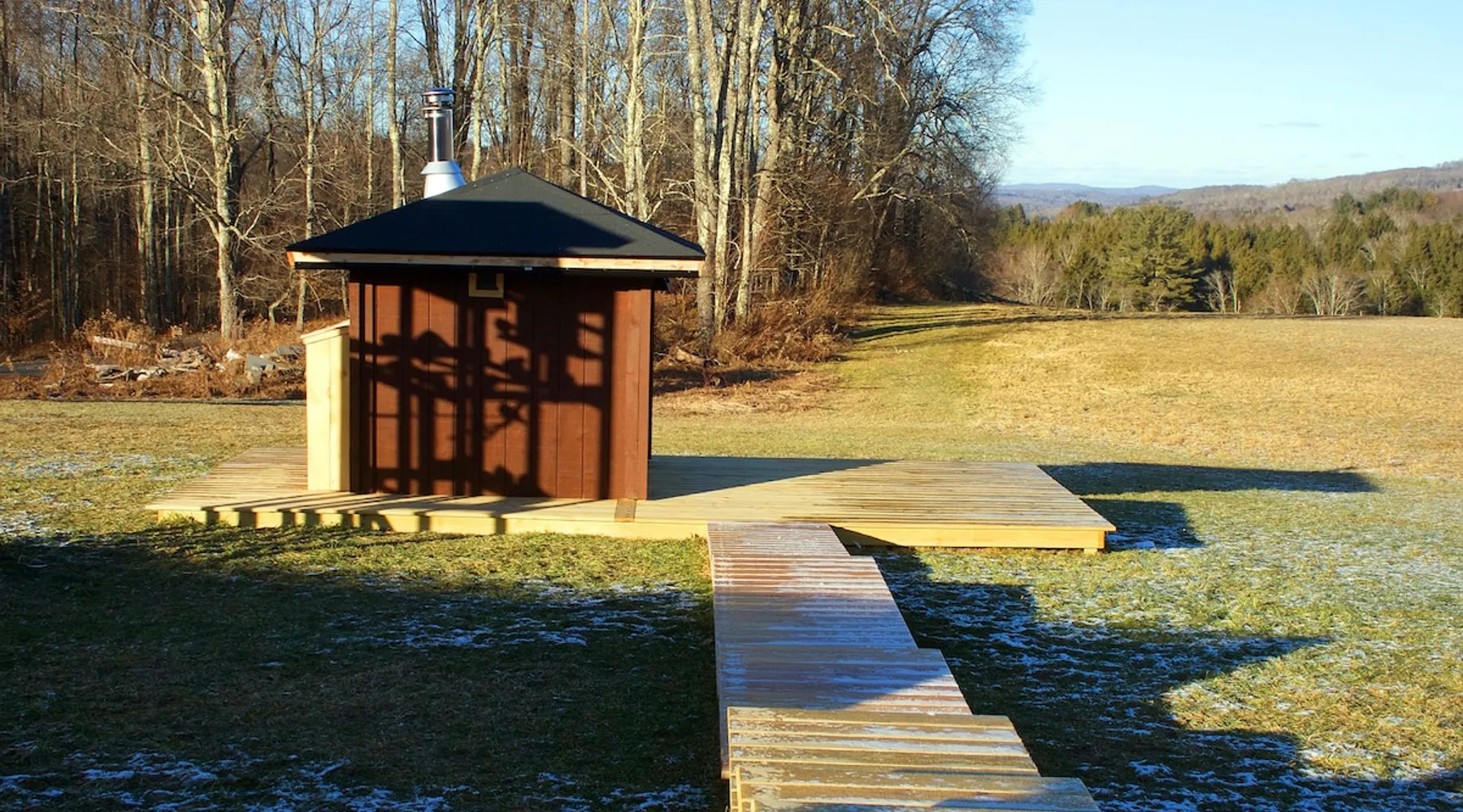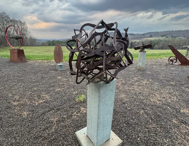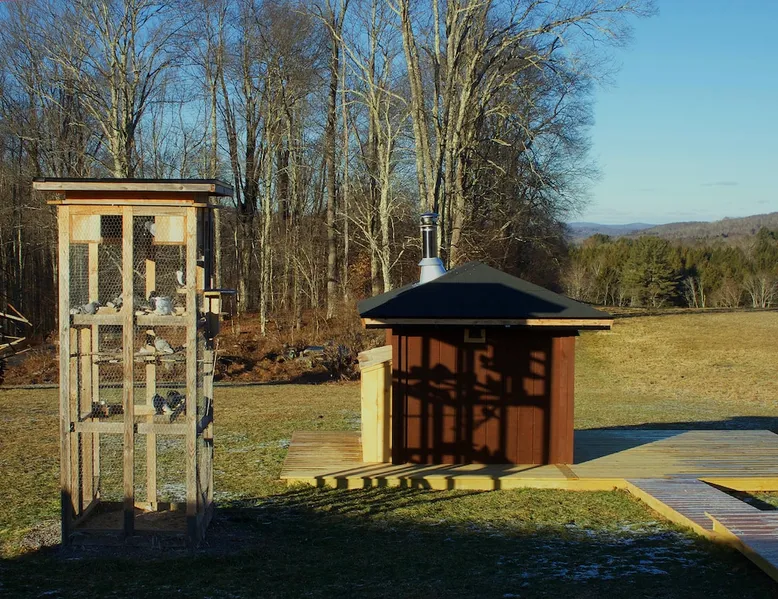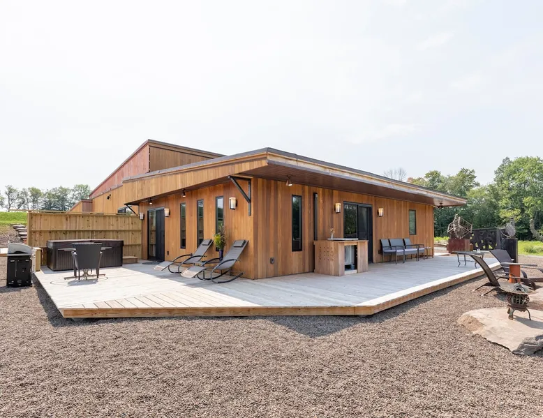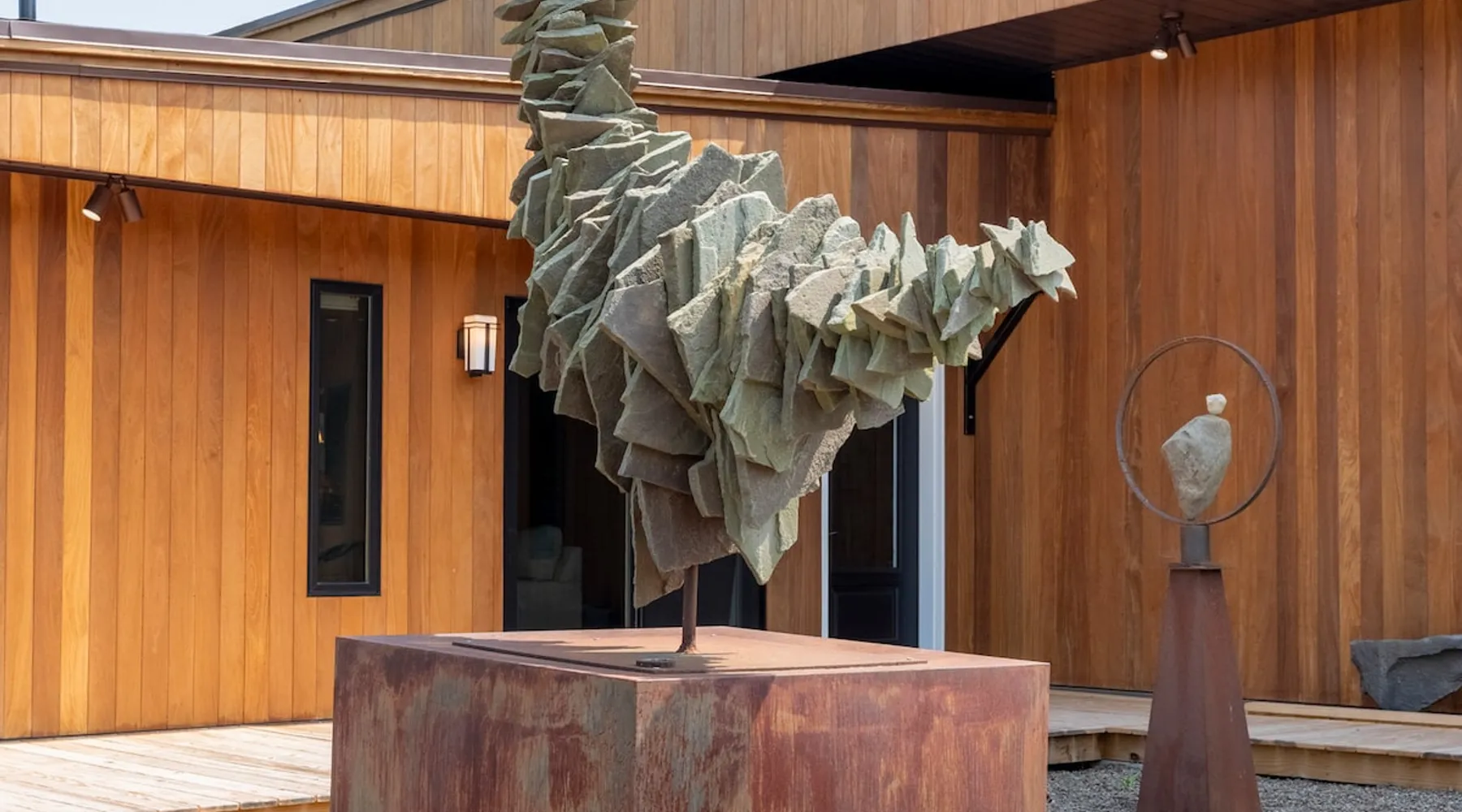 The Art House is set in a Sculpture Park developed by the artists Tom and Carol Holmes.The Parks 38 acres of rolling hills, grass land with valley views are bordered by two streams and woodlands.The views are magnificent.The house is set on the second tier of three rolling hills.Tom creates magical and life changing experiences in the landscape; at EBC Bird Sanctuary Sculpture Park. The Art House offers exceptional privacy, incredible quiet and extensive wildlife. A pristine experience awaits. The space The blue room is where you enter. It is your living room with super comfy furniture and a huge screen. Sculpture and ice prints surround the perimeter. The next room is the kitchen. Very big with lots of cooking amenities, a huge island for prep, an intimate dinner table for two. Ice prints, color, sculpture accent the space. The next room is the bedroom. A sitting area to hang or have a drink. A queen bed. Lots of dresser storage to make the visit neat. An electric fireplace for ambiance. Lights are all on dimmers. High end sheets for comfort and coolness. The bed overlooks the fire pit and the wood fired sauna just beyond the deck. The landscape unfolds to an expansive valley view. The bath is pure luxury. A soaking tub, round glass shower; beautiful tile, natural light. A real enjoyable amenity for the property. Sliding doors open to decks that wrap the Art House on all sides. Plenty of tables, lounges and spaces set to enjoy the views, sun, breezes, landscape, deer and sculpture. The fire pit has two lounge chairs low to the ground so you can cozy up to the steel custom made structure. Big stones and lots of wood supplied make this amenity a real treat. The new lifestyle X3 Hot Tub by Aqua Living is in and up to temperature. Guest access The Apartment is completely for the guests only. Totally private. The estate house is shaped like a plane. The north wing is for guests, the south wing is our living space. The center space is a museum gallery that separates the two. We have no access to the apartment while guests are here and respect their peace, tranquility, quiet and privacy. The space is over 1000 sq ft, roomy and comfortable for couples. The decks spill out onto the landscape and amenities. We enjoy greeting our guests when possible. No contact visits are available upon request. Privacy and tranquility are always assured. Other things to note Single nights available occasionally and upon request. Single nights are available usually mid week.