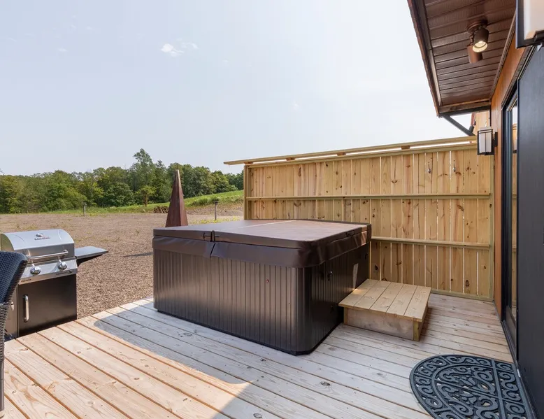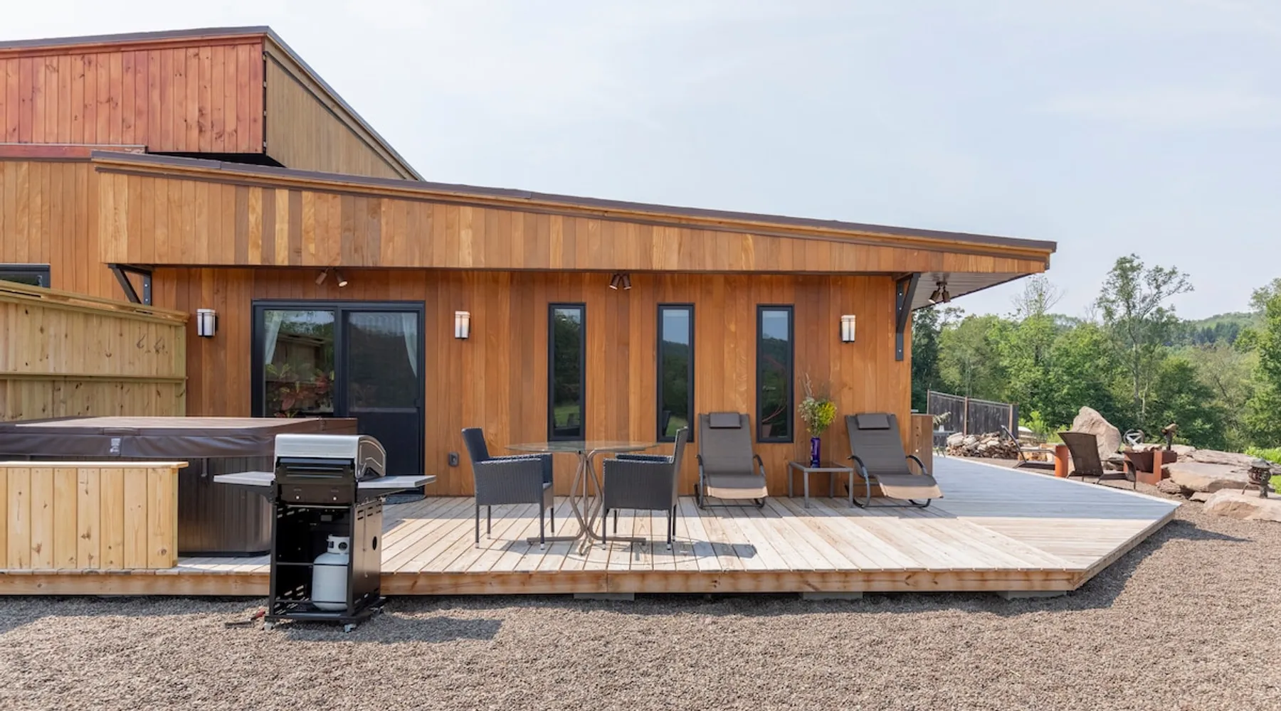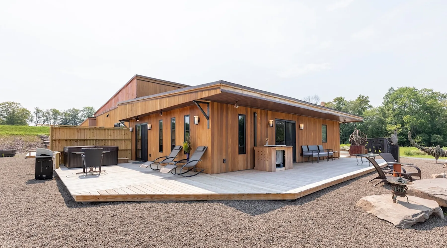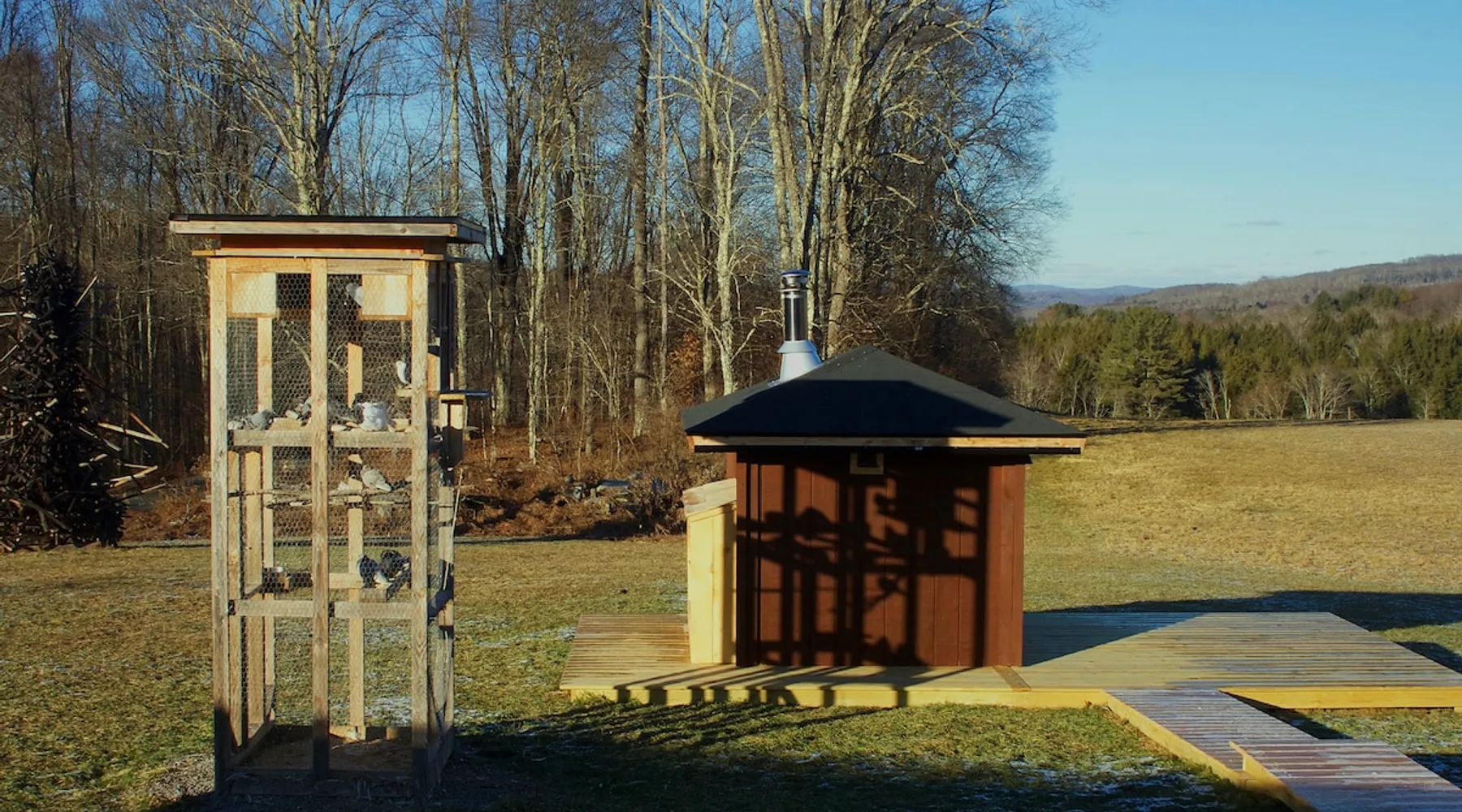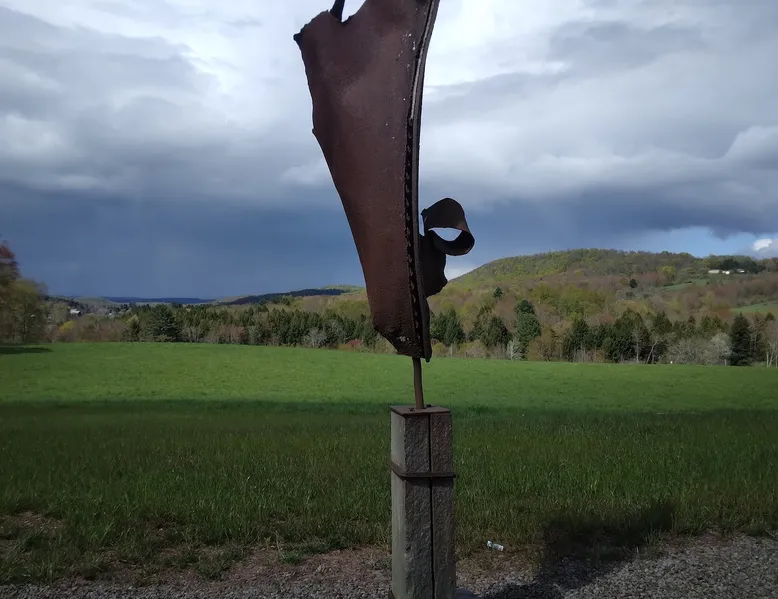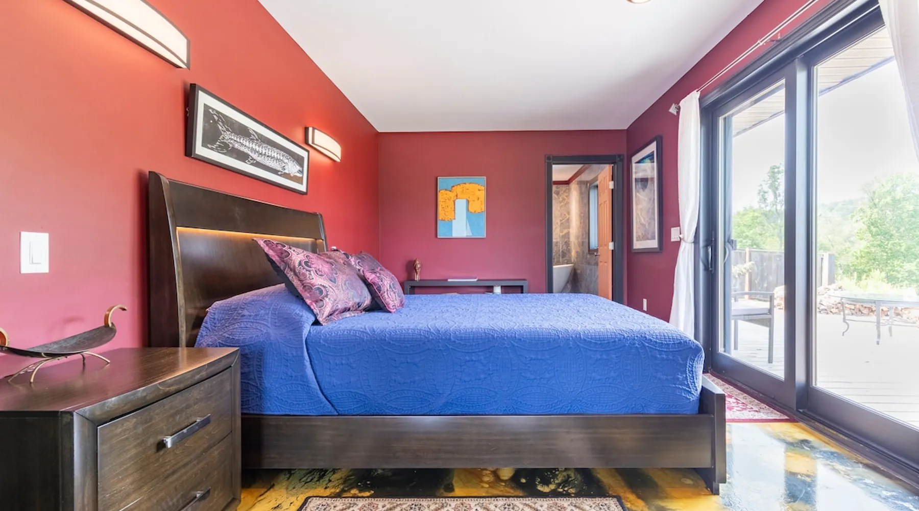 The Art House is set in a Sculpture Park developed by the artists Tom and Carol Holmes.The Parks 38 acres of rolling hills, grass land with valley views are bordered by two streams and woodlands.The views are magnificent.The house is set on the second tier of three rolling hills.Tom creates magical and life changing experiences in the landscape; at EBC Bird Sanctuary Sculpture Park. The Art House offers exceptional privacy, incredible quiet and extensive wildlife. A pristine experience awaits. The space The blue room is where you enter. It is your living room with super comfy furniture and a huge screen. Sculpture and ice prints surround the perimeter. The next room is the kitchen. Very big with lots of cooking amenities, a huge island for prep, an intimate dinner table for two. Ice prints, color, sculpture accent the space. The next room is the bedroom. A sitting area to hang or have a drink. A queen bed. Lots of dresser storage to make the visit neat. An electric fireplace for ambiance. Lights are all on dimmers. High end sheets for comfort and coolness. The bed overlooks the fire pit and the wood fired sauna just beyond the deck. The landscape unfolds to an expansive valley view. The bath is pure luxury. A soaking tub, round glass shower; beautiful tile, natural light. A real enjoyable amenity for the property. Sliding doors open to decks that wrap the Art House on all sides. Plenty of tables, lounges and spaces set to enjoy the views, sun, breezes, landscape, deer and sculpture. The fire pit has two lounge chairs low to the ground so you can cozy up to the steel custom made structure. Big stones and lots of wood supplied make this amenity a real treat. The new lifestyle X3 Hot Tub by Aqua Living is in and up to temperature. Guest access The Apartment is completely for the guests only. Totally private. The estate house is shaped like a plane. The north wing is for guests, the south wing is our living space. The center space is a museum gallery that separates the two. We have no access to the apartment while guests are here and respect their peace, tranquility, quiet and privacy. The space is over 1000 sq ft, roomy and comfortable for couples. The decks spill out onto the landscape and amenities. We enjoy greeting our guests when possible. No contact visits are available upon request. Privacy and tranquility are always assured. Other things to note Single nights available occasionally and upon request. Single nights are available usually mid week.