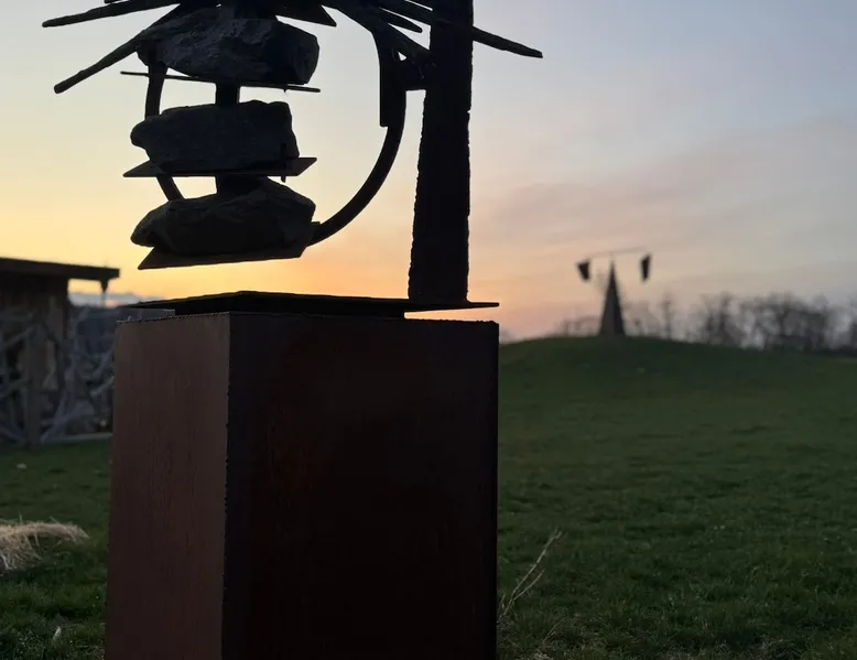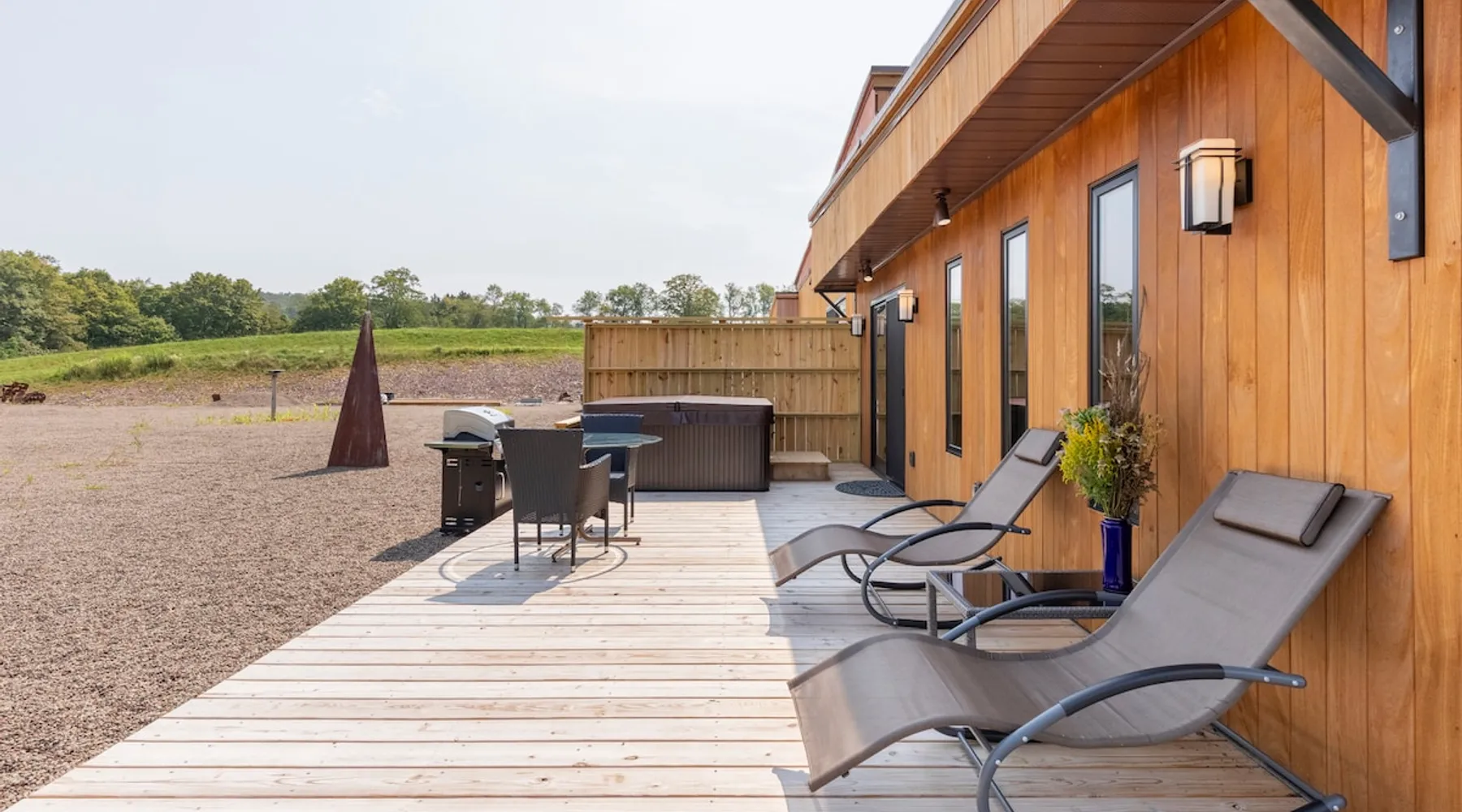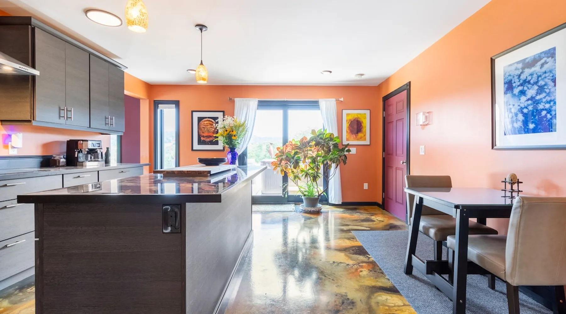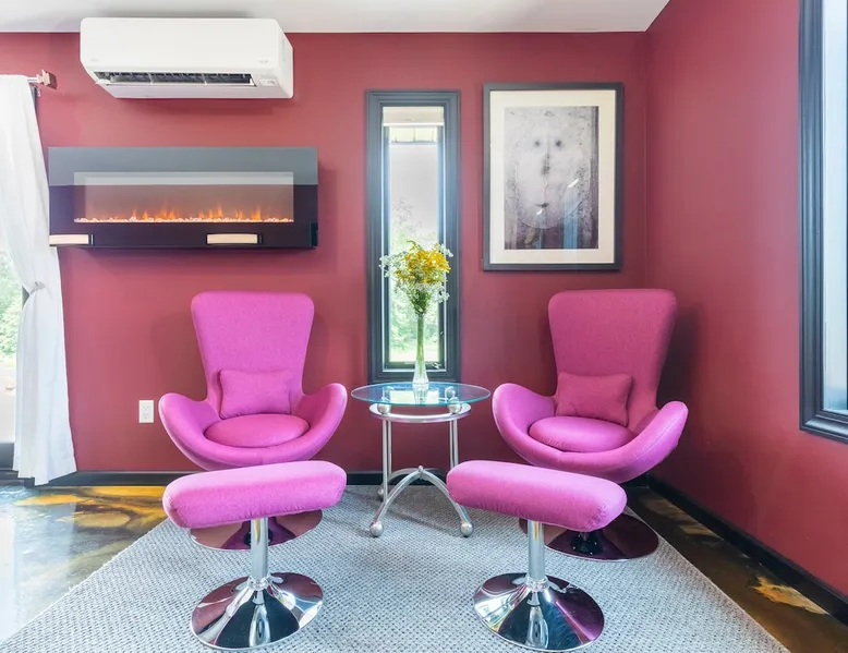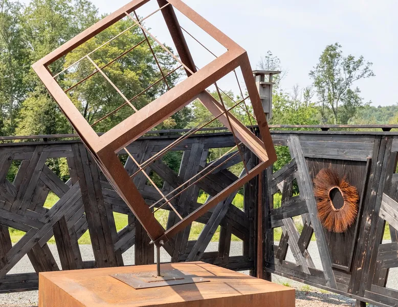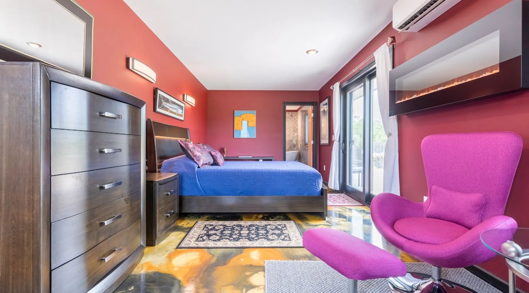 The Art House is set in a Sculpture Park developed by the artists Tom and Carol Holmes.The Parks 38 acres of rolling hills, grass land with valley views are bordered by two streams and woodlands.The views are magnificent.The house is set on the second tier of three rolling hills.Tom creates magical and life changing experiences in the landscape; at EBC Bird Sanctuary Sculpture Park. The Art House offers exceptional privacy, incredible quiet and extensive wildlife. A pristine experience awaits. The space The blue room is where you enter. It is your living room with super comfy furniture and a huge screen. Sculpture and ice prints surround the perimeter. The next room is the kitchen. Very big with lots of cooking amenities, a huge island for prep, an intimate dinner table for two. Ice prints, color, sculpture accent the space. The next room is the bedroom. A sitting area to hang or have a drink. A queen bed. Lots of dresser storage to make the visit neat. An electric fireplace for ambiance. Lights are all on dimmers. High end sheets for comfort and coolness. The bed overlooks the fire pit and the wood fired sauna just beyond the deck. The landscape unfolds to an expansive valley view. The bath is pure luxury. A soaking tub, round glass shower; beautiful tile, natural light. A real enjoyable amenity for the property. Sliding doors open to decks that wrap the Art House on all sides. Plenty of tables, lounges and spaces set to enjoy the views, sun, breezes, landscape, deer and sculpture. The fire pit has two lounge chairs low to the ground so you can cozy up to the steel custom made structure. Big stones and lots of wood supplied make this amenity a real treat. The new lifestyle X3 Hot Tub by Aqua Living is in and up to temperature. Guest access The Apartment is completely for the guests only. Totally private. The estate house is shaped like a plane. The north wing is for guests, the south wing is our living space. The center space is a museum gallery that separates the two. We have no access to the apartment while guests are here and respect their peace, tranquility, quiet and privacy. The space is over 1000 sq ft, roomy and comfortable for couples. The decks spill out onto the landscape and amenities. We enjoy greeting our guests when possible. No contact visits are available upon request. Privacy and tranquility are always assured. Other things to note Single nights available occasionally and upon request. Single nights are available usually mid week.