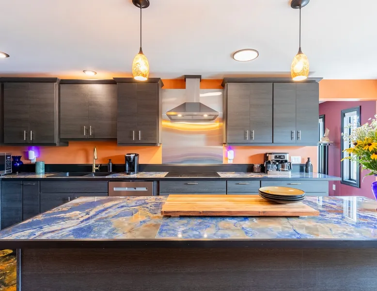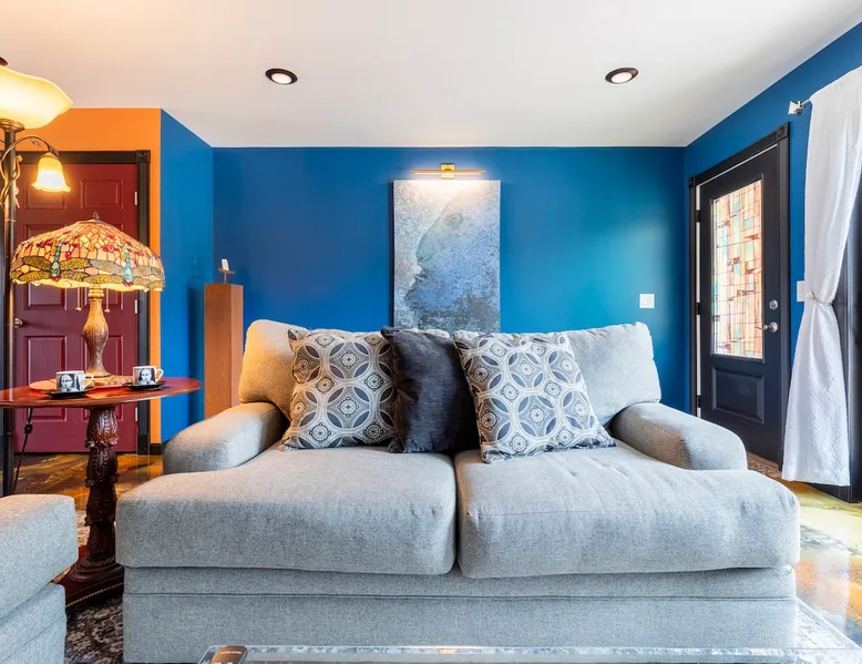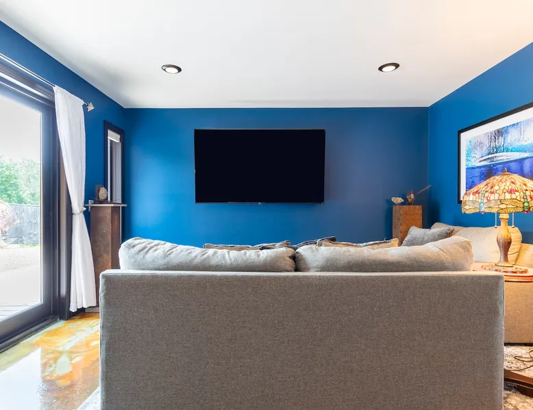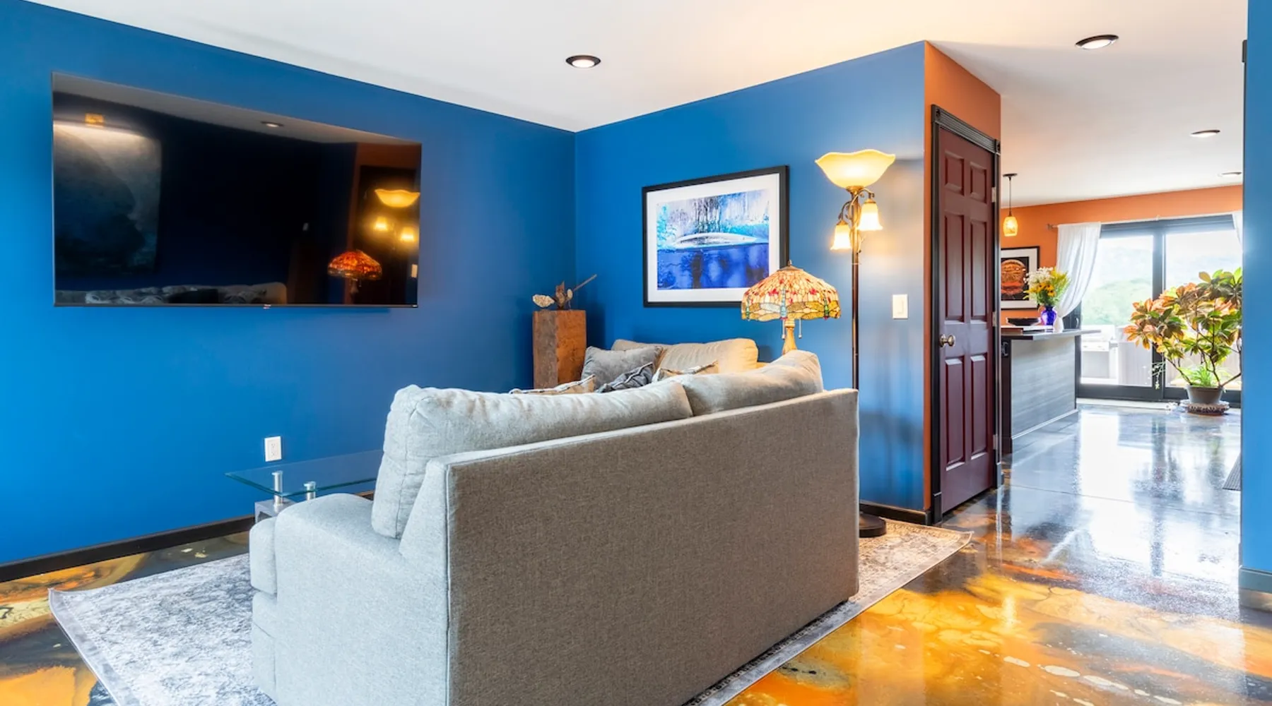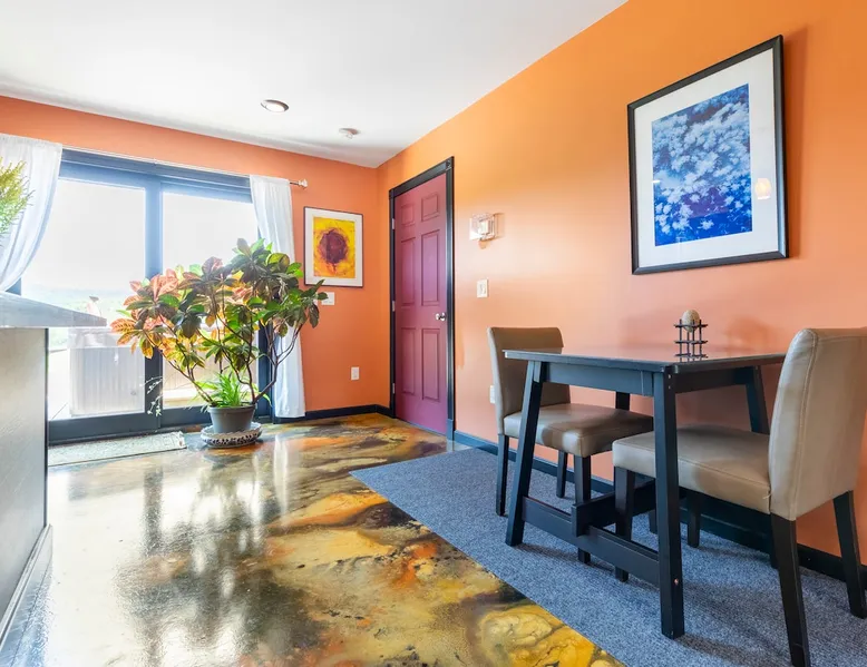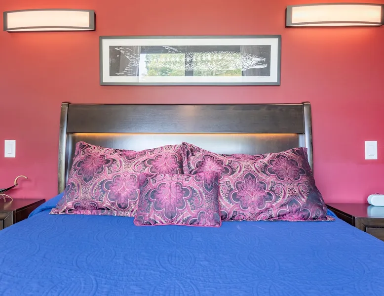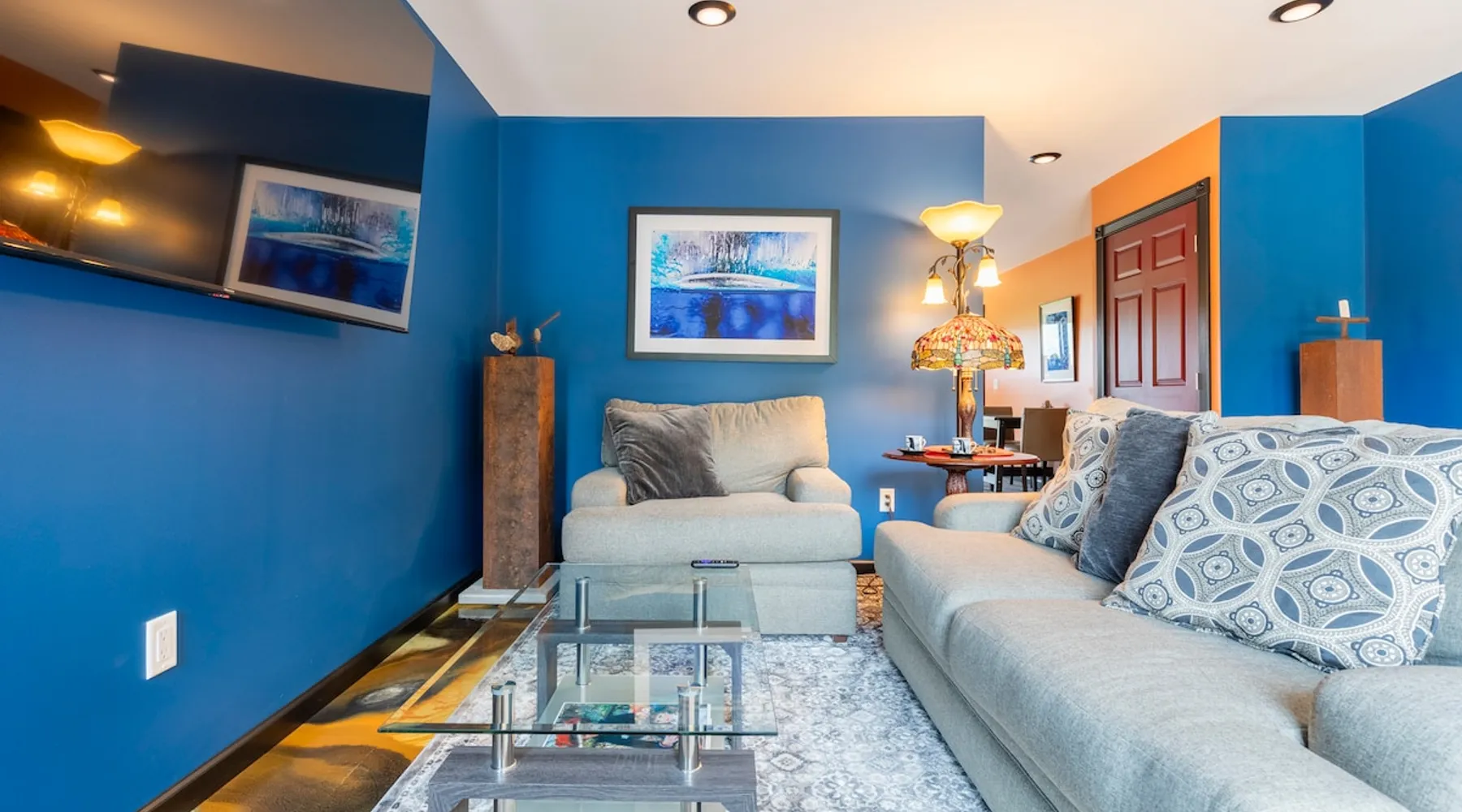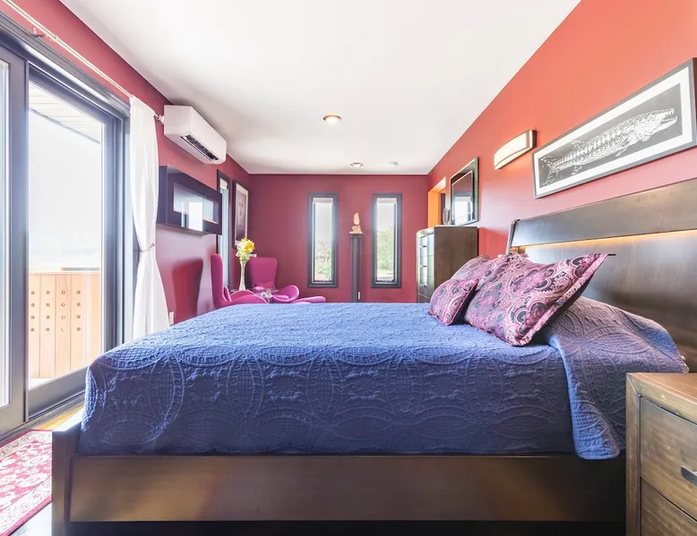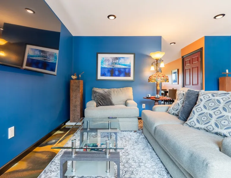 The Art House is set in a Sculpture Park developed by the artists Tom and Carol Holmes.The Parks 38 acres of rolling hills, grass land with valley views are bordered by two streams and woodlands.The views are magnificent.The house is set on the second tier of three rolling hills.Tom creates magical and life changing experiences in the landscape; at EBC Bird Sanctuary Sculpture Park. The Art House offers exceptional privacy, incredible quiet and extensive wildlife. A pristine experience awaits. The space The blue room is where you enter. It is your living room with super comfy furniture and a huge screen. Sculpture and ice prints surround the perimeter. The next room is the kitchen. Very big with lots of cooking amenities, a huge island for prep, an intimate dinner table for two. Ice prints, color, sculpture accent the space. The next room is the bedroom. A sitting area to hang or have a drink. A queen bed. Lots of dresser storage to make the visit neat. An electric fireplace for ambiance. Lights are all on dimmers. High end sheets for comfort and coolness. The bed overlooks the fire pit and the wood fired sauna just beyond the deck. The landscape unfolds to an expansive valley view. The bath is pure luxury. A soaking tub, round glass shower; beautiful tile, natural light. A real enjoyable amenity for the property. Sliding doors open to decks that wrap the Art House on all sides. Plenty of tables, lounges and spaces set to enjoy the views, sun, breezes, landscape, deer and sculpture. The fire pit has two lounge chairs low to the ground so you can cozy up to the steel custom made structure. Big stones and lots of wood supplied make this amenity a real treat. The new lifestyle X3 Hot Tub by Aqua Living is in and up to temperature. Guest access The Apartment is completely for the guests only. Totally private. The estate house is shaped like a plane. The north wing is for guests, the south wing is our living space. The center space is a museum gallery that separates the two. We have no access to the apartment while guests are here and respect their peace, tranquility, quiet and privacy. The space is over 1000 sq ft, roomy and comfortable for couples. The decks spill out onto the landscape and amenities. We enjoy greeting our guests when possible. No contact visits are available upon request. Privacy and tranquility are always assured. Other things to note Single nights available occasionally and upon request. Single nights are available usually mid week.