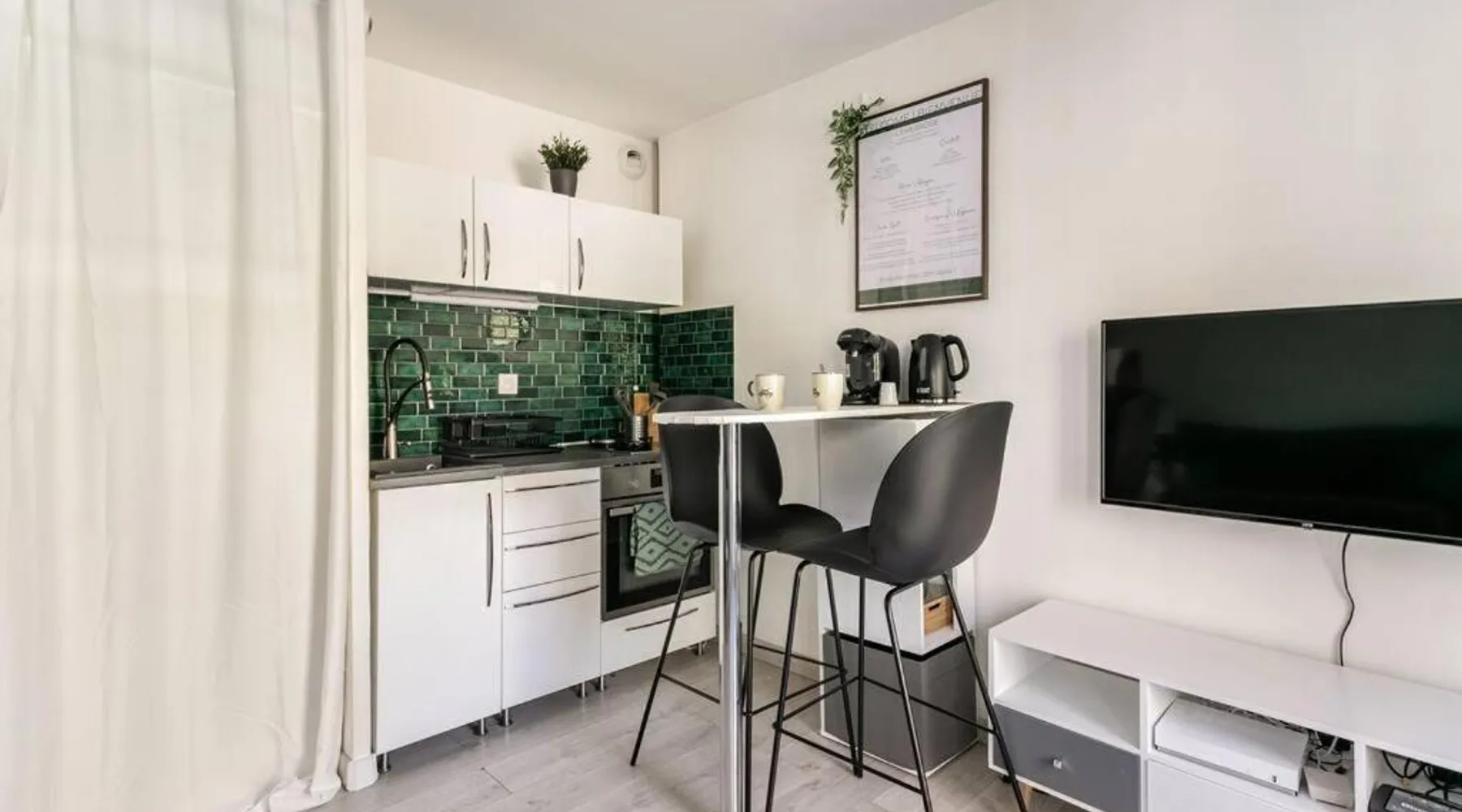 Comfortable Accommodations: A Deux Pas de la Magie - Idéal DisneyLand & Paris in Bussy-Saint-Georges offers a spacious apartment with free WiFi, a elevator, and free on-site parking. The property features a private bathroom, fully equipped kitchen, and a comfortable seating area. Modern Amenities: Guests can enjoy amenities such as a washing machine, coffee machine, microwave, and TV. The apartment includes a work desk, dining area, and parquet floors, ensuring a pleasant and convenient stay. Prime Location: Located 16 mi from Paris Charles de Gaulle Airport, the apartment is near Val d'Europe RER Station (3.7 mi), Disneyland Paris (5.6 mi), and Noter Dame Cathedral (19 mi). Highly rated for its convenient location, excellent host, and immaculate room cleanliness. The studio has a private bathroom, a washing machine, a tea and coffee maker, as well as a seating area with a flat-screen TV. In the well-fitted kitchen, guests will find a stovetop, a refrigerator, kitchenware and an oven. The studio features a dining area, a dressing room, a sofa, a TV, as well as city views. The unit has 2 beds.