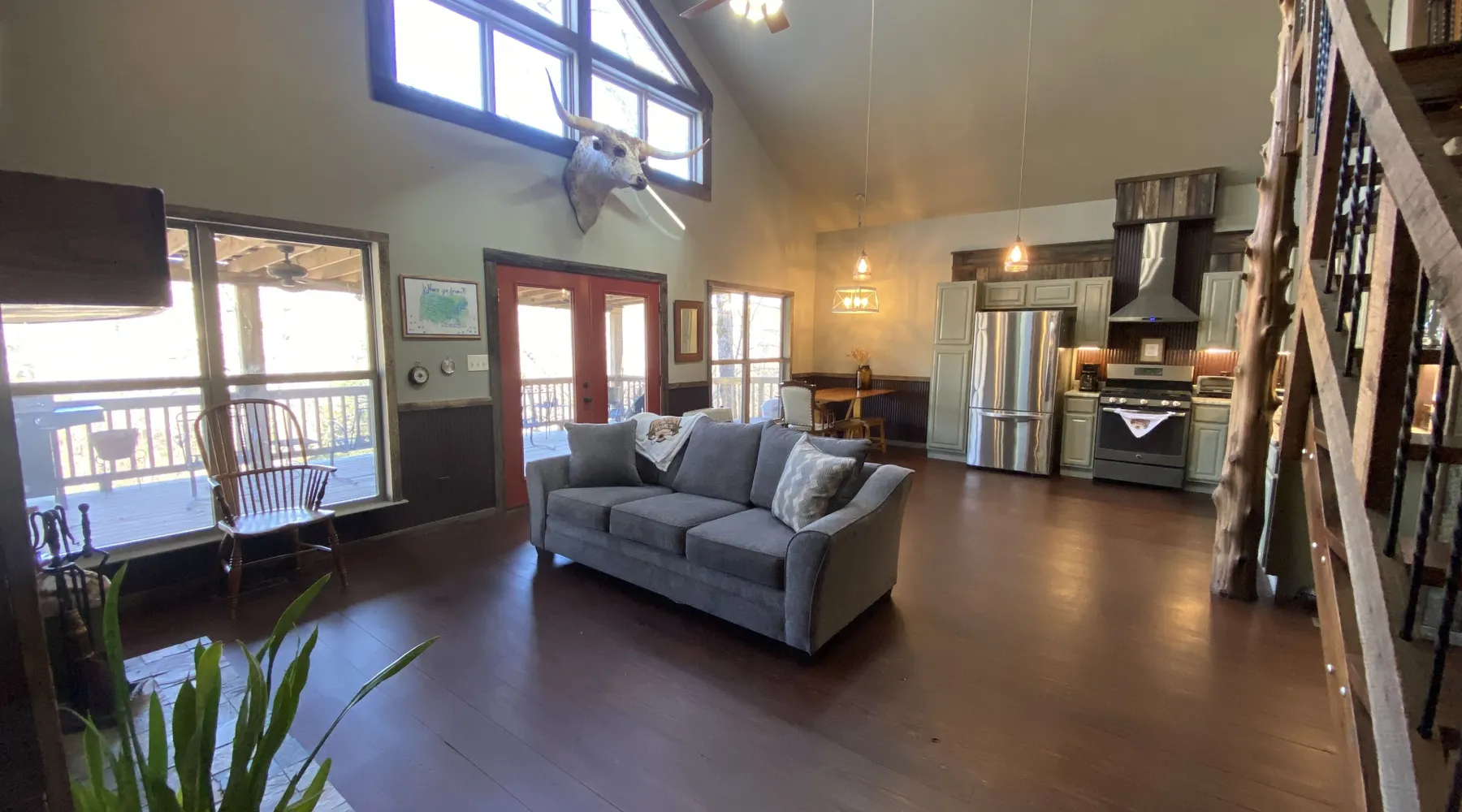 Take it easy at this unique, private getaway. This FABULOUS cabin on the Cadron Creek is 20 min to Greers Ferry Lake, and great if you are headed to Branson. It is tucked away, yet 20 minutes to Conway! The main level has a spacious bedroom, attached bathroom with walk in shower. The upstairs loft has space for an extra guests (4) to sleep. (One full size bed and a bunk bed.) Cuddle up with the wood burning fireplace, huge TV, and enjoy nature with the large deck that overlooks the Cadron Creek.