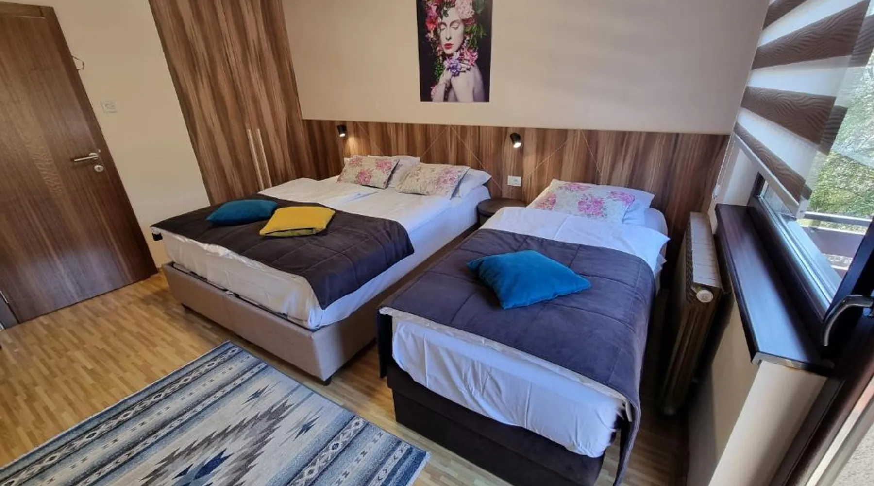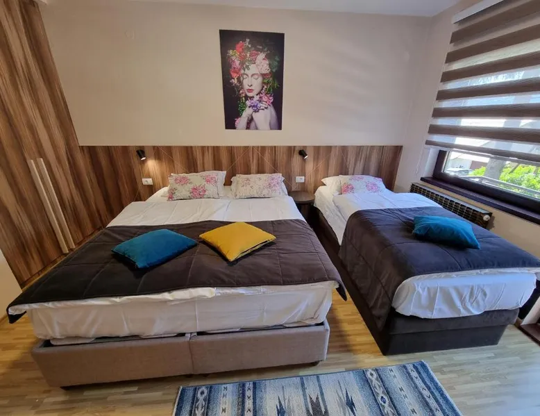 Spacious Accommodations: Olimpijada 84 Pale in Pale offers a spacious chalet with four bedrooms and two bathrooms. The living room features a sofa bed and a dining area, ensuring comfort for all guests. Outdoor Amenities: Guests can enjoy a sun terrace and a garden, perfect for relaxation. The property includes an outdoor fireplace, barbecue facilities, and free WiFi, enhancing the outdoor experience. Convenient Facilities: The chalet provides free on-site private parking, ski equipment hire, and family rooms. Additional amenities include a washing machine, kitchen, and dishwasher, catering to all needs. Local Attractions: Sarajevo International Airport is 14 mi away. Nearby attractions include Sebilj Fountain and Bascarsija Street, each 8.7 mi from the property. An ice-skating rink is also located in the surroundings. This chalet's special feature is the fireplace. This spacious chalet consists of 1 living room, 4 separate bedrooms and 2 bathrooms with a bath and a shower. Guests will find a stovetop, a refrigerator, a dishwasher and kitchenware in the kitchen. The chalet also provides guests with a barbecue. Featuring a terrace with garden views, this chalet also provides a washing machine and a flat-screen TV. The unit offers 6 beds.
