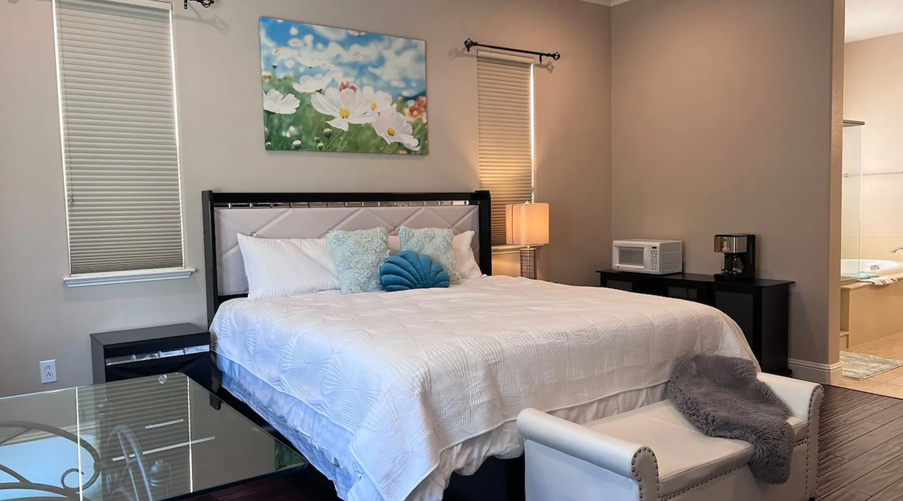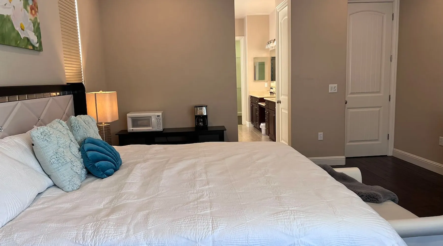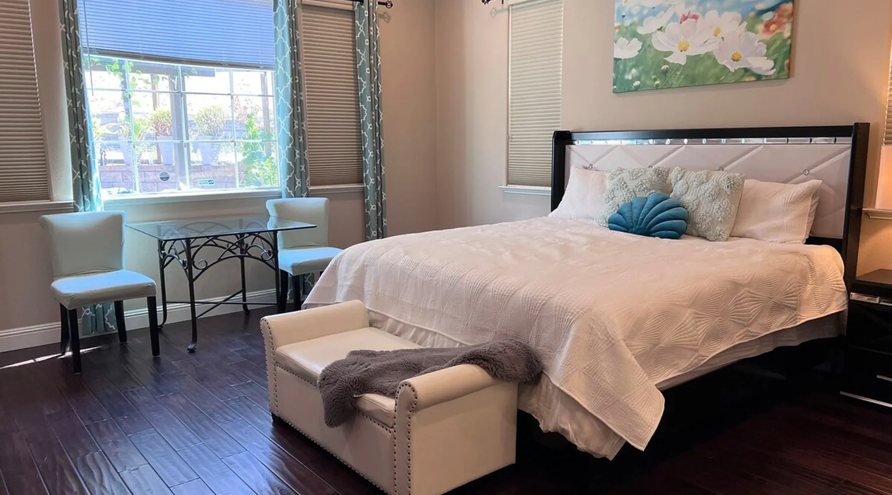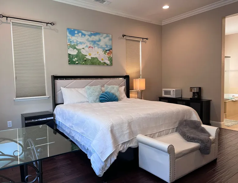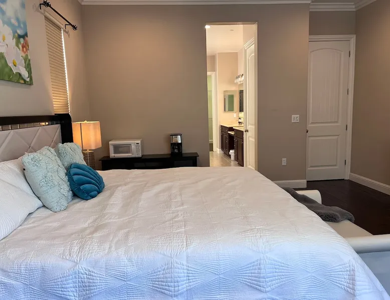 Beautiful 1 master bedroom and 1 bathroom with private entrance. The house is located in a safe, beautiful, and quiet neighborhood with easy access to highway. We are 40 minutes to San Franciso Airport, 12 mins from San Francisco premium outlets, 7 mins to the BART station and delicious local restaurants. Perfect for a business trip or vacation. The room has comfortable king size bed, desk, microwave, and coffee machine, large size TV. Free access to the washer/drawer at the garage. The space Located at a luxury community at the Dublin hills, the property provides a picturesque environment, rolling meadows view and modern construction style. The shared backyard has provided barbecue, patio, outdoor sofa, and swing, etc. Guest access Guest can use the shared side and back yards, park on the street, or access the laundry at the garage. During your stay Guest can text, call or email the host for help.