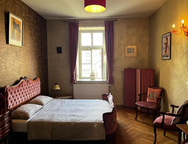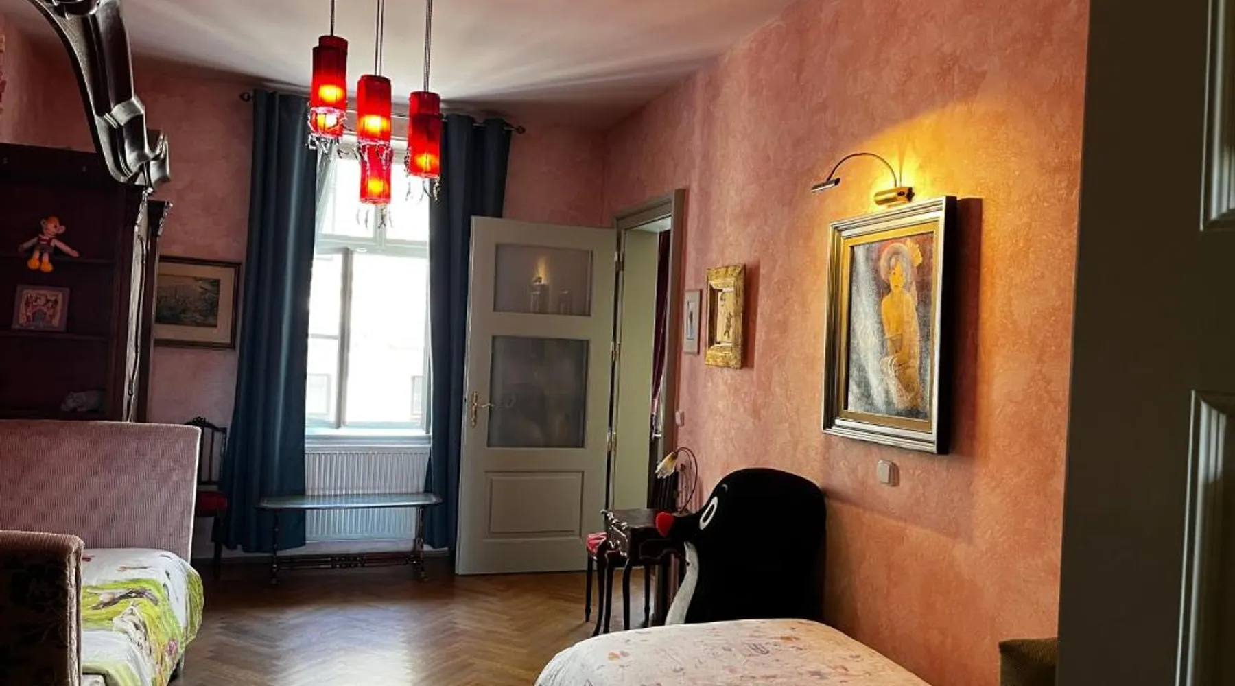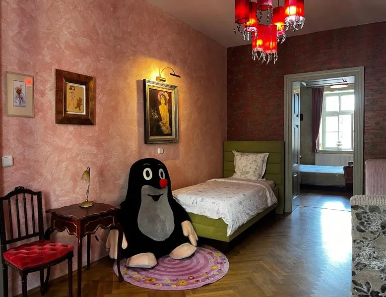 Spacious Accommodations: Le Papillon de Bohème in Prague offers a spacious apartment with two bedrooms and a living room. The property features parquet floors, a balcony, and a terrace, providing ample space for relaxation. Modern Amenities: Guests enjoy free WiFi, a fully equipped kitchen, washing machine, and a hot tub. Additional facilities include an electric vehicle charging station, family rooms, and paid on-site parking. Central Location: Located in the city center, the apartment is a 6-minute walk from Municipal House and 2297 feet from Prague Astronomical Clock. Charles Bridge is 0.6 mi away, while Prague Castle is 1.9 mi distant. Guest Satisfaction: Highly rated by guests, Le Papillon de Bohème is praised for its friendly host, convenient location, and central setting. The hot tub is a top feature of this apartment. This spacious apartment comes with 1 living room, 2 separate bedrooms and 1 bathroom with a bath and a bidet. The apartment's kitchen is available for cooking and storing food. This apartment has a washing machine, a private entrance, a flat-screen TV and a patio. The unit has 4 beds.