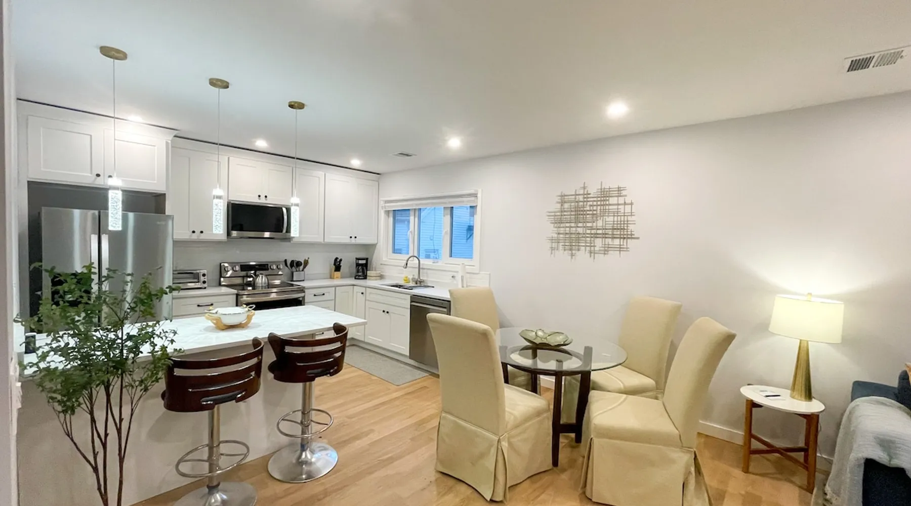 Brand new renovation. Discover pristine two-bedroom, two-bathroom elegance only 1 mile to MIT, minutes to Green Line B, C, D, and E trolleys, Lechmere, and Kendall Square. Nestled in a Walker's paradise with excellent public transit options, this neighborhood is a hub of over 95 restaurants, cafes, and shopping venues. The space Find comfort on the second floor of this inviting condo, boasting hardwood floors and an open living area offering a gourmet kitchen with white granite countertops, stainless steel appliances, breakfast bar, and dining table. Unwind with a sleeper sofa and 55" flat-screen TV. The master bedroom welcomes you with a queen-sized bed, TV, desk, and private tiled bathroom. The second bedroom features a full-sized bed, desk, and TV. A second bathroom provides a shower/tub combo. Enjoy the conveniences of in-unit laundry, air conditioninf and central air, and an outdoor dining area making this the complete space to call your home away from home. Disclaimer: This is a fully furnished unit offered for short-term, transient use only. It is not a rental tenancy or lease. All guests must maintain a primary residence elsewhere and agree to abide by house rules, maximum occupancy, and payment terms. No subletting or unauthorized guests. Guest access Entire Unit and outdoor patio Other things to note After your reservation has been confirmed, we will email you a contract for you to review and sign. The contract will just outline the basic house rules. There is a parking spot with the apartment but not included with the nightly rent. The nightly cost is $15, there are other parking options in the area, all information will be found in the welcome packet that will be sent 2 weeks prior to arrival. Parking is at a first come first serve basis and has to be reserved ahead of time to guarantee a space. Please note , for any stays 28 days and longer an additional cleaning fee of $90 will be charged. Please be respectful of next door neighbors and neighborhood. Great place for large families or groups, not the place to be loud/rowdy and have parties. would be super if shoes could be removed, shoe removal will make it quieter for people who live below. Pack n' Play/ High top chair available upon request for $10/night. There is a $150 lost key fee and $100 lock out fee.