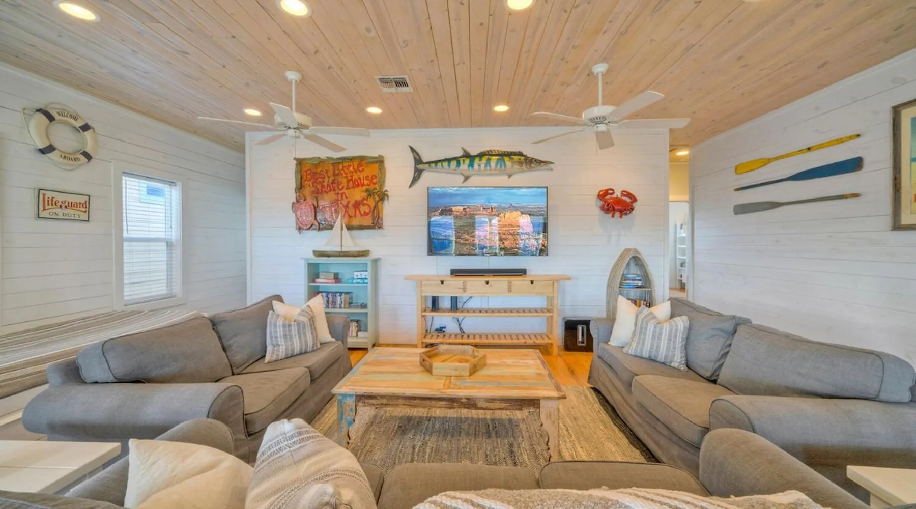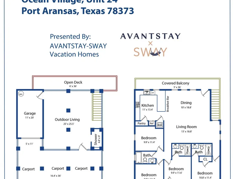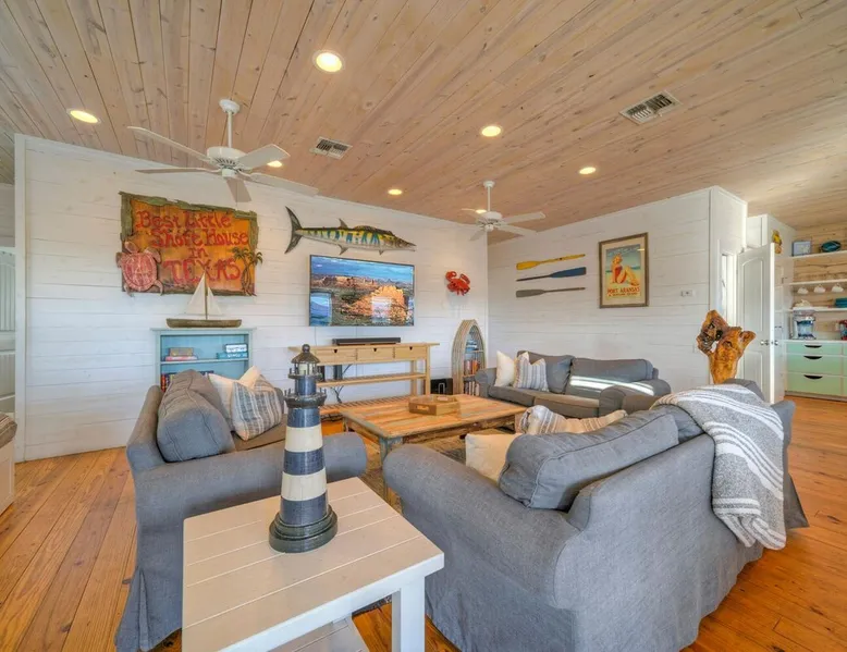 Welcome to Best Little Shore House by AvantStay! - 4BR/3BA stilt beach home in the Ocean Village community - Walking distance to the beach - Sleeps 12 comfortably - Community pool & cabana - Outdoor living space with seating, fire pit, hanging hammock chair, picnic tables, grill, games, and an outdoor shower - Stocked catch-and-release pond, nearby beach access, and located in the golf cart zone - Canal front with sunrise and sunset views - Beautifully decorated interior with coastal decor The space Welcome to Best Little Shore House in Port Aransas, TX, where beach vibes and sunset views collide in perfect harmony! Nestled in the Ocean Village community, this 4BR/3BA stilt beach house is your ticket to coastal bliss. Overlooking a stocked fishing pond, this beautifully decorated retreat has everything you need for a marvelously memorable stay. Located on 11th Street, the Best Little Shore House is ideally positioned with community amenities and activities at your fingertips. It’s just steps from the community pool, within walking distance to Beach Access 1A or Sandcastle Drive, and it's in the golf cart zone! Parking fits 2-3 vehicles depending on size, so gather your crew and get ready for some beachside fun. Guests can rent a golf cart from Coastal Eds! We encourage you to book the golf cart with Coastal Eds as soon as possible, we cannot guarantee availability if you choose to delay booking. Step inside and prepare to be dazzled by the inviting interior. Best Little Shore House welcomes you with an oversized dining space, a spacious living area, and a cozy side space – perfect for gathering with loved ones. The kitchen is a chef's dream, fully equipped with all the gadgets you need to whip up your favorite home-cooked meal. With 4 bedrooms, including 2 King Suites with private bathrooms, a Queen Bedroom, and a Bunk Room with 2 twin over twin bunks, there's ample space for everyone to rest and relax. Each bedroom also boasts its own TV for added entertainment. No need to worry about laundry – there's a stackable washer and dryer closet right in the kitchen area, making cleanup a breeze. Downstairs, the fun continues with the ultimate patio hangout. The inviting outdoor living space boasts seating surrounding a fire pit and a hanging hammock chair with views of the pond. Large picnic tables and a grill complete the area and create the perfect setting for an evening BBQ! Help yourself to games and beach gear in the garage before hitting the sandy shores, and don’t miss out on the outdoor shower for rinsing off when you get back. Located directly on a pond, this lagoon-like oasis offers both fun and relaxing experiences to please the whole crew. Outdoor adventurers will enjoy fishing in the fully stocked catch-and-release pond. If you're looking to unwind, the tranquil pond views and the gentle sea breeze will melt your stress away. Step outside on the balcony to catch breathtaking sunset views over the pond. From morning coffee to evening cocktails, the pond sets a splendid stage for your stay. Complete with gorgeous coastal decor, comfortable furnishings, and an overall beachy vibe, the Best Little Shore House promises an unforgettable Port A getaway. So pack your bags, grab your flip flops, and get ready to experience the best of beach living at Best Little Shore House! Port Aransas, a gem on the Texas Gulf Coast, offers the perfect blend of sun, sand, and relaxation. With its pristine beaches, charming small-town vibe, and a wide range of outdoor activities, it's an ideal vacation spot for groups. Enjoy fishing, water sports, or simply lounging on the sandy shores. Don't miss the Port Aransas Nature Preserve for birdwatching. This coastal haven promises unforgettable memories for your group getaway. Experience Port Aransas, AvantStay style. AvantStay provides a personalized hospitality experience to elevate your stay. With our Concierge Service, guests have access to our tech-enabled services like fridge stocking, private chefs, massages, transportation, special occasion celebrations, baby gear rentals, ski gear, beach gear, and more. For anything you need, we’re at your fingertips! Other things to note Home Truths: - SQFT: 2000. - Construction is always happening somewhere in Port Aransas; we can’t guarantee that you won’t hear/see construction, building, or community improvement projects and events during your stay. - Cable/WIFI is provided as a convenience; Port A does experience outages from time to time. Services can be intermittent on an island. - Please remember that you are on an island; mosquitos/pests can be plentiful several times per year. Our properties are treated by professional pest control service every 4-8 weeks. - This home allows up to 2 dogs for a fee; undisclosed pets brought without AvantStay’s approval may result in a $500 fine per pet. - Please note that the maximum occupancy includes infants and babies. Ensure that the total number of guests, including little ones, adheres to the specified occupancy limit. - Guests must be 21 years or older to book this home. Parking Details: - Parking at Best Little Shore House fits 2-3 vehicles depending on size. [DISCLAIMERS] - No smoking in or outside of this home. Subject to a $300 fine. - Occupancy and noise limits are strongly enforced. Subject to fines that can reach up to $10,000 per violation. - IDs and security deposits when applicable will be requested after booking - We have the right to report and prosecute all Credit Card Fraud COPASTR: 588-965