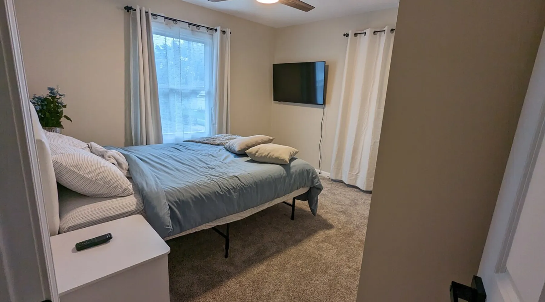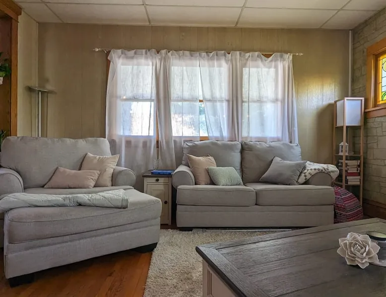 Come and stay in this quiet, centrally located home with on-street parking. The house is very spacious, and contains a formal dining room, a fully equipped kitchen, a parlor, and an office, and a tiny, very excited, happy-go lucky dog/host who wants to be best friends with everyone. Her name is Daisy, and she can be seen at the bedroom door.