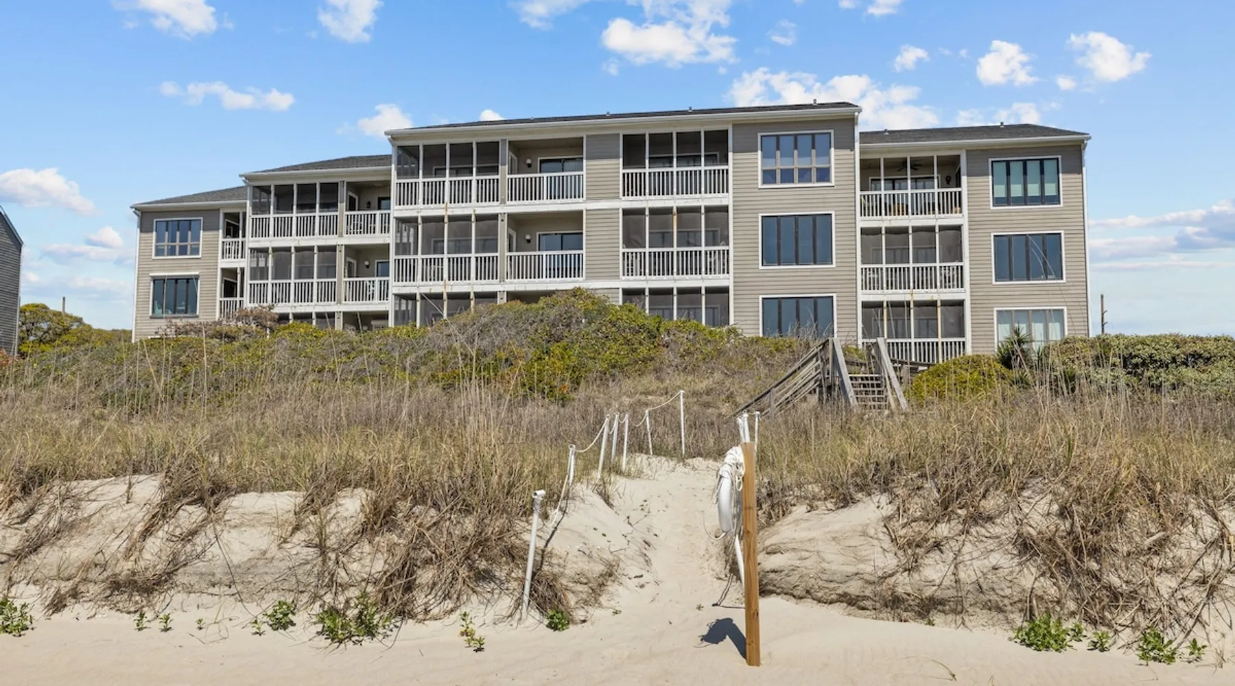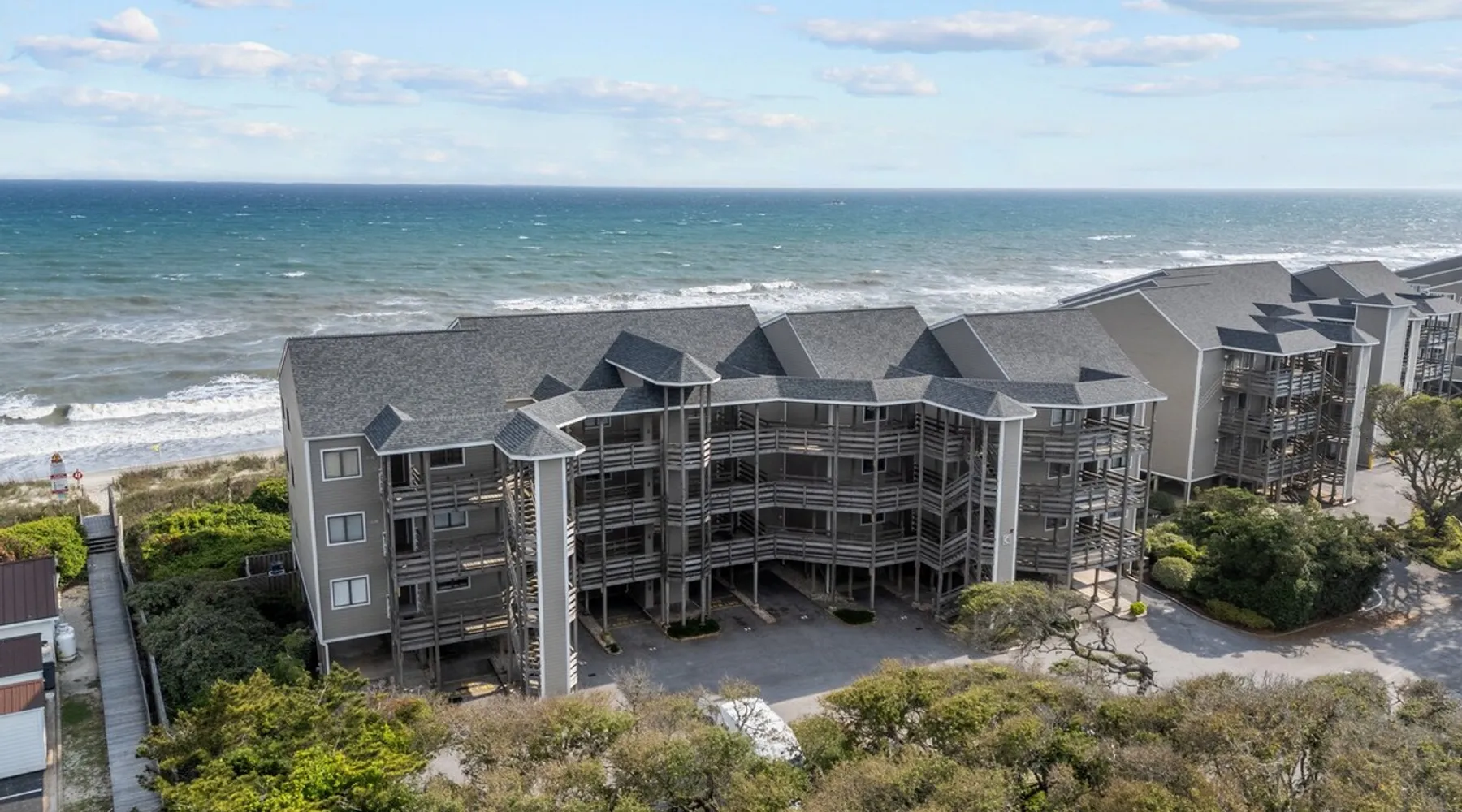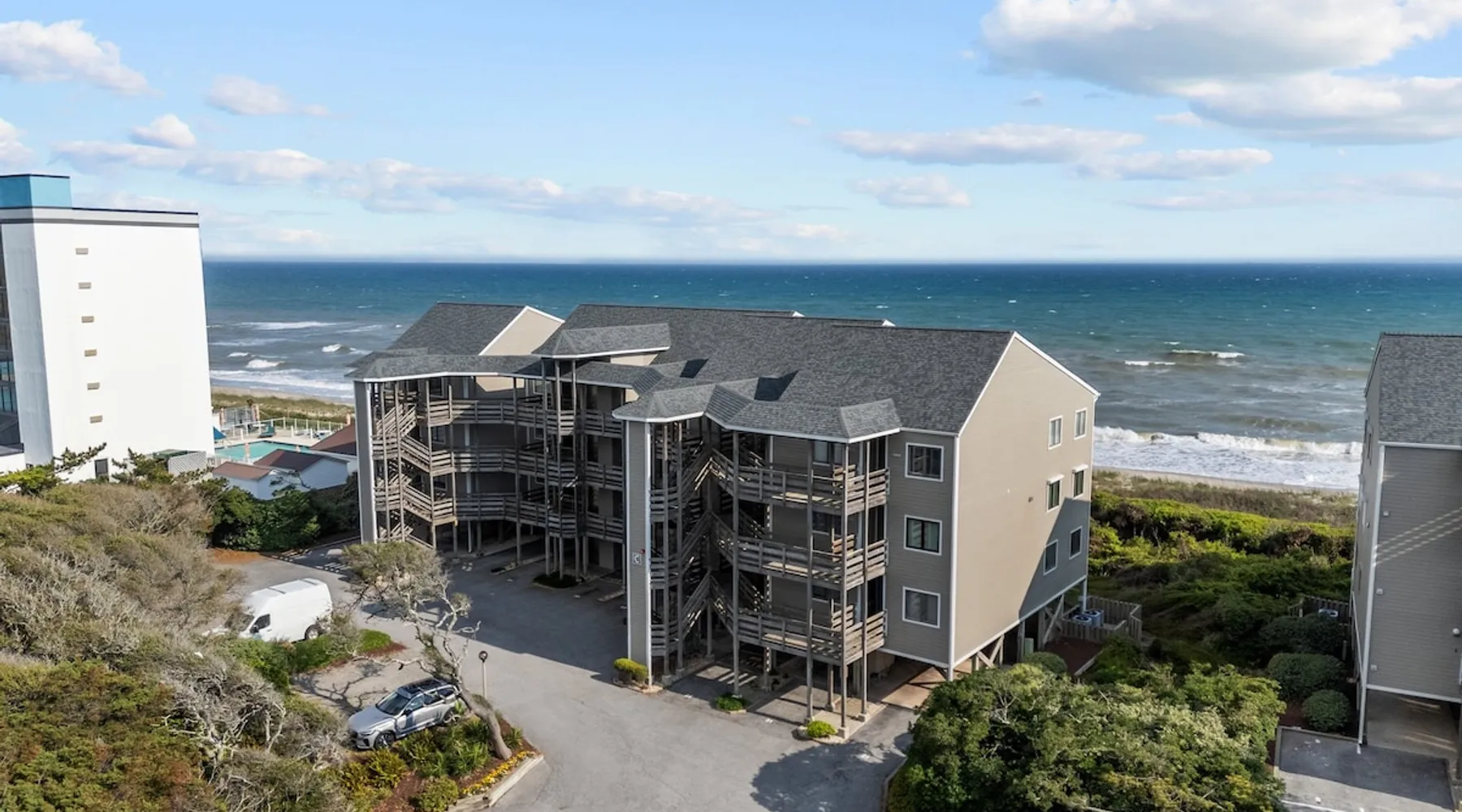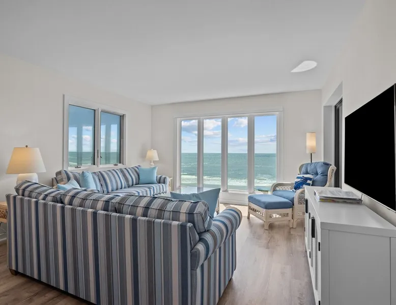 No Smoking at this property! The space Oceanfront Getaway in the Heart of North Carolina’s Crystal Coast! Wake up to breathtaking ocean views and the chance to spot dolphins from your living room—just steps from the sand at Shore Joy (The Breakers C-24), a beautifully situated 3-bedroom, 3-bath beachfront condo in a prime location between Emerald Isle and Atlantic Beach. Situated in Pine Knoll Shores along the Southern Outer Banks, this spacious oceanfront retreat offers private beach access; sweeping views from the living room, primary suite, and screened porch; and freshly updated coastal interiors. With a nearby elevator, covered parking, and fully equipped kitchen for home-cooked meals, Shore Joy is thoughtfully designed for comfort and convenience. You’ll also enjoy community amenities including two pools, tennis and pickleball courts, and scenic wooded trails. Or head just minutes away to explore the best of North Carolina’s Crystal Coast, including top dining, shopping, and attractions like the NC Aquarium, golf at Crystal Coast Country Club, family fun like mini golf and go-karts, and local favorites like historic Fort Macon and the waterfront charm of downtown Beaufort. Whether you're planning a family vacation, romantic couples’ getaway, or multi-generational trip, Shore Joy offers the perfect mix of relaxation, recreation, and unbeatable location. Book your beach escape today! Top Features at a Glance: - Dolphins often spotted from the panoramic ocean views - 3 bedrooms, each with a private en-suite bathroom, conveniently on one floor - Private beach access, plus pools, tennis and pickleball courts, and nature trails - Elevator located directly beside the unit - Covered parking and easy entry - Fully equipped kitchen, in-unit laundry, Wi-Fi and smart TV - Sunrise and sunset views most of the year - Central location on the Southern Outer Banks between Emerald Isle and Atlantic Beach, along North Carolina’s scenic Crystal Coast - Close to top-rated restaurants, golf, shopping, and family-friendly fun - Near historic Beaufort, Fort Macon, Cape Lookout Lighthouse, and more - Sleeps up to 6 – perfect for families, couples, or friends BED CONFIGURATIONS: 1 King Bed, 1 Queen Bed, and 2 Twin Beds LOCATION: 525 Salter Path Road, Unit C24 Pine Knoll Shores, NC 28512 WHAT IS PROVIDED: Spectrum Rental Properties will provide sheets and bath towels. Beach towels and equipment is not provided. If you would like information on beach equipment rentals, we are more than happy to provide you with a list. Properties will be provided with a starter kit in each full bathroom and kitchen. Each kitchen starter kit will contain a small bottle of dish soap, two dishwasher pods, sponge, and two fragrance free laundry pods. The kitchen will also have one extra trash bag Each bathroom starter kit will contain a travel size shampoo, conditioner, body lotion, makeup wipe, and body bar. Spectrum Rental Properties is unfortunately not able to provide additional boxes/bags. This is a starter kit; anything additional will be guests responsibility to provide. OTHER NOTES: -Parking is covered and may not be suitable for oversized SUV's/Trucks Beam height is 6' 3" x 8' 4" wide -No pets allowed -No smoking allowed -Only 2 parking passes allowed -The Community Pool is open April 1 through October (weather permitting)