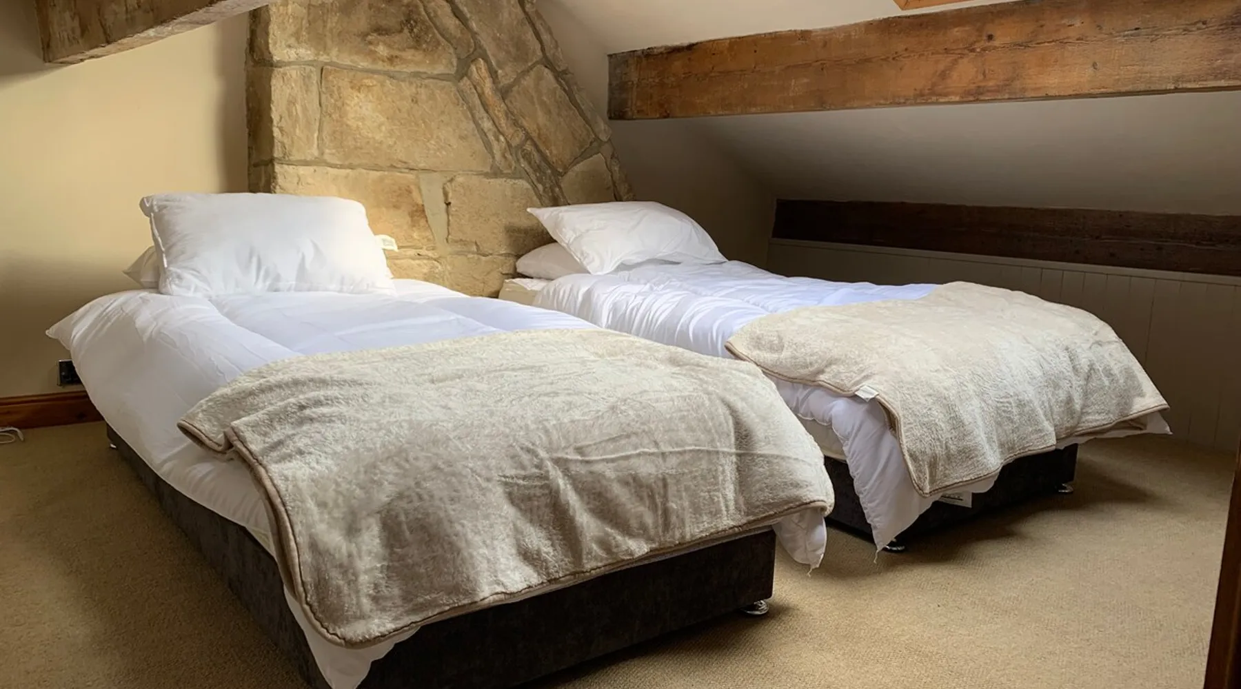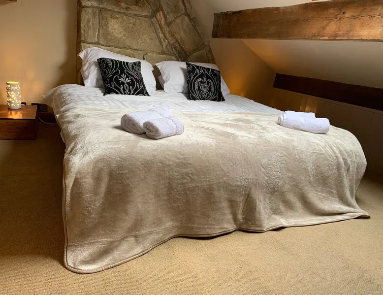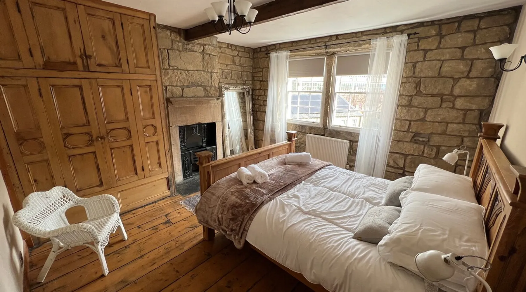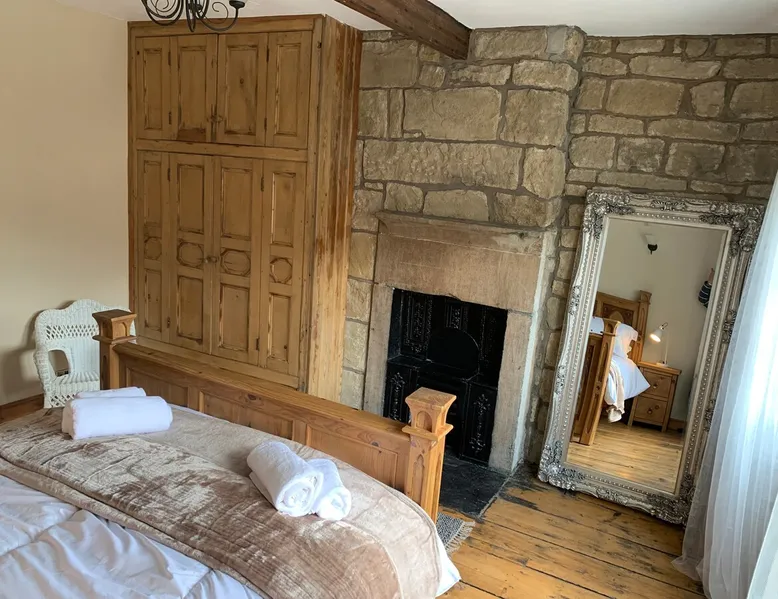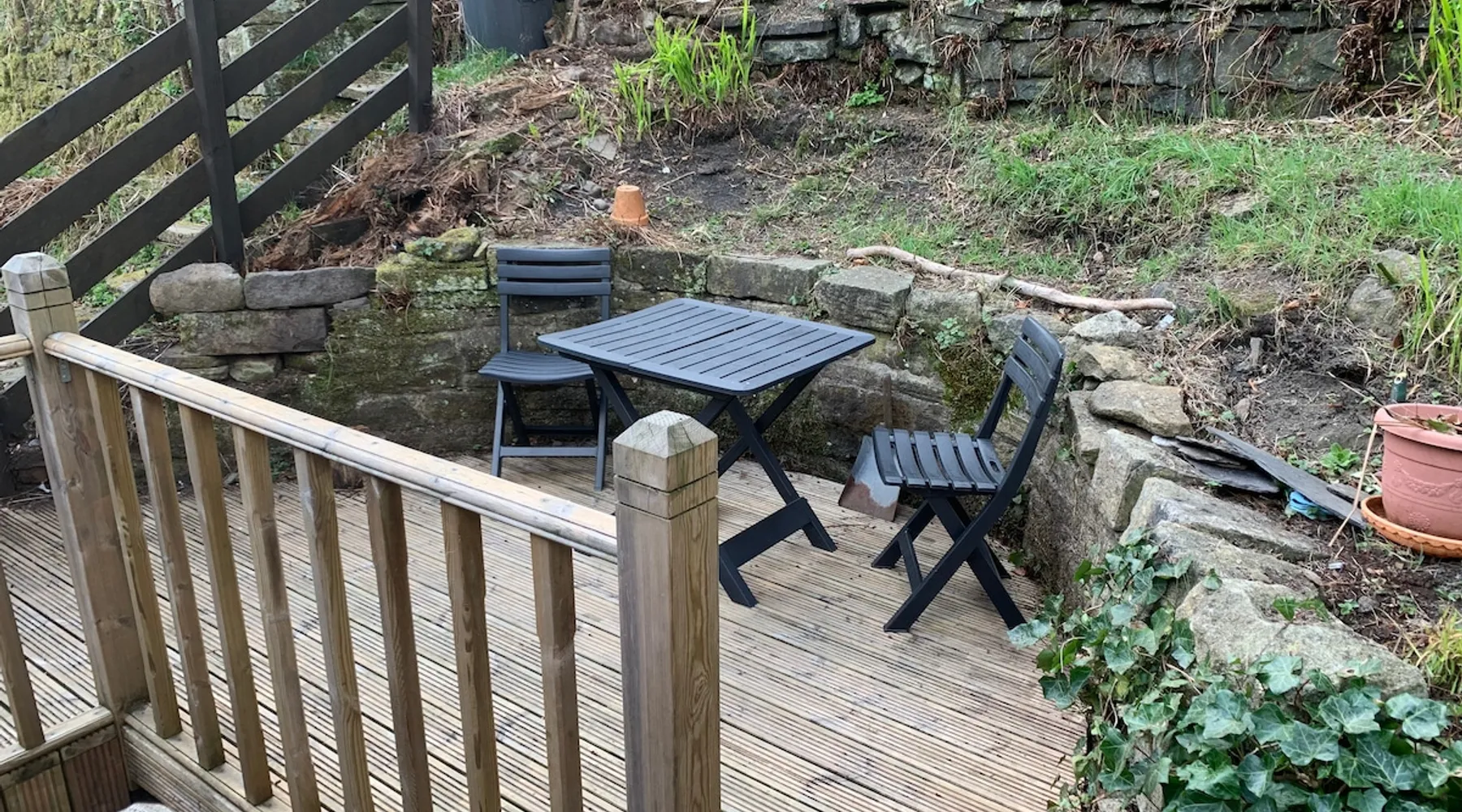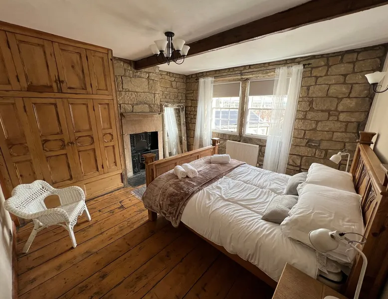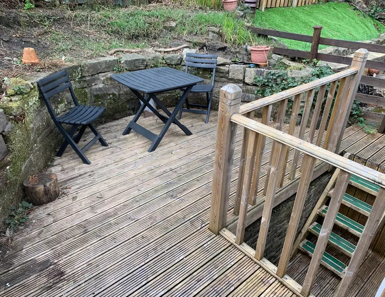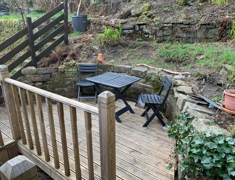 Meg's Den rests in Hebden Bridge and sleeps four people in two bedrooms. The space The living areas in this terraced, three-storey cottage include a kitchen with electric oven and hob, microwave, and fridge with ice box, and a living/dining room with a TV and gas fire. Two bedrooms include a king-size and a second-floor zip/link twin, along with a shower room. To the rear is a garden with a raised decking area with furniture, whilst roadside parking on a first-come, first-served basis can be found nearby. Within 0.2 miles, there is a shop, and within 0.1 miles, a pub. Two well-behaved dogs are welcome. Please note that smoking is not allowed. WiFi, fuel, power, bed linen and towels are all included in the price. Note: The first part of both staircases has no banister and are narrow and steep. There are sloped ceilings and exposed beams in the second-floor bedroom with limited head height. There are steps up to the raised decking without a banister. Enjoy the picturesque countryside surrounding Hebden Bridge from the historic setting of Meg's Den. Other things to note The living areas in this terraced, three-storey cottage include a kitchen with electric oven and hob, microwave, and fridge with ice box, and a living/dining room with a TV and gas fire. Two bedrooms include a king-size and a second-floor zip/link twin, along with a shower room. To the rear is a garden with a raised decking area with furniture, whilst roadside parking on a first-come, first-served basis can be found nearby. Within 0.2 miles, there is a shop, and within 0.1 miles, a pub. Two well-behaved dogs are welcome. Please note that smoking is not allowed. WiFi, fuel, power, bed linen and towels are all included in the price. Note: The first part of both staircases has no banister and are narrow and steep. There are sloped ceilings and exposed beams in the second-floor bedroom with limited head height. There are steps up to the raised decking without a banister. Enjoy the picturesque countryside surrounding Hebden Bridge from the historic setting of Meg's Den.