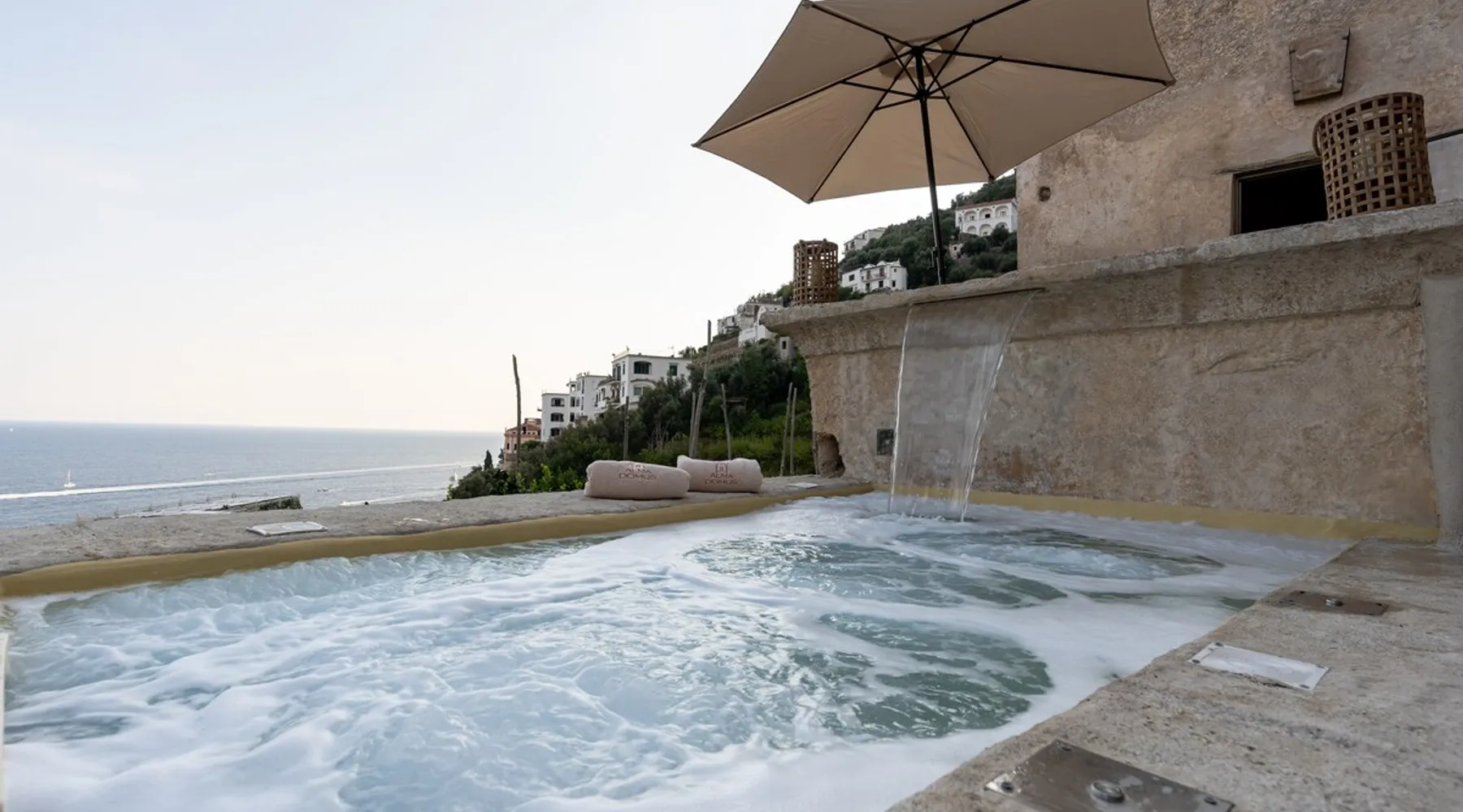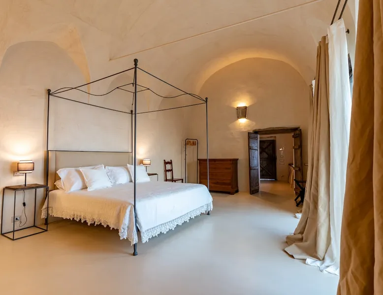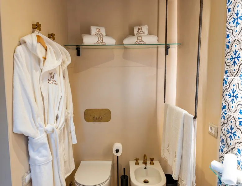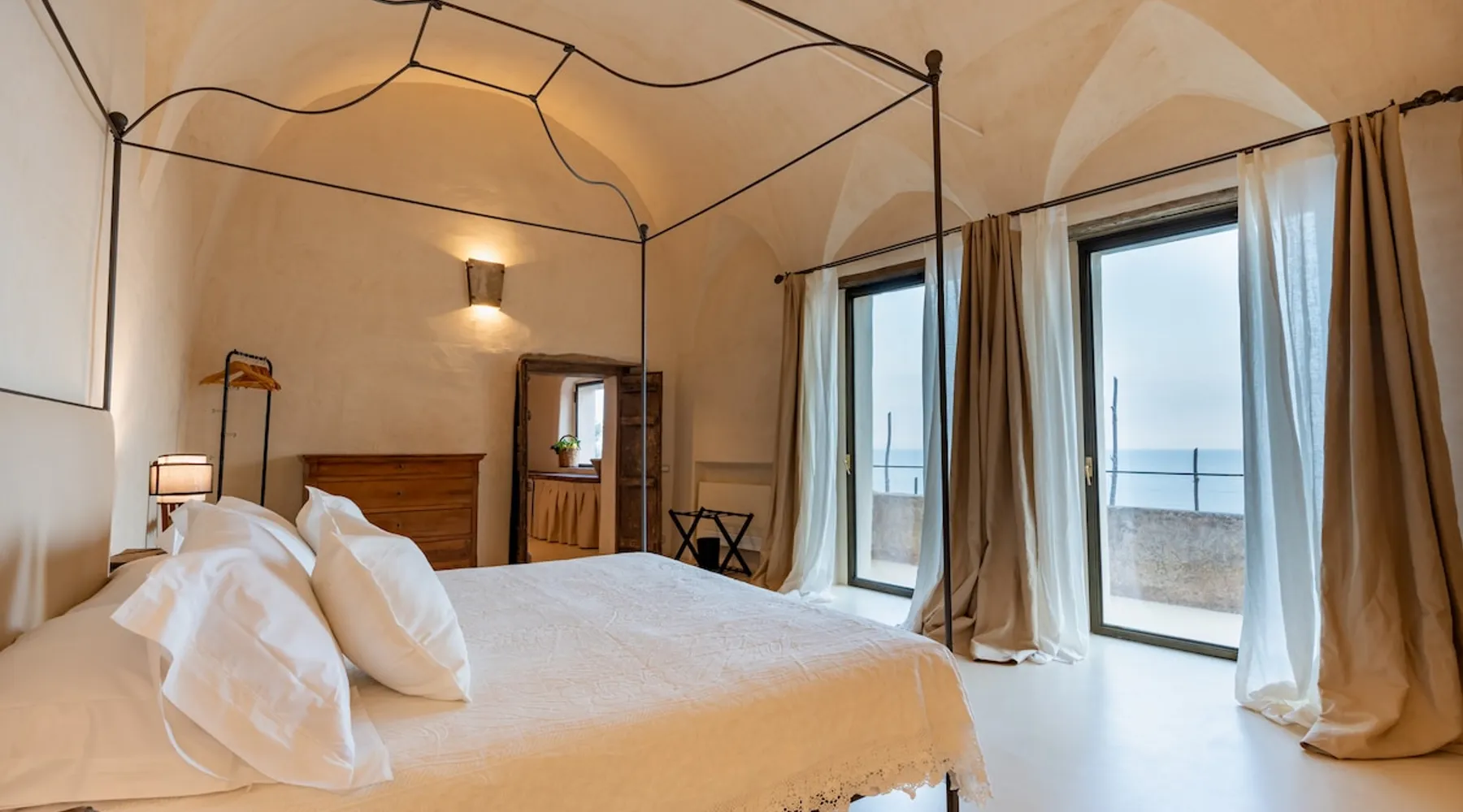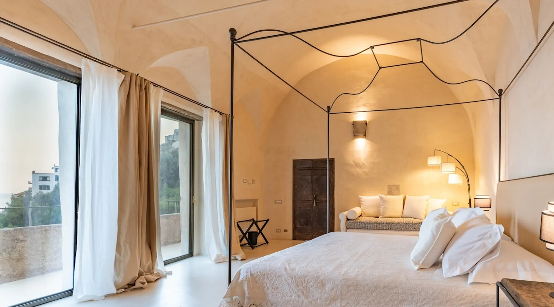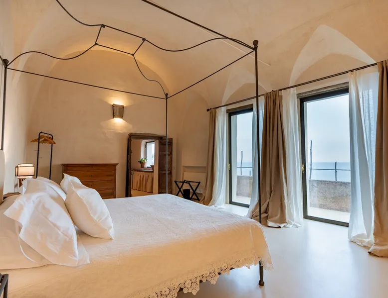 The AURORA apartment is part of one of the oldest and most interesting vaulted houses in Amalfi, called Alma Domus. Alma Domus comprises two apartments for a total of three bedrooms and 6 beds, each with a private bathroom and terrace, all with sea views, illuminated, from dawn to dusk, by an enveloping light that, over the seasons and the day, changes the colors of the particular finishes that characterize the material plasters, both internal and external, in lime and pumice. The space Aurora apartment is a spacious suite with a king bed (190 x 210) with a wrought-iron canopy. It can accommodate up to four people two adults and 2 children on a sofa bed for a fee. Terrace at the entrance overlooking the east on a romantic garden in which centuries-old and southern olive trees dominate with sea views, with shower and stone hot tub outside with water blade and 3 hydro stations with heating up to 30 degrees Celsius upon request and for a fee, available all year round. Entrance with small station with coffee and cappuccino machine, small minibar, characteristic sink, plates, glasses and cutlery, portable induction plate at a fire, where you can prepare and consume breakfast or simple sneak for two people. On good days you can eat drinks, breakfast and simple meals on the outdoor terrace, ( even for 4 people also served upon request). Ceiling sometimes lunits. Large fixtures with a steel door, minimalist profile. Vintage drawer. Bathroom with two showerheads in rainfall, wall decorated with ancient "riggiole", freestending travertine washbasin, carved by local artisan, ceiling in antique chestnut beams. AURORA is one of two units that make up Alma domus one of the most interesting vaulted houses on the Amalfi Coast the subject of a long recently completed conservative restoration. For information about the entire property contact the host or click on the following links: airbnb.com/h/almadomusamalfi airbnb.com/h/cieloesole Not included in the price are the final cleaning costs (inside and outside) of €150 and the tourist tax of €3 per person per day , which must be paid upon your arrival. For more information, ask your host. Check-in is in person and the time is from 3:30 p.m. to 7:00 p.m. Beyond this time, upon advance request, there will be additional costs for late check-in, based on the arrival time, to be paid at the property. The cost ranges from €60 to €150. Check-out is not possible after 10 a.m. Ask the host for special needs. We will do our best to please you. During your stay Andreina will contact you to give you all the information you need. Other things to note The cost of the tourist tax of €3 per person per day and final cleaning ( internal and external) of €150 is not included in the price, therefore it will be paid at the property upon arrival. Ask your host for more detailed information about this. If you want, we can provide luggage transportation upon arrival and departure. You can learn about the cost of this service by contacting the host. We also provide the following extra services upon advance request : -boat rentals to the island of Capri and tour of the coast of Amalfi -cooter rental -car parking upon request with daily payment -Yoga lessons - Massages -served breakfast -served scene -frigobar -free at home -consierge -cleaning and dry cleaning services -transfer to and from the airports -tour for Pompei and Herculaneum -Luggage door service The center of Amalfi is a 10-minute walk away . Check-in is in person and the time is from 3:30 p.m. to 7:00 p.m. Beyond this time, upon advance request, there will be additional costs for late check-in, based on the arrival time, to be paid at the property. The cost ranges from €60 to €150. Check-out is not possible after 10 a.m. Ask the host for special needs. We will do our best to please you. Registration Details IT065006B45L476ZW6
