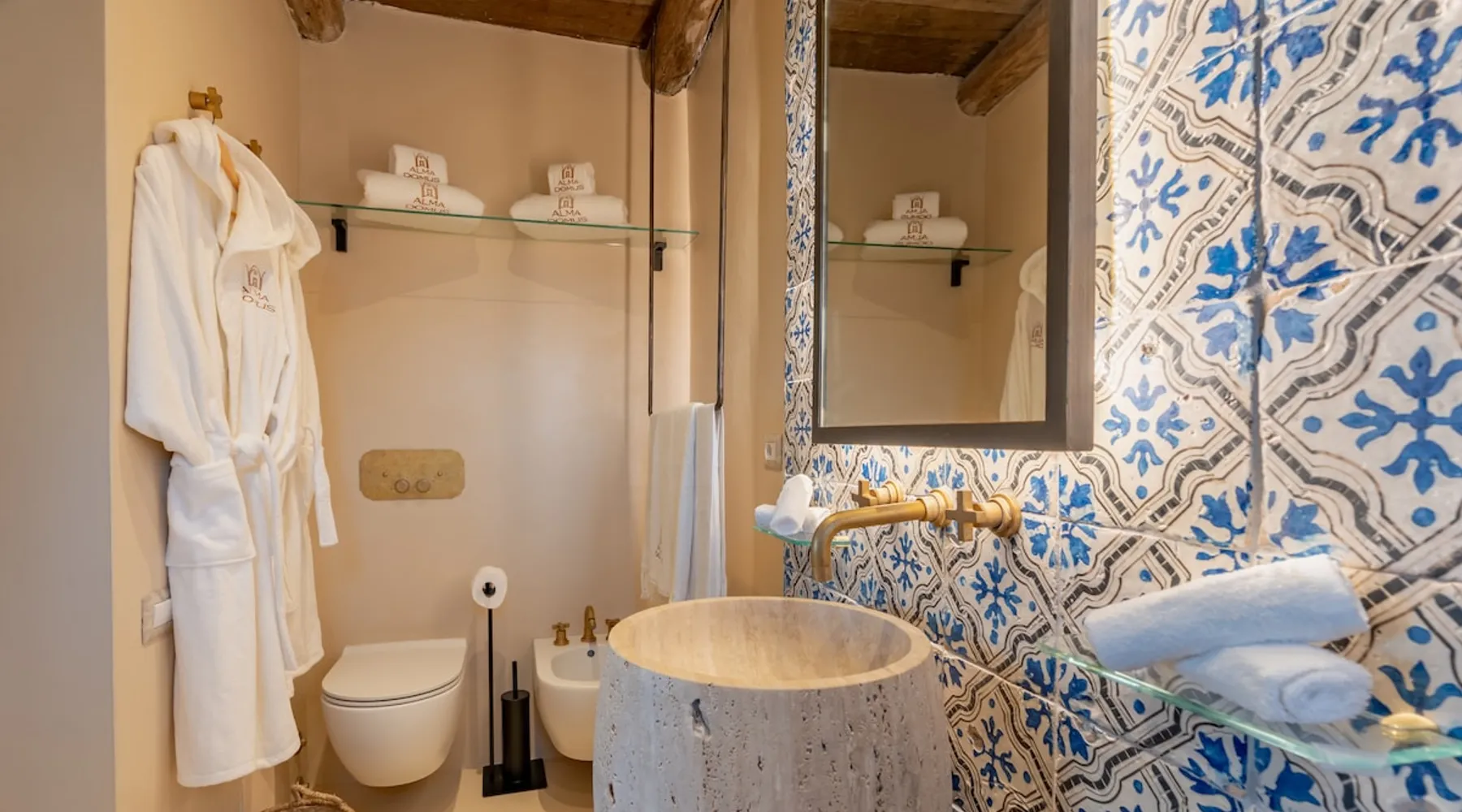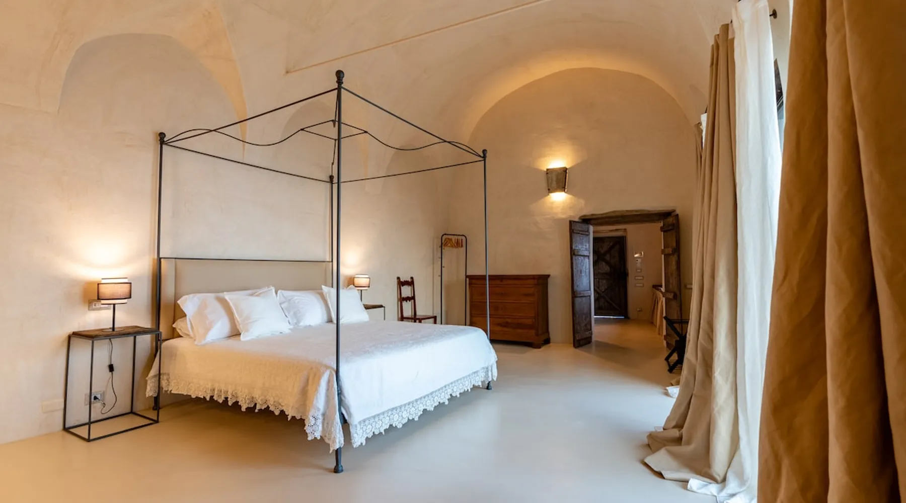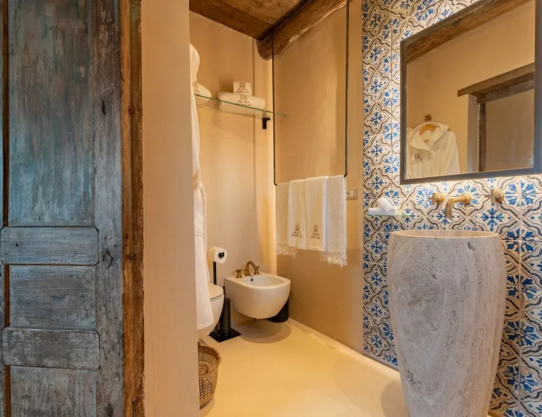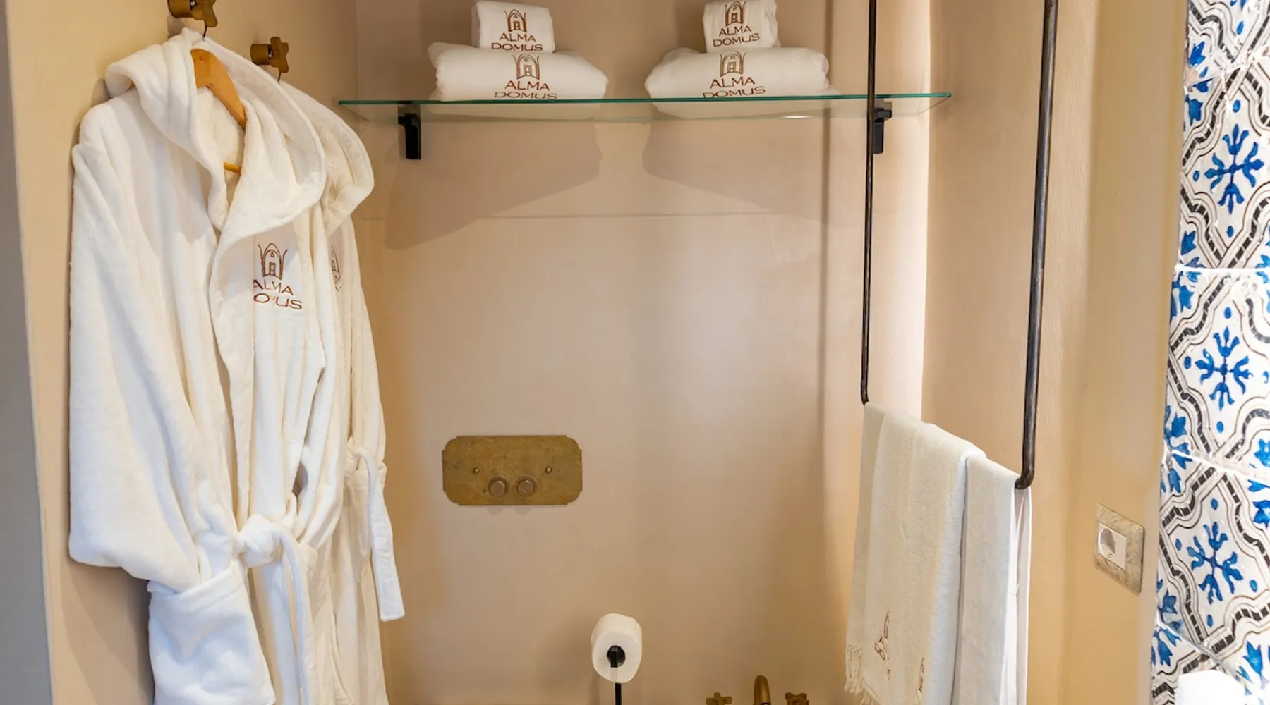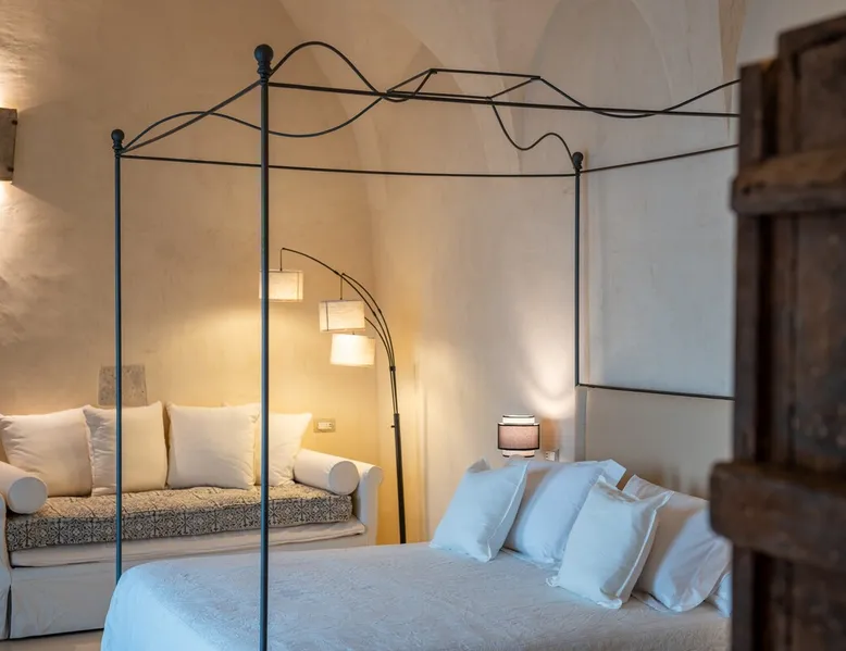 The AURORA apartment is part of one of the oldest and most interesting vaulted houses in Amalfi, called Alma Domus. Alma Domus comprises two apartments for a total of three bedrooms and 6 beds, each with a private bathroom and terrace, all with sea views, illuminated, from dawn to dusk, by an enveloping light that, over the seasons and the day, changes the colors of the particular finishes that characterize the material plasters, both internal and external, in lime and pumice. The space Aurora apartment is a spacious suite with a king bed (190 x 210) with a wrought-iron canopy. It can accommodate up to four people two adults and 2 children on a sofa bed for a fee. Terrace at the entrance overlooking the east on a romantic garden in which centuries-old and southern olive trees dominate with sea views, with shower and stone hot tub outside with water blade and 3 hydro stations with heating up to 30 degrees Celsius upon request and for a fee, available all year round. Entrance with small station with coffee and cappuccino machine, small minibar, characteristic sink, plates, glasses and cutlery, portable induction plate at a fire, where you can prepare and consume breakfast or simple sneak for two people. On good days you can eat drinks, breakfast and simple meals on the outdoor terrace, ( even for 4 people also served upon request). Ceiling sometimes lunits. Large fixtures with a steel door, minimalist profile. Vintage drawer. Bathroom with two showerheads in rainfall, wall decorated with ancient "riggiole", freestending travertine washbasin, carved by local artisan, ceiling in antique chestnut beams. AURORA is one of two units that make up Alma domus one of the most interesting vaulted houses on the Amalfi Coast the subject of a long recently completed conservative restoration. For information about the entire property contact the host or click on the following links: airbnb.com/h/almadomusamalfi airbnb.com/h/cieloesole Not included in the price are the final cleaning costs (inside and outside) of €150 and the tourist tax of €3 per person per day , which must be paid upon your arrival. For more information, ask your host. Check-in is in person and the time is from 3:30 p.m. to 7:00 p.m. Beyond this time, upon advance request, there will be additional costs for late check-in, based on the arrival time, to be paid at the property. The cost ranges from €60 to €150. Check-out is not possible after 10 a.m. Ask the host for special needs. We will do our best to please you. During your stay Andreina will contact you to give you all the information you need. Other things to note The cost of the tourist tax of €3 per person per day and final cleaning ( internal and external) of €150 is not included in the price, therefore it will be paid at the property upon arrival. Ask your host for more detailed information about this. If you want, we can provide luggage transportation upon arrival and departure. You can learn about the cost of this service by contacting the host. We also provide the following extra services upon advance request : -boat rentals to the island of Capri and tour of the coast of Amalfi -cooter rental -car parking upon request with daily payment -Yoga lessons - Massages -served breakfast -served scene -frigobar -free at home -consierge -cleaning and dry cleaning services -transfer to and from the airports -tour for Pompei and Herculaneum -Luggage door service The center of Amalfi is a 10-minute walk away . Check-in is in person and the time is from 3:30 p.m. to 7:00 p.m. Beyond this time, upon advance request, there will be additional costs for late check-in, based on the arrival time, to be paid at the property. The cost ranges from €60 to €150. Check-out is not possible after 10 a.m. Ask the host for special needs. We will do our best to please you. Registration Details IT065006B45L476ZW6
