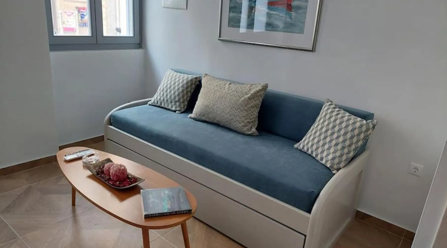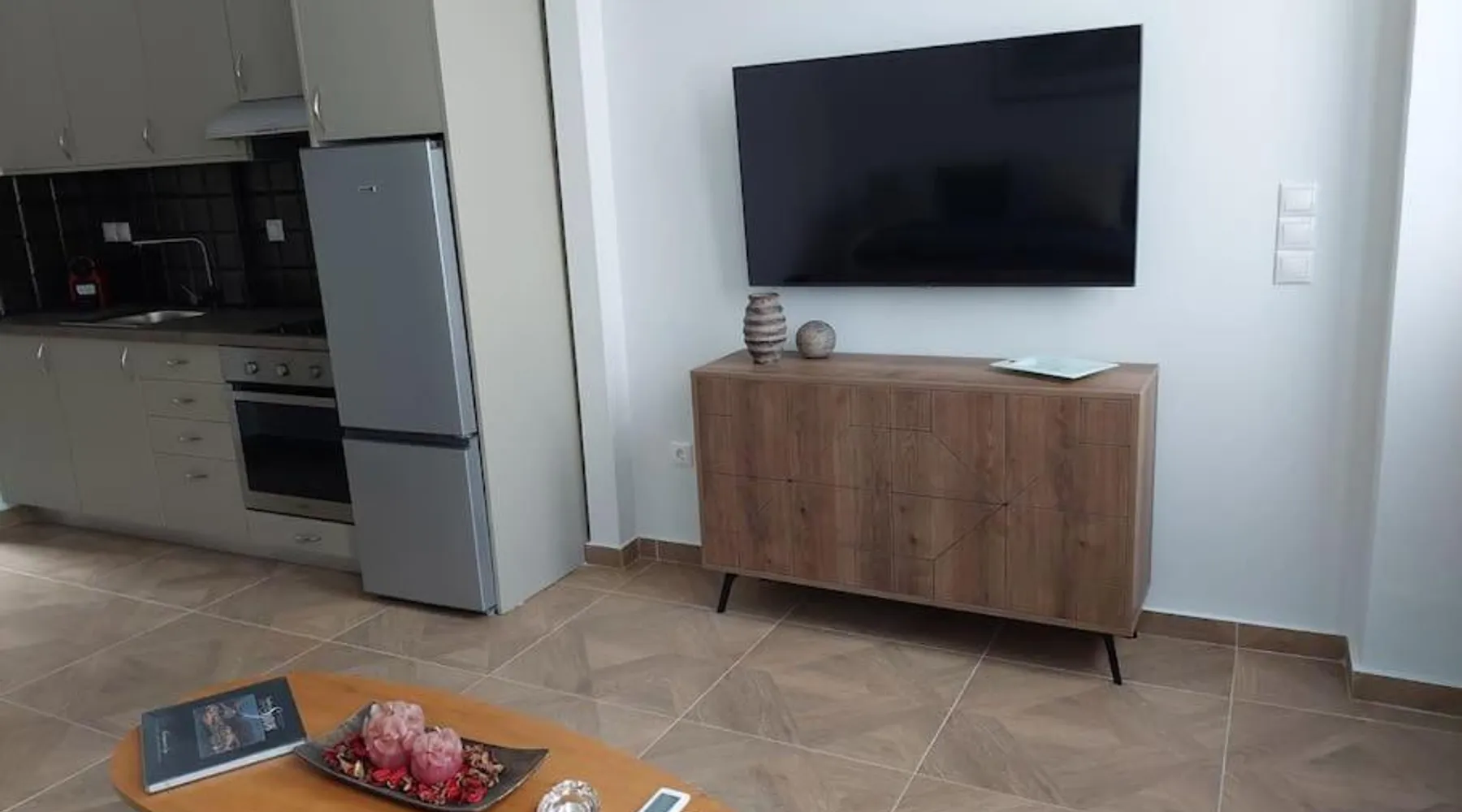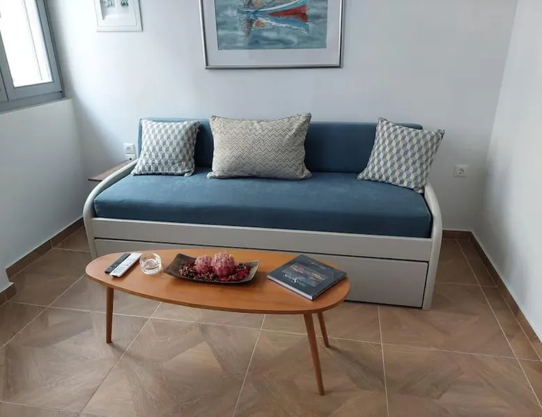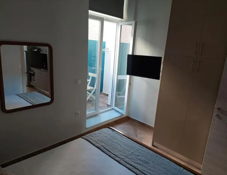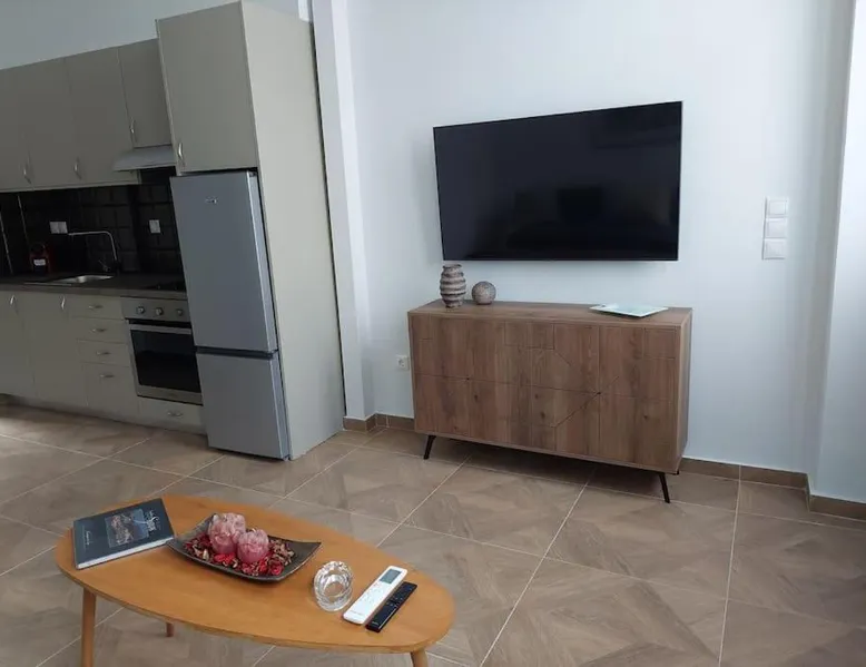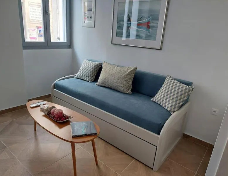 Comfortable Living Space: Central Apartment in Ermoupolis offers a one-bedroom apartment with a living room. The property includes a balcony, air-conditioning, and a kitchenette equipped with a refrigerator, oven, and stovetop. Modern Amenities: Guests enjoy free WiFi, streaming services, and a washing machine. The apartment features a sofa bed, soundproofing, and tiled floors. Additional amenities include a tea and coffee maker, hairdryer, and wardrobe. Convenient Location: Located in Ermoupoli, the apartment is 1.9 mi from Syros Island National Airport. Nearby attractions include Asteria Beach, a 15-minute walk away, Saint Nicholas Church at 0.7 mi, and the Industrial Museum of Ermoupoli, a 6-minute walk. In the well-equipped kitchen, guests will find a stovetop, a refrigerator, an oven and a tea and coffee maker. The apartment provides air conditioning, a washing machine, a private entrance, soundproof walls and a flat-screen TV with streaming services. The unit offers 2 beds.