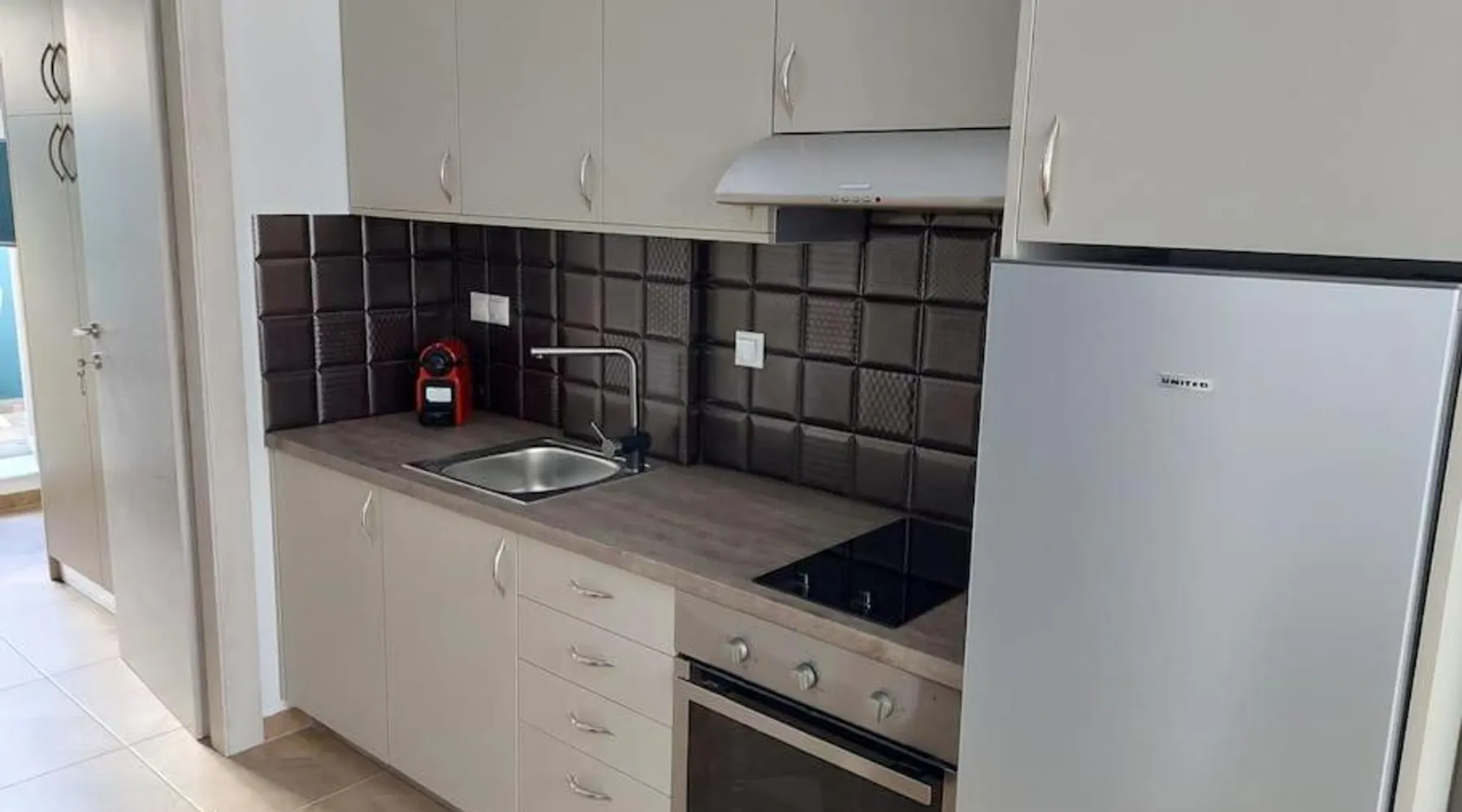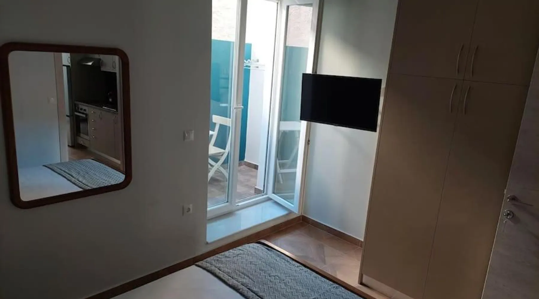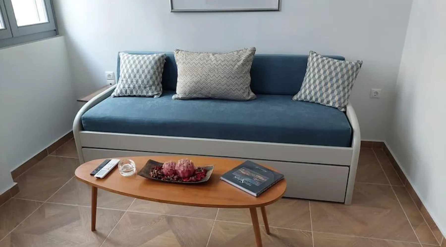 Comfortable Living Space: Central Apartment in Ermoupolis offers a one-bedroom apartment with a living room. The property includes a balcony, air-conditioning, and a kitchenette equipped with a refrigerator, oven, and stovetop. Modern Amenities: Guests enjoy free WiFi, streaming services, and a washing machine. The apartment features a sofa bed, soundproofing, and tiled floors. Additional amenities include a tea and coffee maker, hairdryer, and wardrobe. Convenient Location: Located in Ermoupoli, the apartment is 1.9 mi from Syros Island National Airport. Nearby attractions include Asteria Beach, a 15-minute walk away, Saint Nicholas Church at 0.7 mi, and the Industrial Museum of Ermoupoli, a 6-minute walk. In the well-equipped kitchen, guests will find a stovetop, a refrigerator, an oven and a tea and coffee maker. The apartment provides air conditioning, a washing machine, a private entrance, soundproof walls and a flat-screen TV with streaming services. The unit offers 2 beds.