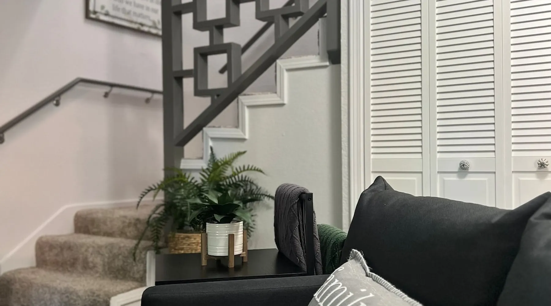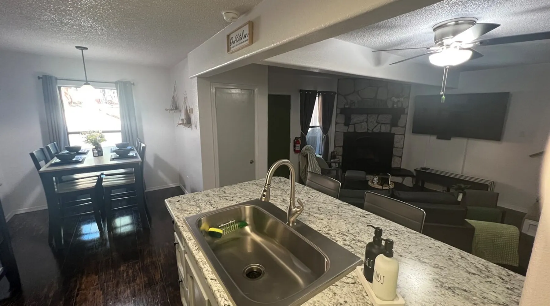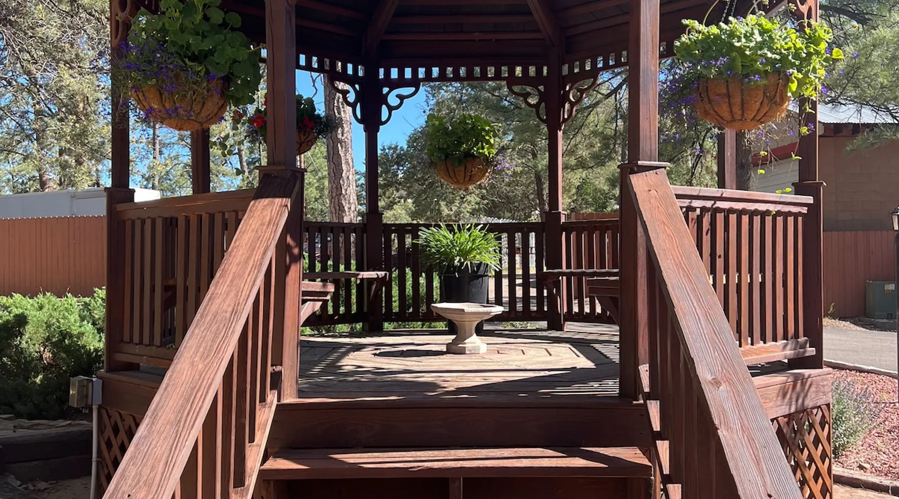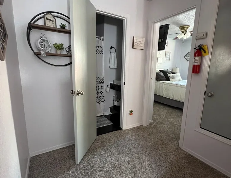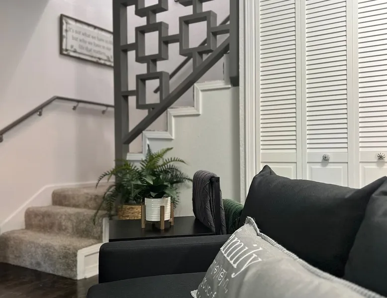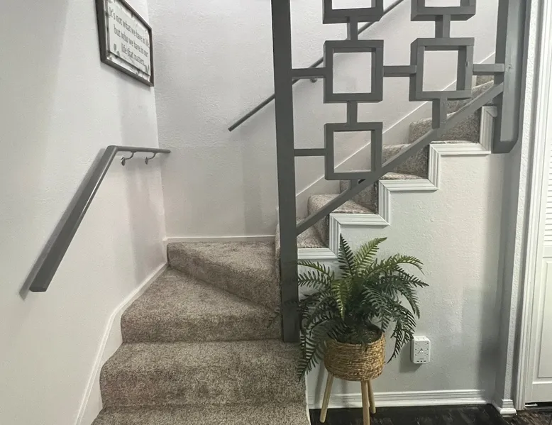 Desert Sage Getaway is a charming and cozy, newly updated 2 bedroom, 1 ½ bath condo. A short distance from main street Ruidoso where you can enjoy mountain living along with plenty of modern conveniences and comforts. Only a 5 minute drive from Mid-town, nearby golf course and Ski Apache. We want to provide you with a high quality, clean getaway with amenities that ensure a great experience for you! This home away from home includes all the amenities you need to enjoy your time in Ruidoso!! The space For a 1 night stay only please send inquiry! Cozy 2 story condo newly renovated! *) New state of the art stainless-steel appliances: full refrigerator w/ ice maker, dishwasher, flat-top electric stove, microwave, garbage disposal *) Fully equipped kitchen: dishware/flatware, bakeware, pots/pans, toaster, Keurig, Spices, water kettle, blender *) Coffee and hot teas provided to guests *) Dining table for 4-6 along with counter top & stools for the quick bite to eat *) Full washer/dryer with laundry pods/dryer sheets *) Controlled heating system and gas fire place with Faux logs *) Free wi-fi throughout the condo *) Large 65 in HDTV in the living room with additional TVs in the upstairs bedrooms with access to smart apps *) Propane gas grill in the front porch with seating *) Living room stow away table full of games to enjoy *) Outside deck off of the master bedroom with seating *) Bedroom lamps with built in USB connections for easy device charging *) Shampoo/conditioner/body soap dispenser in shower, hairdryer, ironing board with iron, hangers in all closets *)The master bedroom has a King size bed, the second bedroom has a Queen size bed, and there is a sofa sleeper in the living room that can easily be converted into a Full size bed with an included inflatable mattress for extra comfort. *)There are ceiling fans in both bedrooms as well as in the living room ➔ Two parking spaces are located right in front of the condo for convenience Other things to Note: *) A beautiful gazebo and seating area is located right in front of the condo *)trash dumpster in close proximity to condo for convenience Other things to note There is a baby gate available in upstairs closet that is easy to place at top of stairs for extra safety feature