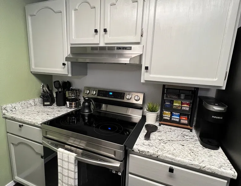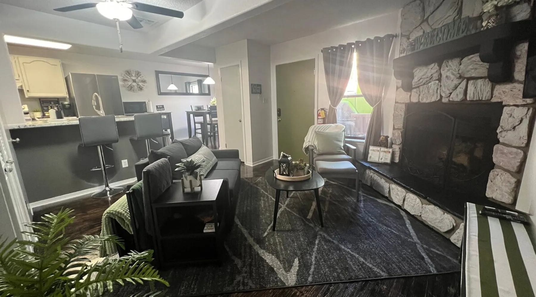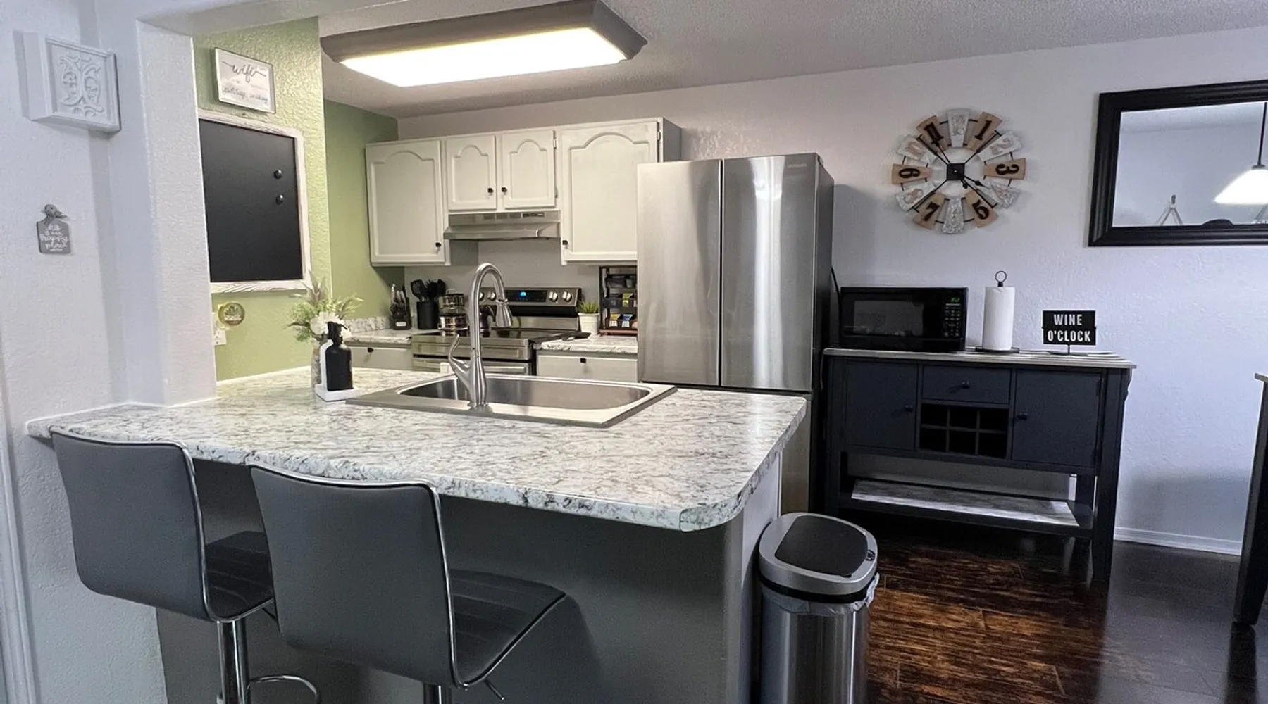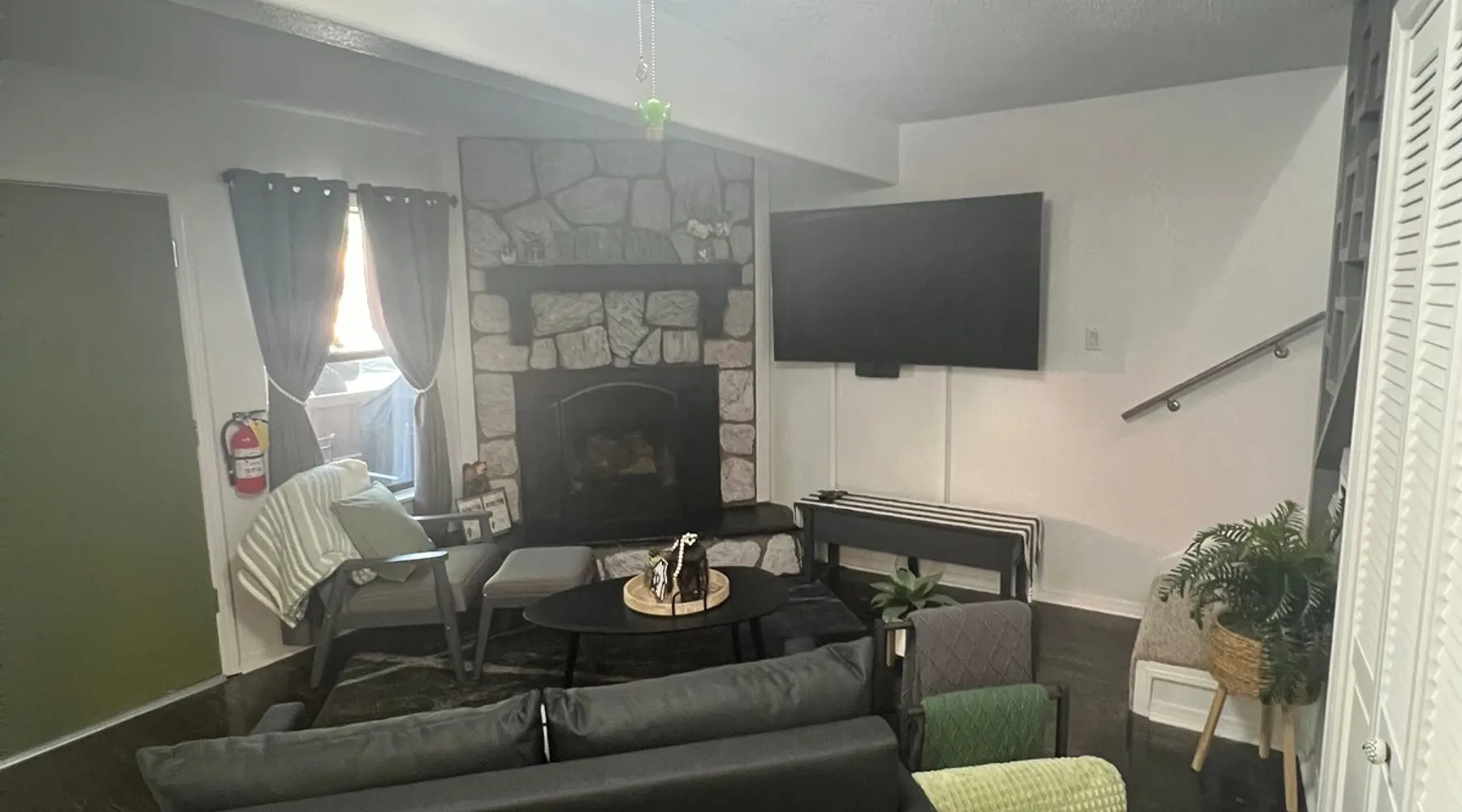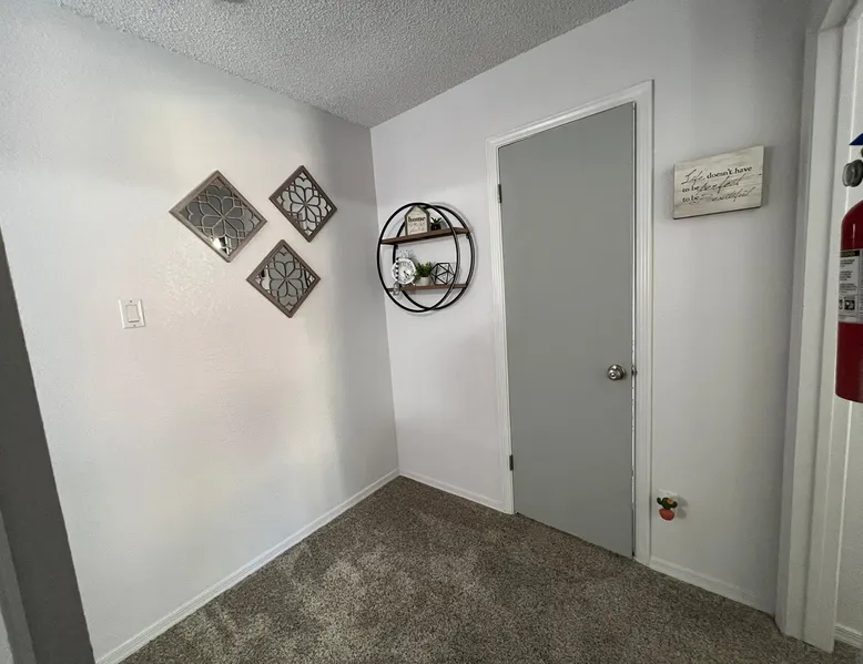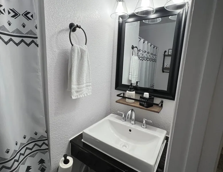 Desert Sage Getaway is a charming and cozy, newly updated 2 bedroom, 1 ½ bath condo. A short distance from main street Ruidoso where you can enjoy mountain living along with plenty of modern conveniences and comforts. Only a 5 minute drive from Mid-town, nearby golf course and Ski Apache. We want to provide you with a high quality, clean getaway with amenities that ensure a great experience for you! This home away from home includes all the amenities you need to enjoy your time in Ruidoso!! The space For a 1 night stay only please send inquiry! Cozy 2 story condo newly renovated! *) New state of the art stainless-steel appliances: full refrigerator w/ ice maker, dishwasher, flat-top electric stove, microwave, garbage disposal *) Fully equipped kitchen: dishware/flatware, bakeware, pots/pans, toaster, Keurig, Spices, water kettle, blender *) Coffee and hot teas provided to guests *) Dining table for 4-6 along with counter top & stools for the quick bite to eat *) Full washer/dryer with laundry pods/dryer sheets *) Controlled heating system and gas fire place with Faux logs *) Free wi-fi throughout the condo *) Large 65 in HDTV in the living room with additional TVs in the upstairs bedrooms with access to smart apps *) Propane gas grill in the front porch with seating *) Living room stow away table full of games to enjoy *) Outside deck off of the master bedroom with seating *) Bedroom lamps with built in USB connections for easy device charging *) Shampoo/conditioner/body soap dispenser in shower, hairdryer, ironing board with iron, hangers in all closets *)The master bedroom has a King size bed, the second bedroom has a Queen size bed, and there is a sofa sleeper in the living room that can easily be converted into a Full size bed with an included inflatable mattress for extra comfort. *)There are ceiling fans in both bedrooms as well as in the living room ➔ Two parking spaces are located right in front of the condo for convenience Other things to Note: *) A beautiful gazebo and seating area is located right in front of the condo *)trash dumpster in close proximity to condo for convenience Other things to note There is a baby gate available in upstairs closet that is easy to place at top of stairs for extra safety feature