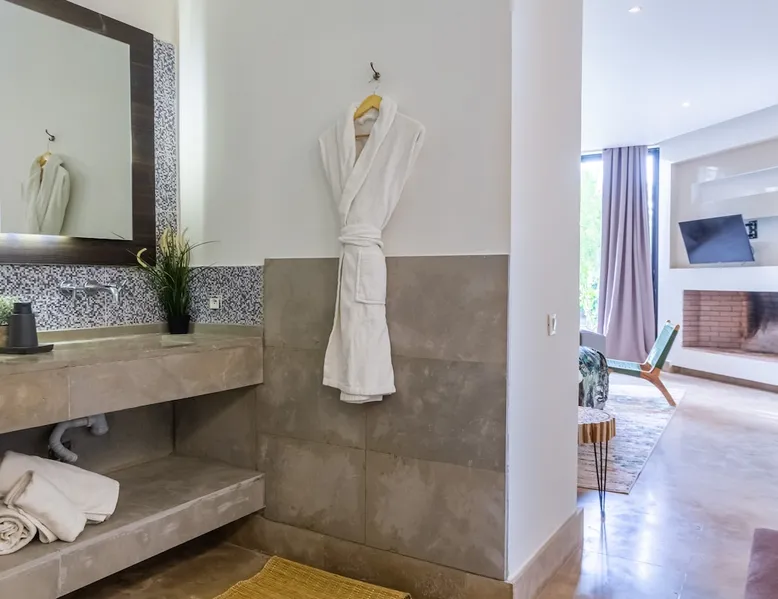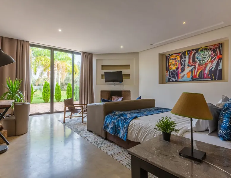 Villa Tomazo is located 7 km from Bahia Palace, with free parking, terrace and garden. Marrakech can be reached in 10 minutes drive from the property. Rooms are filled with a flat-screen TV with satellite channels and centralized air conditioning. The accommodation also includes a private balcony.