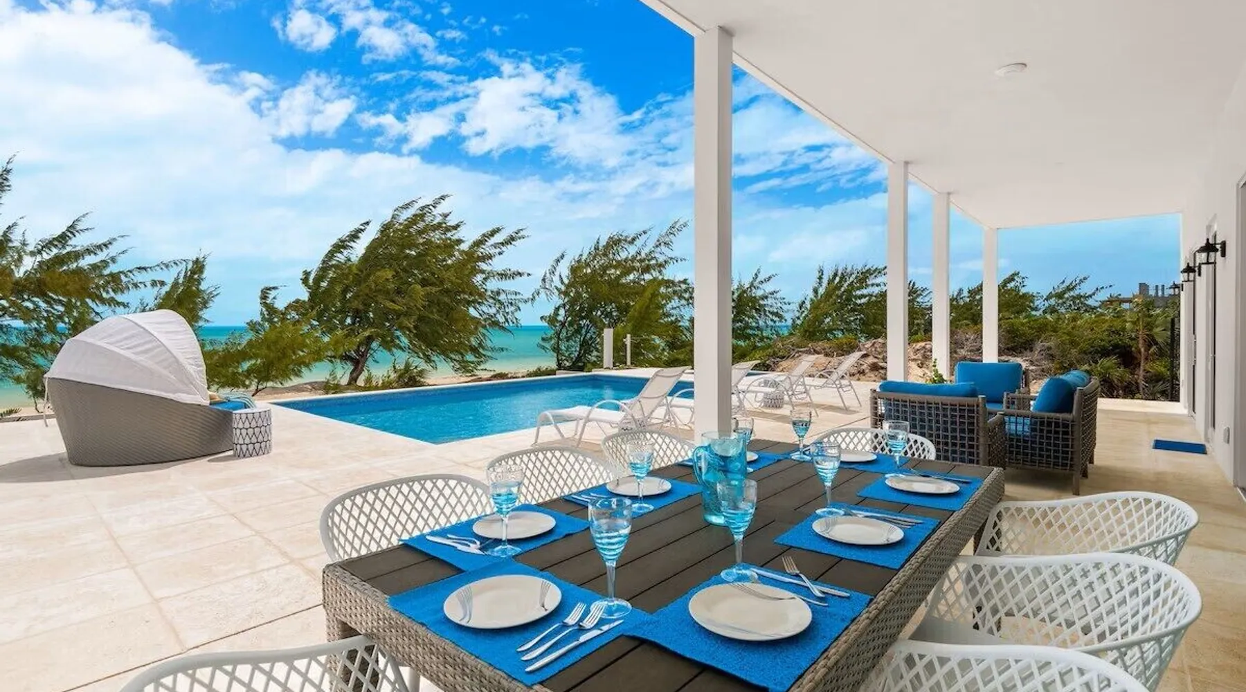 An inviting and spacious modern property overlooking Long Bay Beach’s coveted golden sands, Hura Sea Azure offers comfort and convenience in a stunning east coast location. This contemporary beachside hideaway is nestled between wind swept Casuarina trees and the dazzling crystalline waters which surround the Turks & Caicos Islands. With powdery sands and warm shallows on the doorstep, you will be immersed in the sights and sounds of the sea from dawn ‘til dusk. Fresh white and turquoise interiors blend seamlessly with stylish outdoor dining and living spaces boasting poolside and beach views. This is a pristine Long Bay residence, designed with island adventures and relaxation in mind. Our prices include all fees. No hidden fees.