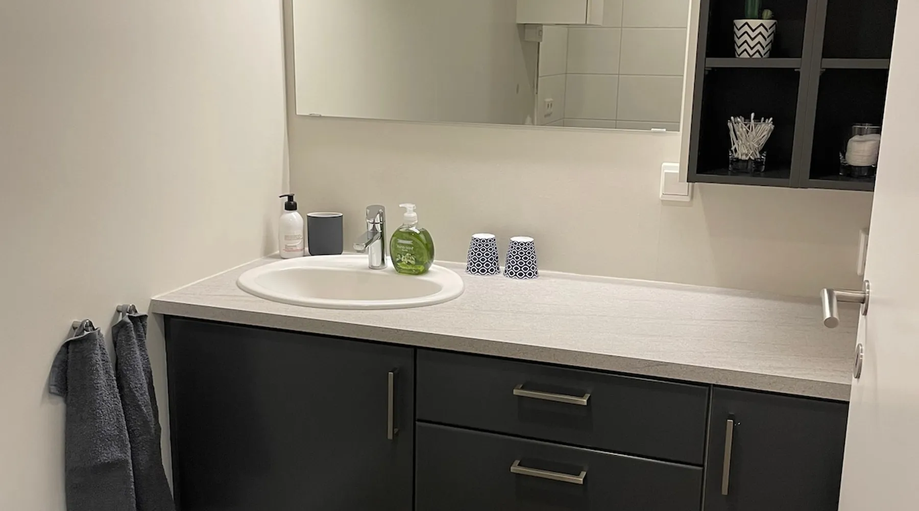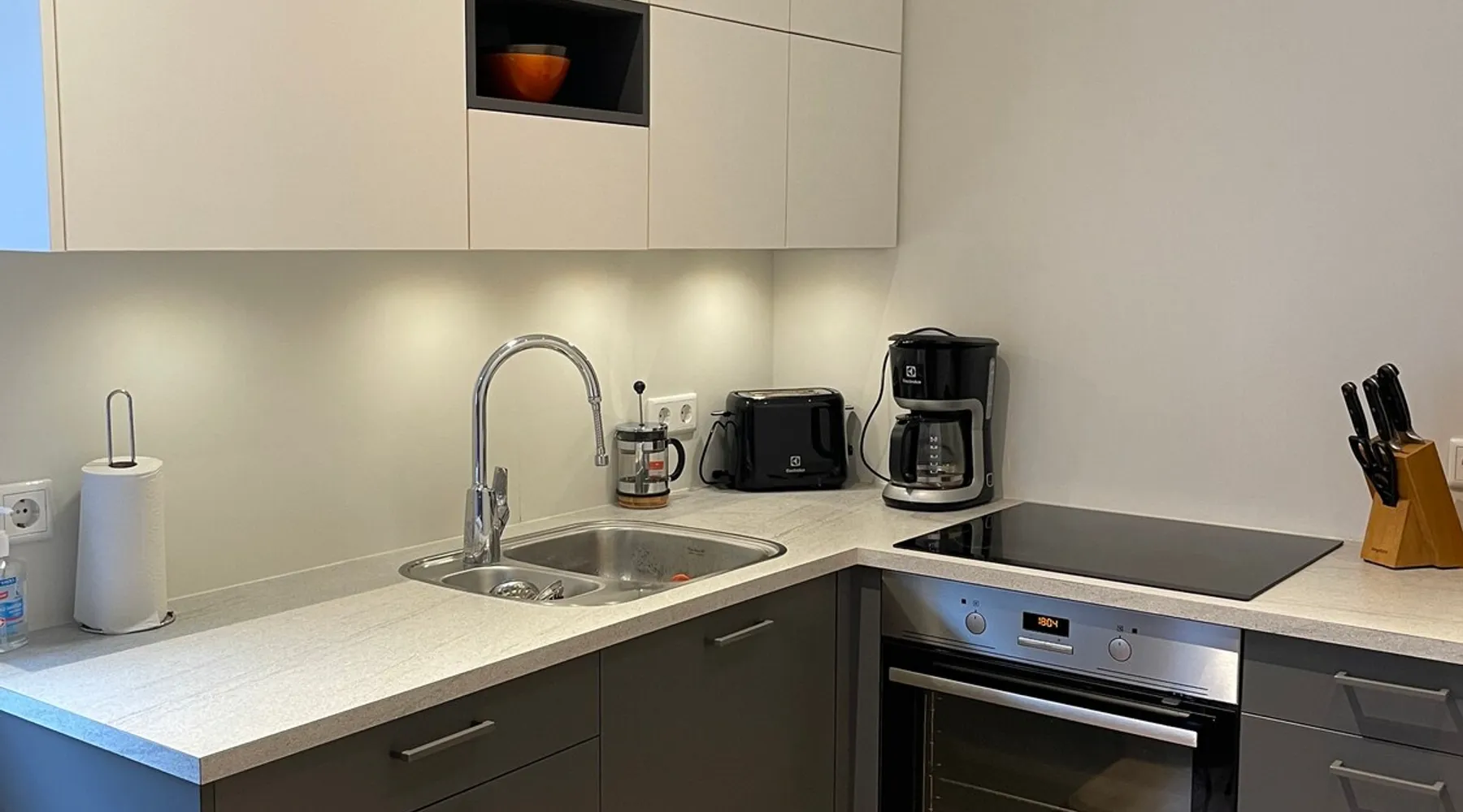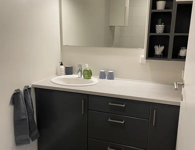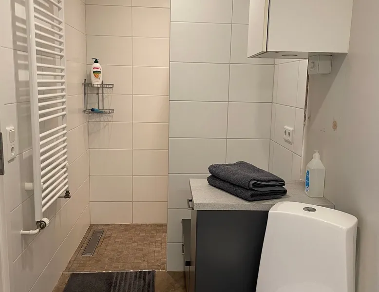 Beautiful small guesthouse-apartment with one bedroom, bathroom, and a fully equipped kitchen. The space A small and a cozy guesthouse, in a converted detached garage (next to our house), that accommodates up to four people. The location is in a quiet residential neighborhood. There is one bedroom with a queen size bed and in the living is a sofa bed. With a fully equipped kitchen and a bathroom with a walk in shower. Sleeps up to four people. Two persons in bedroom and two persons in a sofabed in the living room. The bedroom has blackout curtains for our midnight sun. License number: HR-00000343 Guest access You have the entire apartment for yourself.