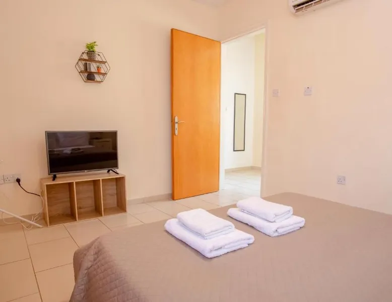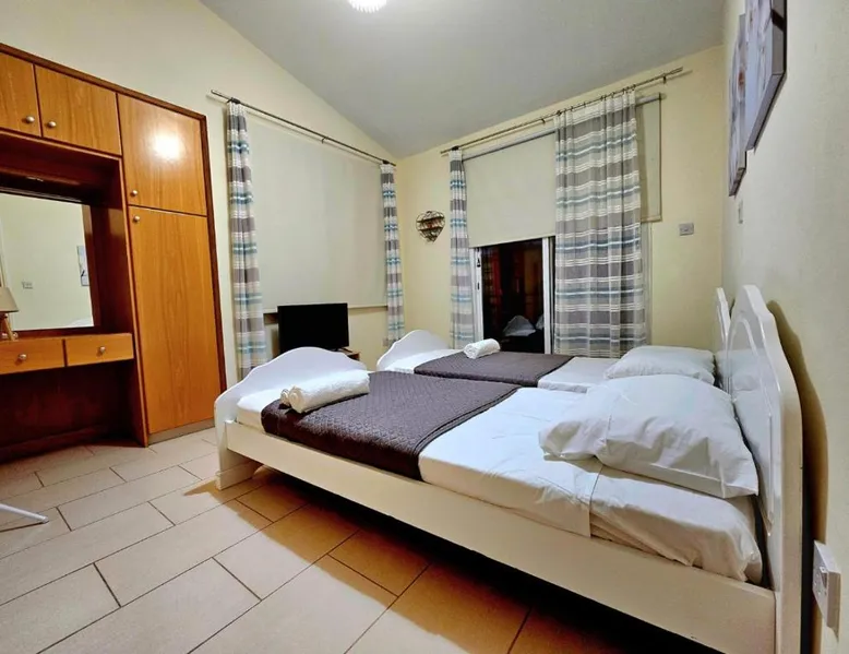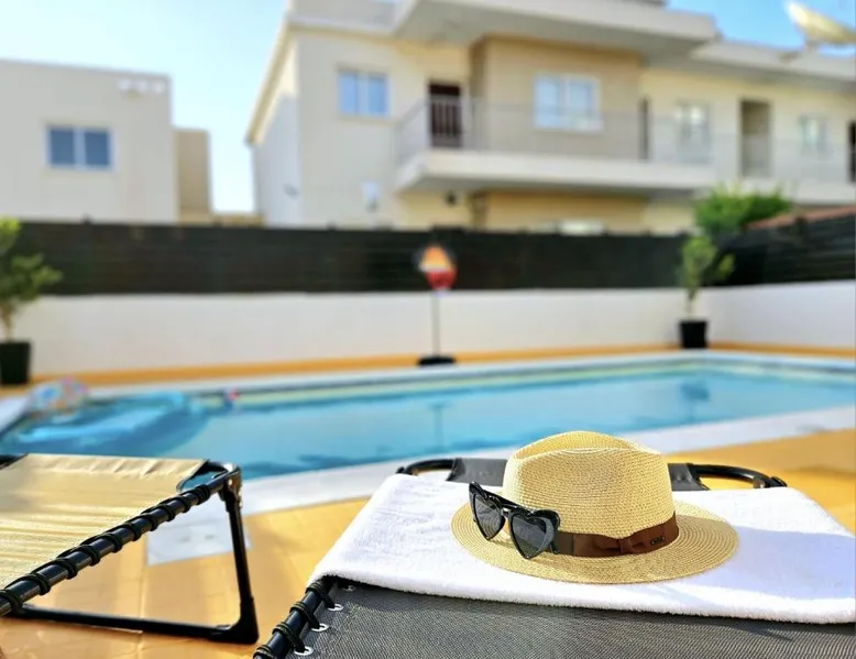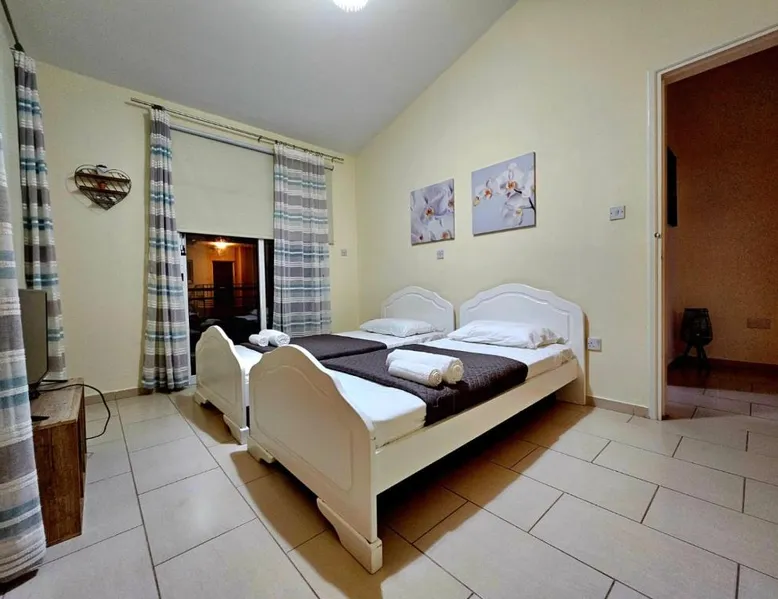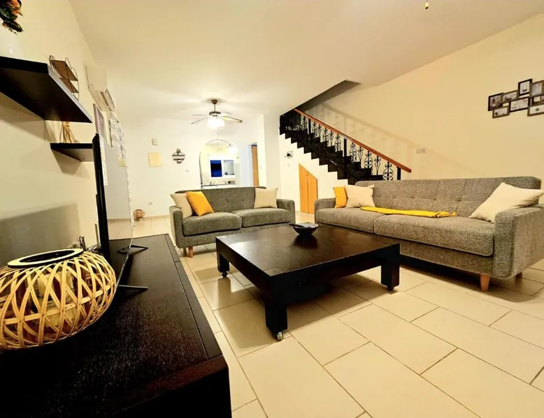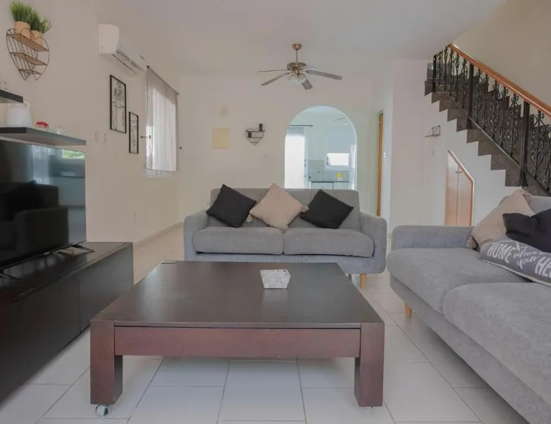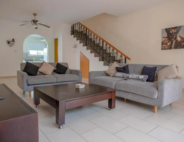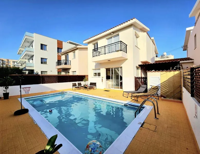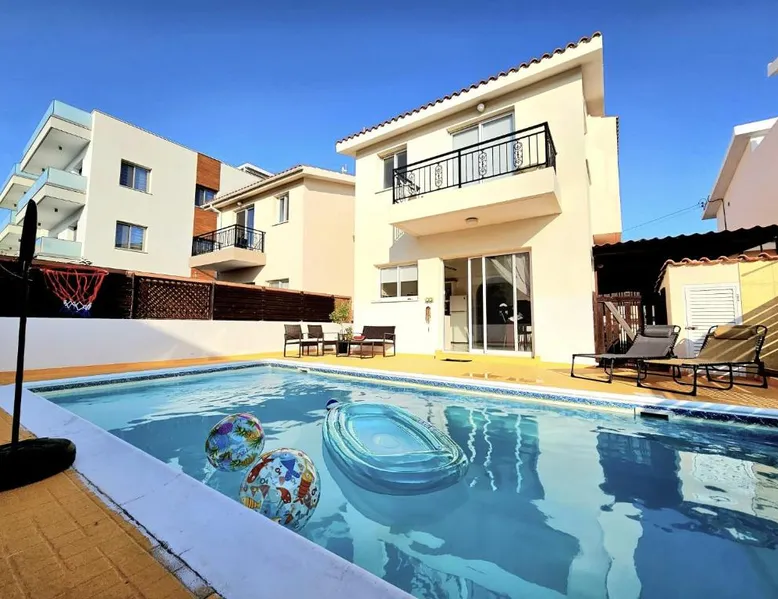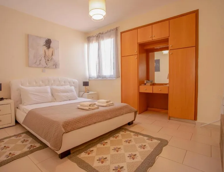 Spacious Villa with Private Pool: Spacious Villa with Private Pool in Paphos offers a sun terrace, indoor swimming pool, and a lush garden. Guests enjoy free WiFi, water sports facilities, and an outdoor play area. Comfortable Accommodations: The villa features family rooms, a fully equipped kitchen, and a private pool. Additional amenities include air-conditioning, a washing machine, and a private bathroom with free toiletries. Convenient Location: Located 4.3 mi from Paphos International Airport, the property is near attractions such as Paphos Municipal Baths (18-minute walk) and Kings Avenue Mall (1.1 mi). Scuba diving is available in the surroundings. Guest Favorites: Guests highly rate the swimming pool, convenient location, and fully equipped kitchen. Featuring 3 bedrooms and 2 bathrooms, this villa offers a living room and private pool where you can relax. The villa's kitchen, which has kitchenware, is available for cooking and storing food. This villa features air conditioning, a washing machine and a flat-screen TV. The unit has 5 beds.