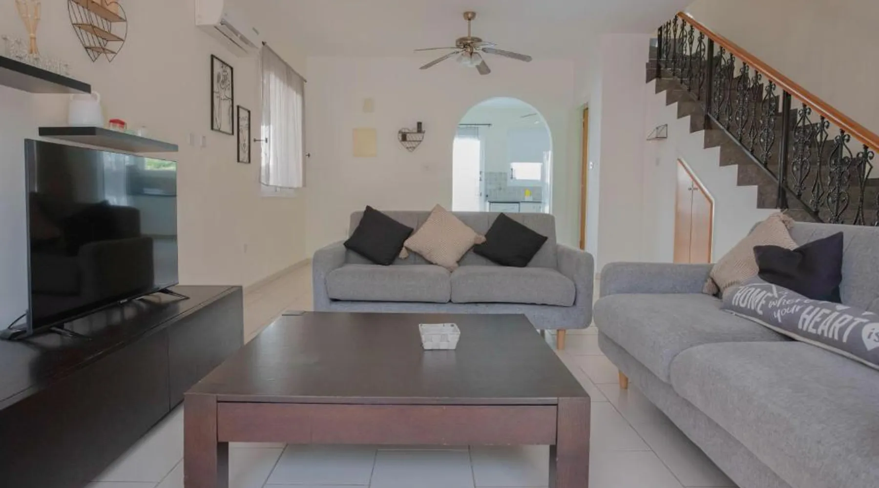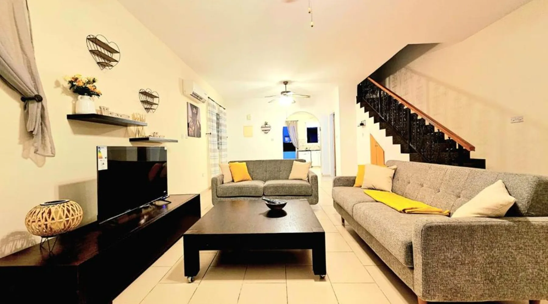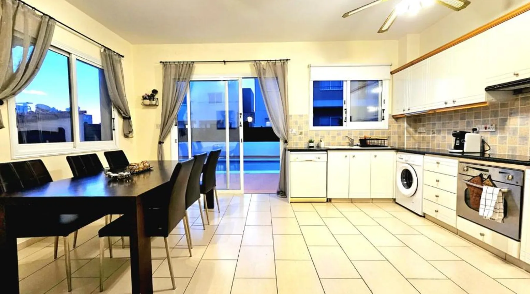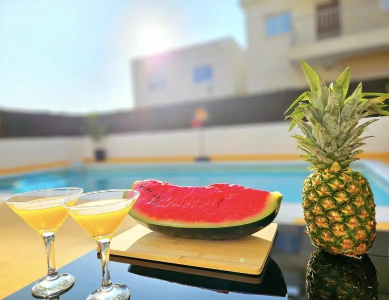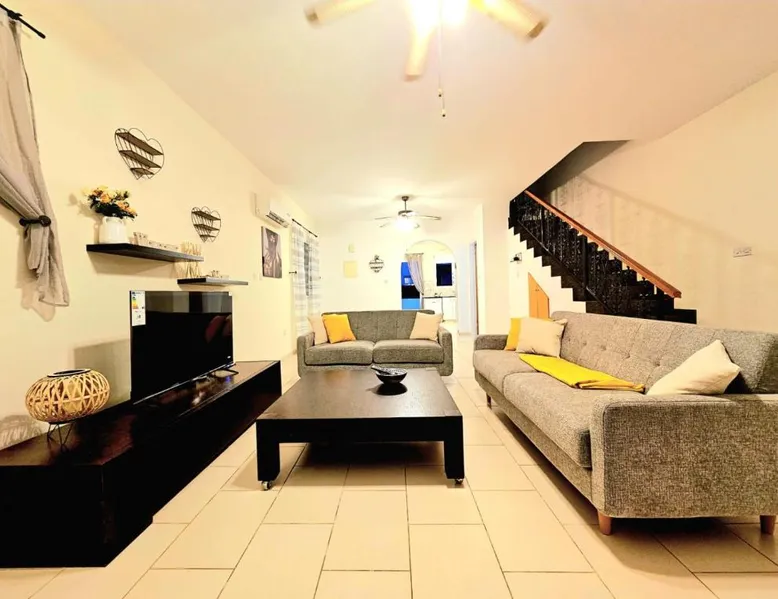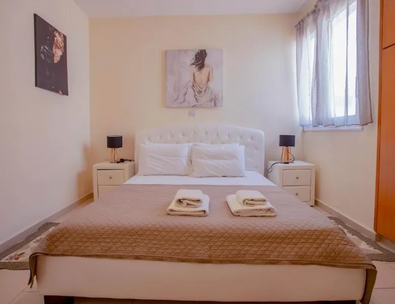 Spacious Villa with Private Pool: Spacious Villa with Private Pool in Paphos offers a sun terrace, indoor swimming pool, and a lush garden. Guests enjoy free WiFi, water sports facilities, and an outdoor play area. Comfortable Accommodations: The villa features family rooms, a fully equipped kitchen, and a private pool. Additional amenities include air-conditioning, a washing machine, and a private bathroom with free toiletries. Convenient Location: Located 4.3 mi from Paphos International Airport, the property is near attractions such as Paphos Municipal Baths (18-minute walk) and Kings Avenue Mall (1.1 mi). Scuba diving is available in the surroundings. Guest Favorites: Guests highly rate the swimming pool, convenient location, and fully equipped kitchen. Featuring 3 bedrooms and 2 bathrooms, this villa offers a living room and private pool where you can relax. The villa's kitchen, which has kitchenware, is available for cooking and storing food. This villa features air conditioning, a washing machine and a flat-screen TV. The unit has 5 beds.