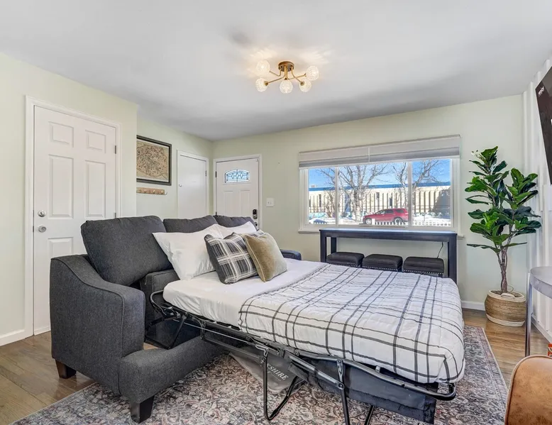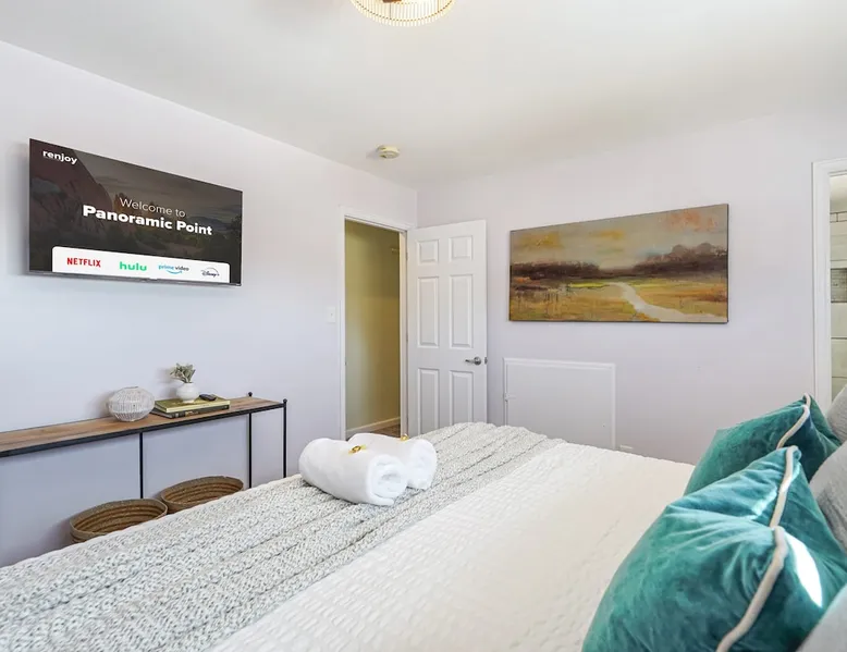 Welcome to Panoramic Point! Stay in the heart of Colorado Springs in this 3-bedroom, 2-bathroom upper-level unit, offering comfort and convenience! 🏙️ Mins to downtown shops & restaurants! 🔑 Private entrance w/ seamless self-check-in! 🚗 Free parking on premises! 🚀 Fast WiFi & Smart TVs! 🍽️ Fully-stocked kitchen 👶 Pack-n-play for the tiniest adventurers! All of the convenience is waiting, book now! The space Welcome to this beautifully designed 3-bedroom, 2-bathroom unit on the main and upper levels of a duplex, perfect for families, professionals, or couples. This unit is private, with its own entrance, and offers all the essentials for a comfortable stay. Please note: The basement unit is rented separately and has its own private entry.. 🛋️ Living Room Step into a bright and modern space that immediately puts you at ease. Relax on the comfortable couch while streaming your favorite shows on the large Roku Smart TV. With ample seating, games, and an inviting ambiance, it's the perfect spot for quality time and great conversations. Need extra sleeping arrangements? The couch conveniently transforms into a pull-out sofa bed. 🍳 Kitchen Prepare delicious meals in the spacious, beautifully remodeled kitchen, fully equipped with all the essentials for cooking up a storm. From pots and pans to utensils, colanders, and even kids' dinnerware, everything you need is at your fingertips. Enjoy the convenience of a Keurig for brewing fresh coffee in the mornings, complete with complimentary cream and sugar. 🛏️ Bedroom Setup Bedroom 1: King Master Enjoy a restful night's sleep in the King master bedroom with a Smart TV, white noise machine, and en suite bathroom. Bedroom 2: Queen Bedroom Cozy and inviting, this room features a Queen bed and a spacious closet for your belongings. Bedroom 3: Queen Bedroom Another comfortable Queen bed awaits in this serene space, perfect for a good night's sleep. 🛁 Bathroom Upstairs, discover a sparkling clean bathroom with a bathtub/shower combo, stocked with shampoo, conditioner, body wash, hair dryer, and plush towels. Note: When the downstairs unit is booked, noise may be present on this level. To ensure your comfort, we provide box fans and white noise machines in the bedrooms. Guest access 🔑 During your stay, you will have access to the entire upper unit from the main entrance of the house! The basement is rented out separately with their own private entry. If the downstairs unit is booked, it may be noisy on this level. Please take a look at the photos for details on this unit! Other things to note 📜 Rental Agreement: For a seamless booking experience, a Rental Agreement is required for all reservations. Once your reservation is confirmed, we’ll provide details for completing the agreement. 🔑 Check-In Process: For a seamless check-in experience, your unique code along with your check-in instructions will be updated into your personalized guidebook on the morning of your arrival. You’ll use this code for entry. ☕ Starter Supply: We’ve prepared a starter supply that includes paper towels, coffee K-cups, toilet paper, shampoo, body wash, and plush white towels! We hope these amenities add an extra touch of comfort to your stay. ⏰ Unauthorized Late Checkout Fee: $20 Per Half Hour Late 💵 Additional Fees: Optional services, including early check-in, late check-out, and additional guests, can be arranged upon request and are subject to availability. These additional fees help cover the cost of reworking the schedule or adding an additional cleaner if needed. Please message us ahead of time for pricing and availability. 🚪 Please Note: This is the main level and upstairs unit. The basement is rented out separately with its own private entry! 🚭 House Rules: No pets, no parties, and no smoking anything inside. 🚗 Parking: We have plenty of free street parking right out front, as well as 1 specific driveway parking spot for your use. You'll also notice a park just a minute walk away!