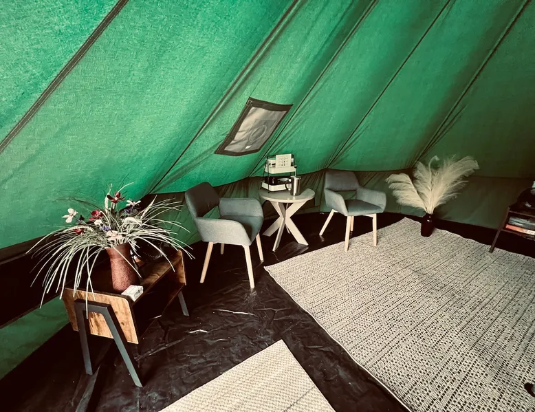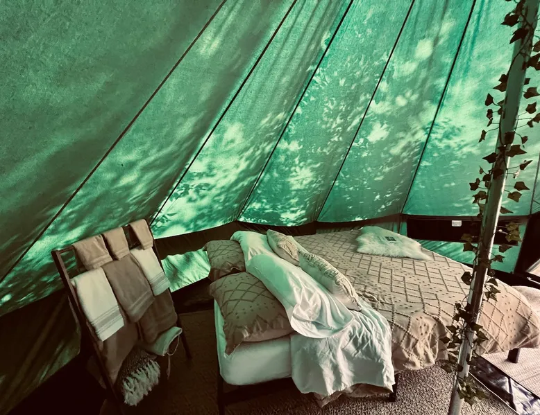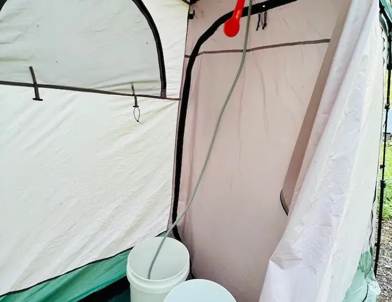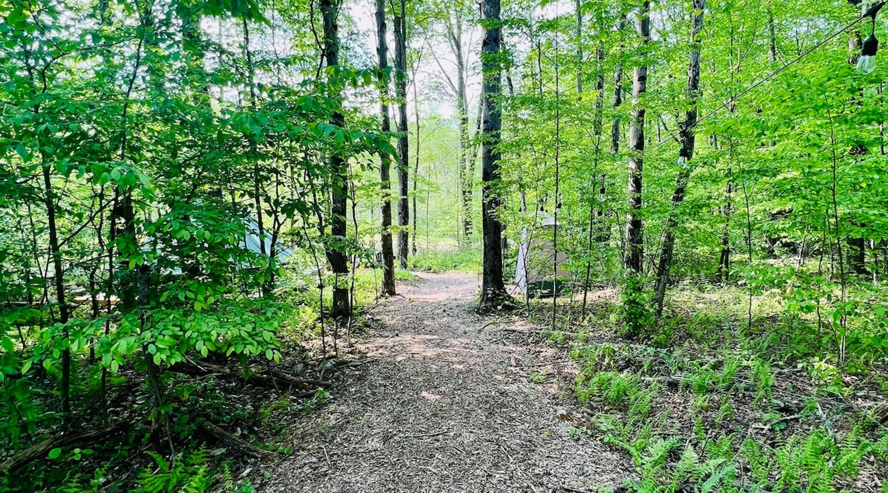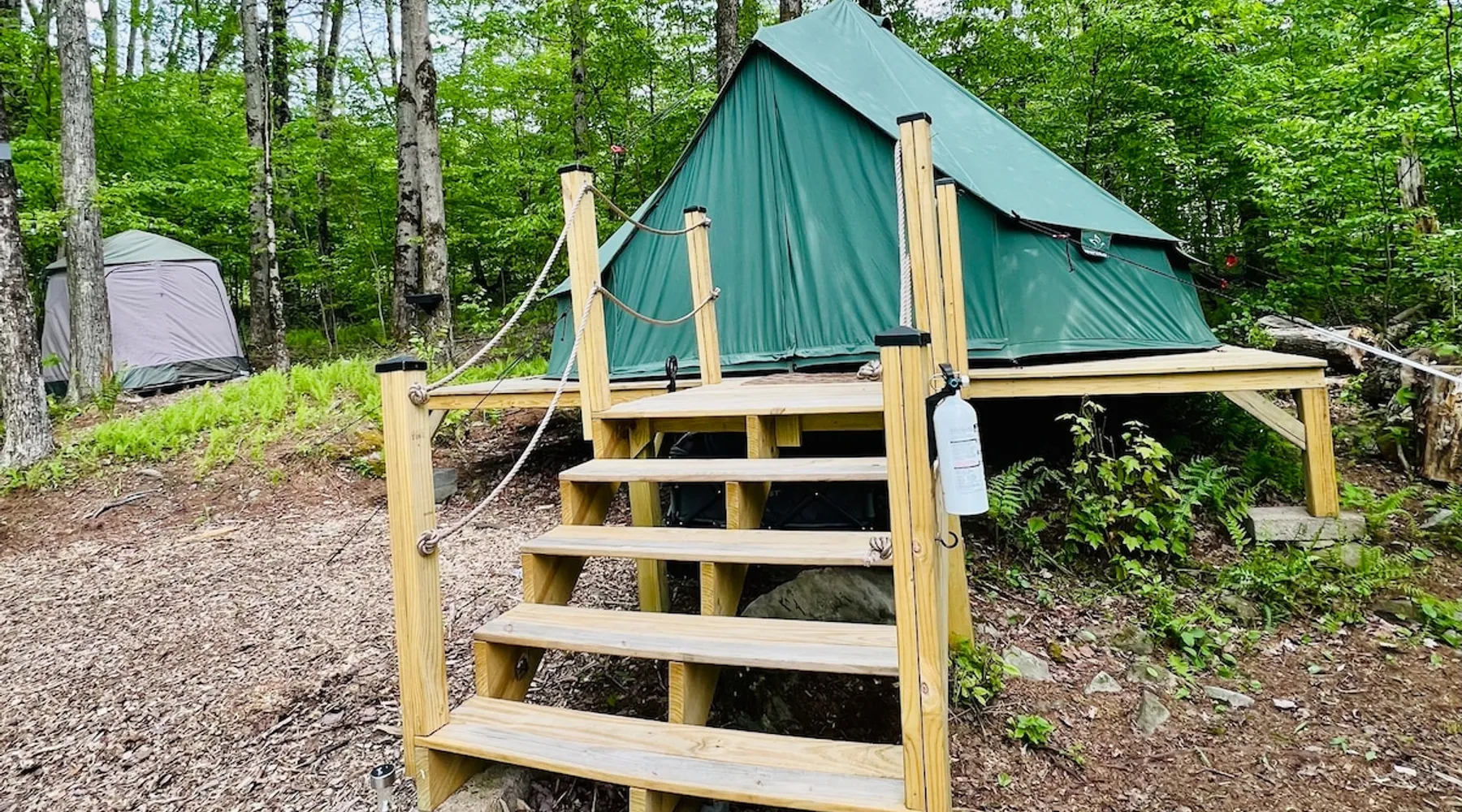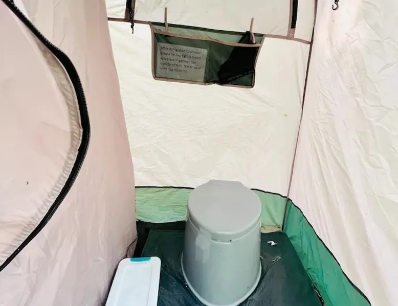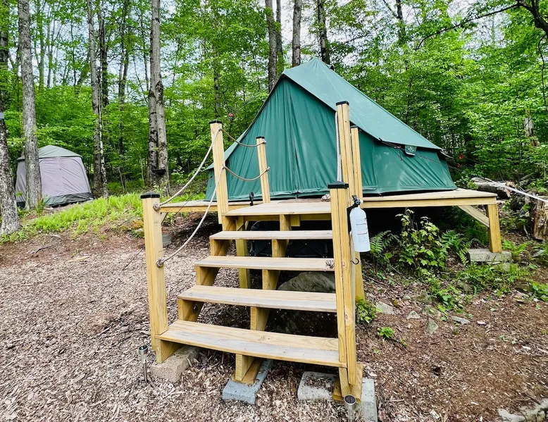 Site 2: Enjoy the sounds of nature in historic Honesdale while drifting off to sleep in your queen sized memory foam bed. Fuel up with coffee from your French press before spending the day reconnecting with nature on our 10acres. After a fun filled day grill up some dinner and cozy up under the stars next to a fire. Perfect for a couple or family retreat. Enough room for kids to bring their own sleeping bags or a 1 person cot available upon request; no bedding supplied.foe the cot. The space Pocono mountain retreat with babbling Brook and pond. Guest access Our sites are off grid. We do not have electricity, Wi-Fi or modern plumbing. We do offer rustic toilets and showers, portable cell phone chargers, lamps and fans. This gives you the opportunity to unplug, relax and fully immerse yourself into nature. Other things to note There is spotty cell service, I would suggest downloading maps before arriving. We provide a wagon for your convenience to carry your items from your car to your site. We also have firewood for sale in the box located on the side of the shed in the main parking area. Toilet’s: Every site has their own rustic camp toilet. To use line the toilet with the waste bag provided; after doing your business tie up the bag and place in outdoor trash can. Showers: Every site has a rustic outdoor shower. We provide two 5 gallon buckets and a shower system that sucks the water out of the buckets. We also provide a cooking pot to heat your water to your liking on the Blackstone. This should be enough for multiple conservative showers. Pets must be kept leashed with you at all times. Please bring your own pet waste bags to clean up after them. Absolutely no smoking or vaping inside of tents. No swimming. Please make sure fires are completely out before leaving/sleeping. Have a great time!