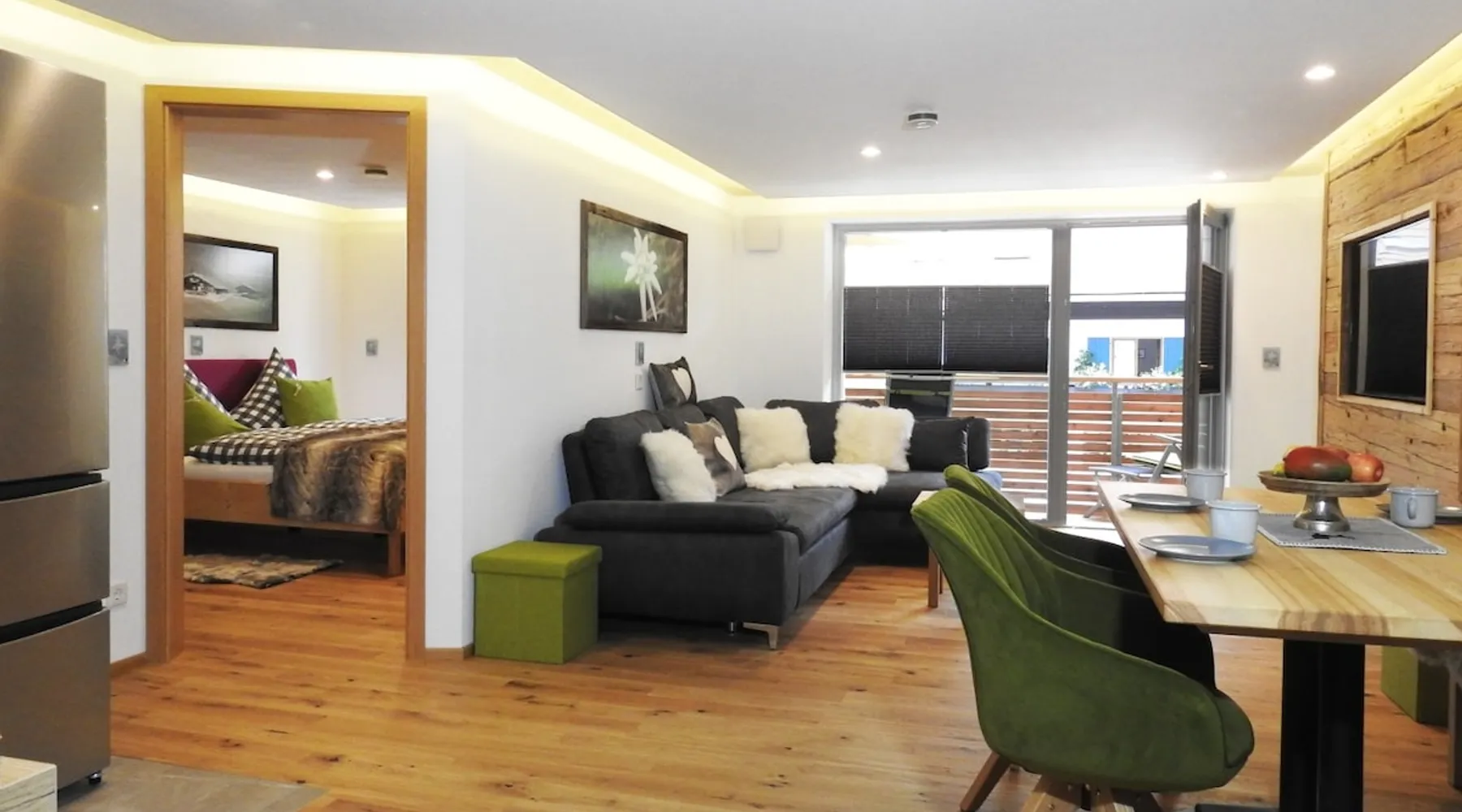 New apartment with lots of comfort, consisting of two separate Bedrooms (1 x double bed/ 2 x single bed), each with access to a private bathroom. In the living room there is a large corner sofa with additional sleeping function (5th person). Balcony accessible via living room and bedroom. The bedrooms as well as the living room are equipped with a flat screen. With FBHeating, Free streaming service Netflix available. Underground parking space on request! The space The Leos Alpenblume including summer mountain railway ticket in Oberstdorf in Bavaria offers accommodation with free Wi-Fi and free parking. The units come with parquet floors, fully equipped kitchen with dishwasher, flat-screen TV with streaming services, and en-suite bathroom with walk-in shower and hairdryer. An oven, a microwave, a toaster, a coffee maker and a kettle are also available. Close to the apartment you can ski and bike or relax on the sun terrace/balcony. Guest access Apartment with 2 bedrooms, 2 bathrooms, a fully equipped kitchen, a spacious living and dining area, free streaming Netflix and a balcony with mountain views. Other things to note Apartment size 69sqm