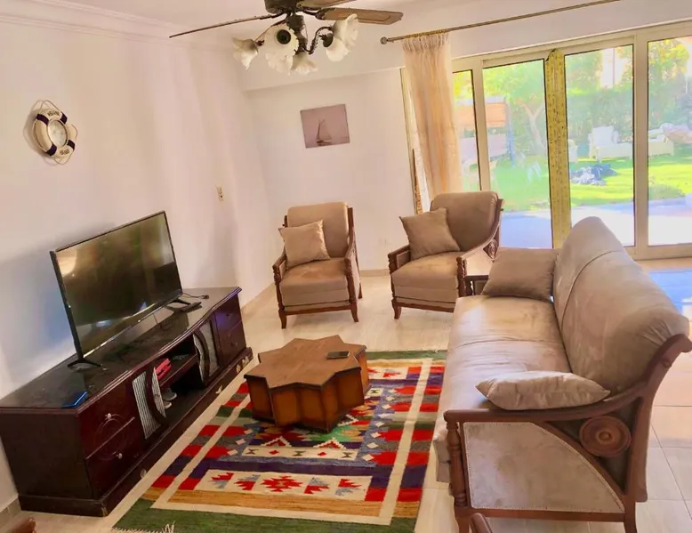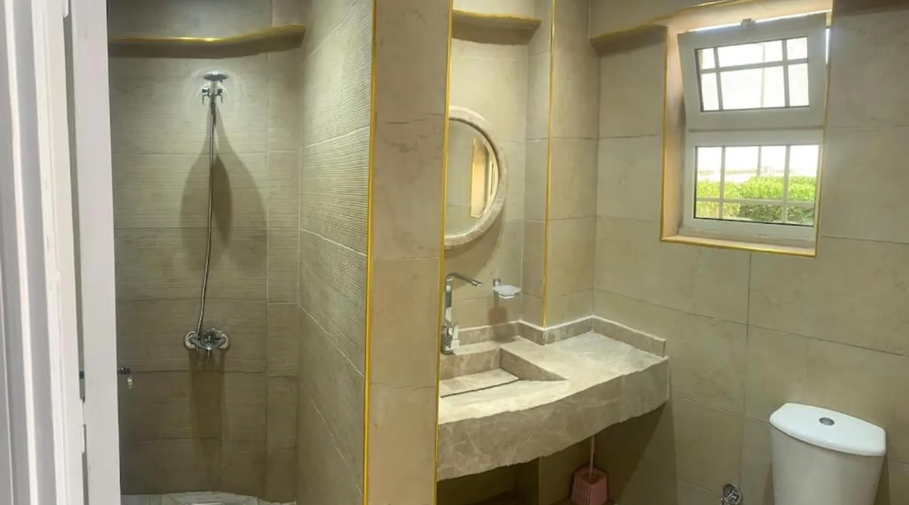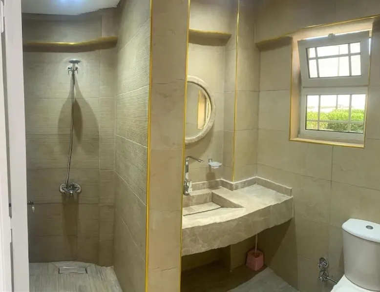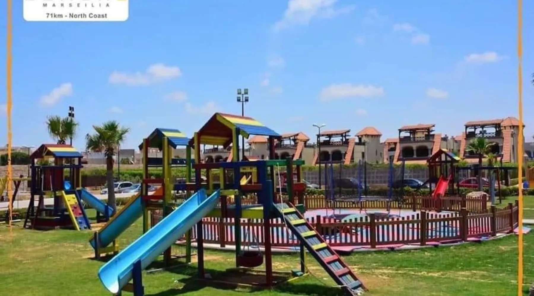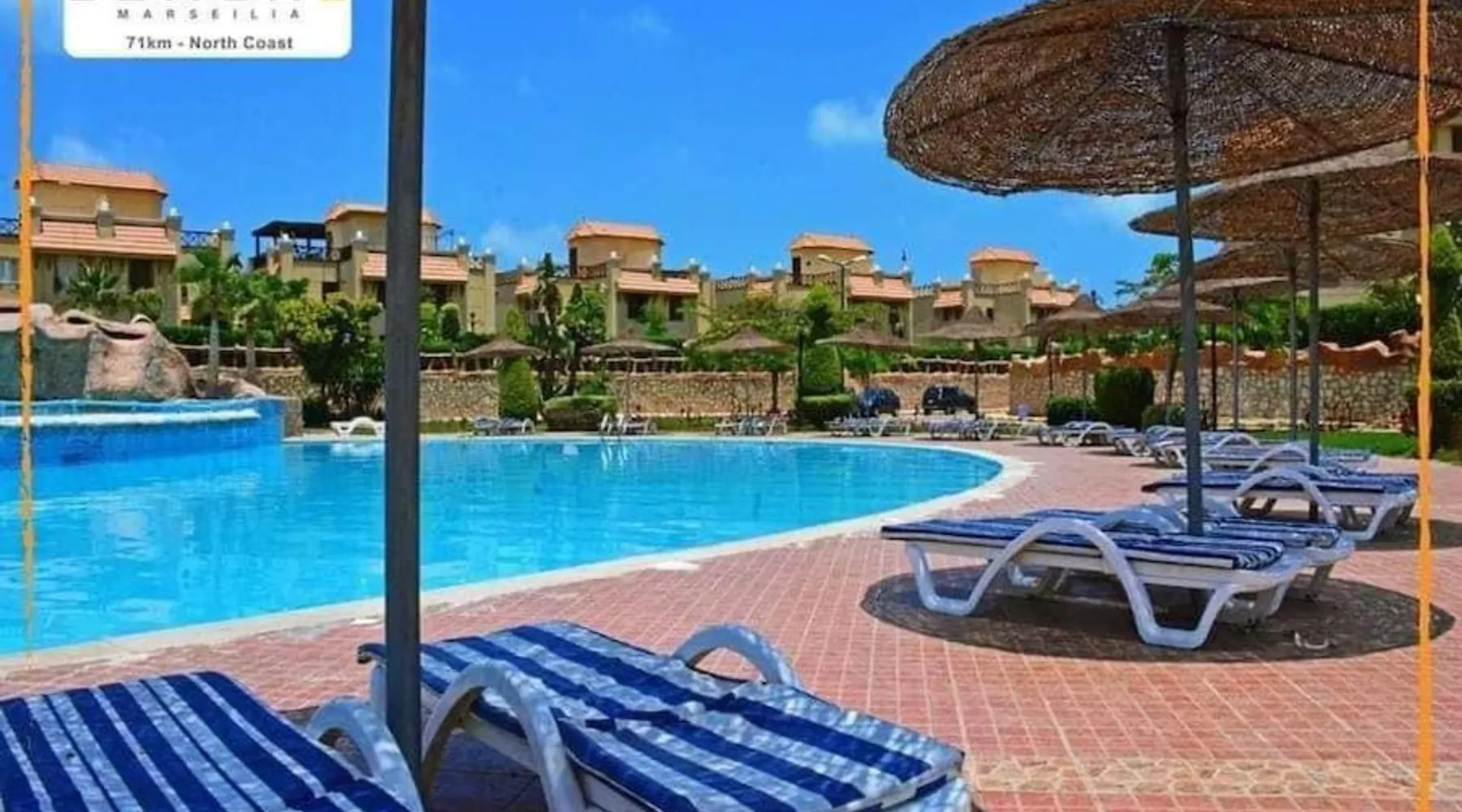 Spacious Accommodations: Twin house Marseilia beach 3 north coast with golf car in El Alamein offers a spacious villa with three bedrooms and three bathrooms. The property features a private beach area, sun terrace, and a lush garden. Modern Amenities: Guests enjoy air-conditioning, a hot tub, balcony, and a fully equipped kitchen with a dining area. Additional facilities include a lounge, shared kitchen, family rooms, room service, children's playground, and bike hire. Convenient Location: Located 35 mi from Borg el Arab International Airport, the villa is 19 mi from Porto Marina. Activities available include fishing and walking tours. Reception staff speak Arabic and English. This villa's special feature is the hot tub. Featuring 3 bedrooms and 3 bathrooms with a shower, this spacious villa offers a well-fitted kitchen and a terrace. The well-fitted kitchen features a refrigerator, an oven and a microwave. The air-conditioned villa provides a flat-screen TV, a washing machine, a private entrance, a dining area as well as garden views. The unit has 6 beds.