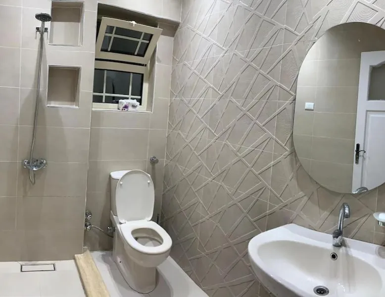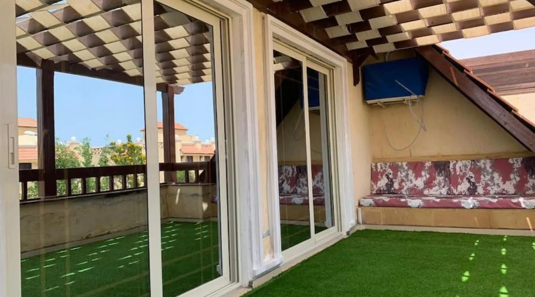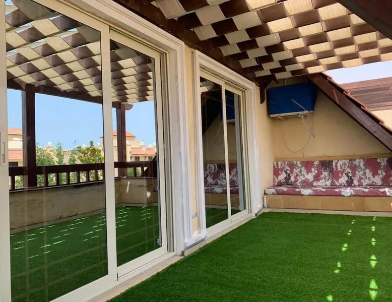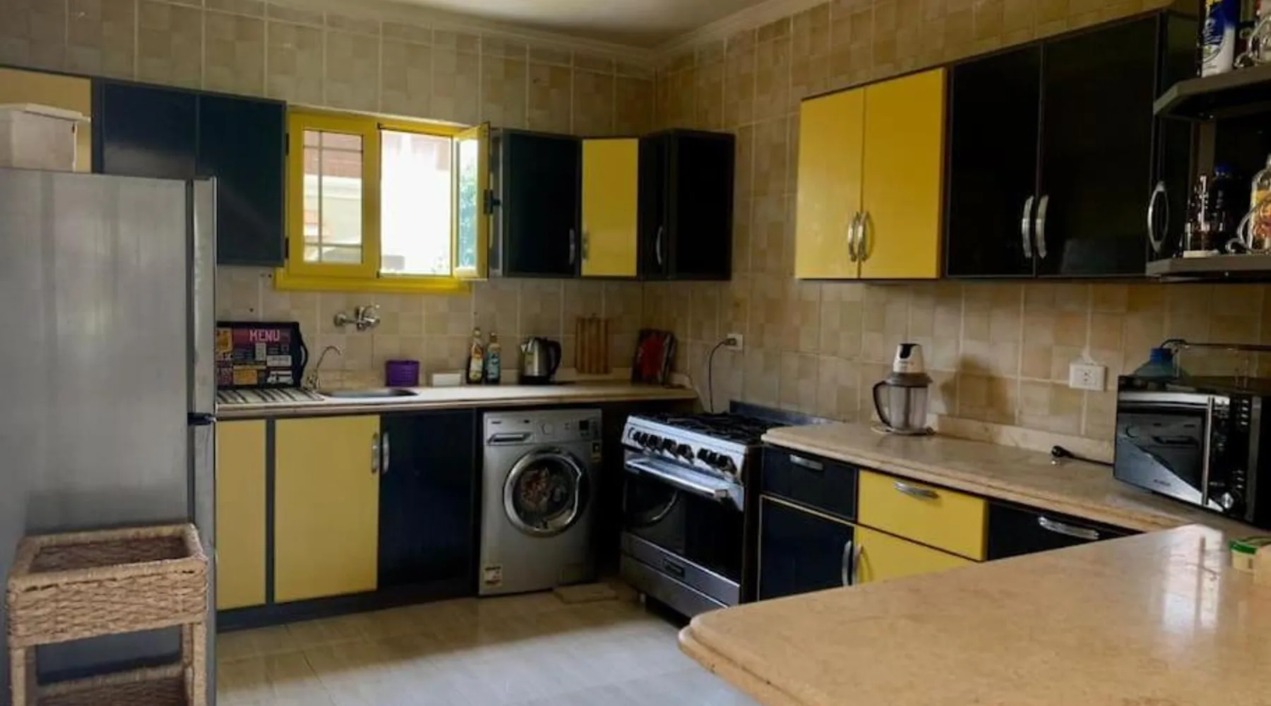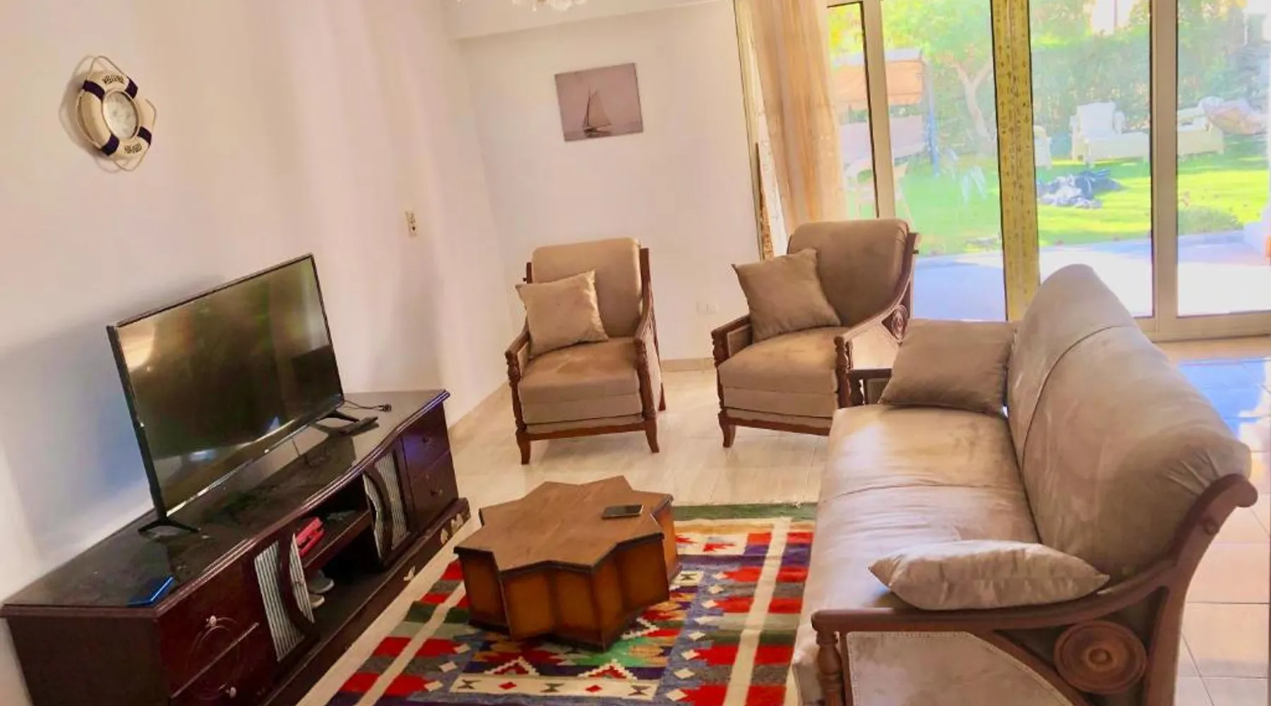 Spacious Accommodations: Twin house Marseilia beach 3 north coast with golf car in El Alamein offers a spacious villa with three bedrooms and three bathrooms. The property features a private beach area, sun terrace, and a lush garden. Modern Amenities: Guests enjoy air-conditioning, a hot tub, balcony, and a fully equipped kitchen with a dining area. Additional facilities include a lounge, shared kitchen, family rooms, room service, children's playground, and bike hire. Convenient Location: Located 35 mi from Borg el Arab International Airport, the villa is 19 mi from Porto Marina. Activities available include fishing and walking tours. Reception staff speak Arabic and English. This villa's special feature is the hot tub. Featuring 3 bedrooms and 3 bathrooms with a shower, this spacious villa offers a well-fitted kitchen and a terrace. The well-fitted kitchen features a refrigerator, an oven and a microwave. The air-conditioned villa provides a flat-screen TV, a washing machine, a private entrance, a dining area as well as garden views. The unit has 6 beds.