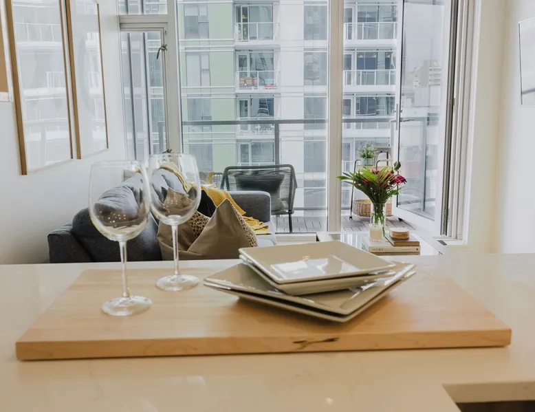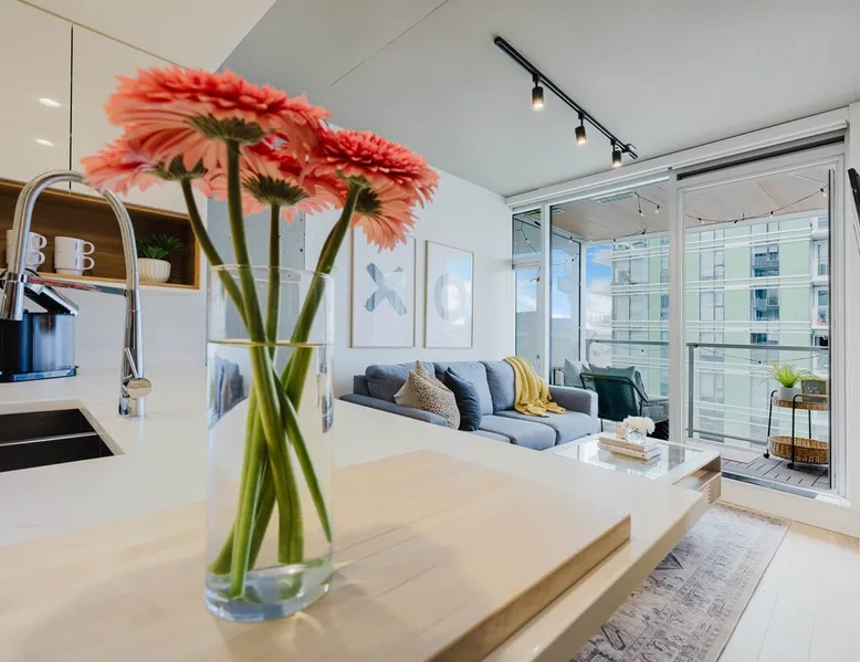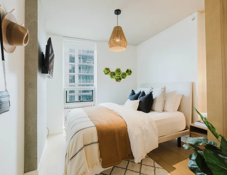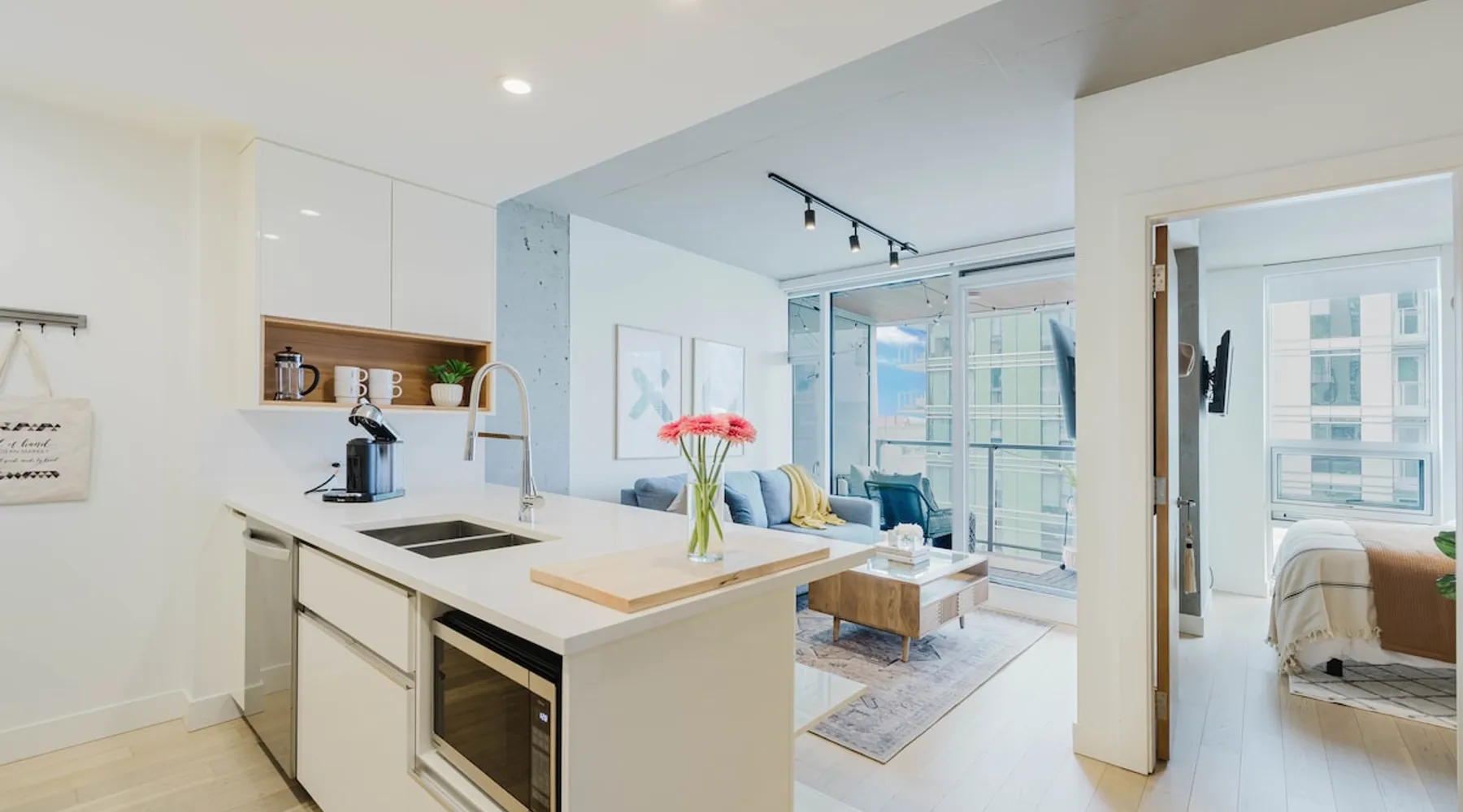 +90 Day Welcome to 989 Johnson. This modern, downtown 1 bed/1 bath condo features custom millwork, premium appliances, underground parking, plentiful storage, private covered balcony and located top level of a steel and concrete building in downtown Victoria BC. Feel at home in a cozy atmosphere with soft linens, spa like bathroom and fully stocked kitchen. Take advantage of the fantastic amenities in the pedestrian friendly Harris Green neighbourhood which features food, shops and more. The space ADDITIONAL LONG TERM DATES AVAILABLE, SEND INQUIRY FOR INFORMATION Feel comfortable and enjoy downtown urban city living at 989 with the following: Great for Travel nurses! Close proximity to Royal Jubilee Hospital and The Summit. Please note: >There is construction in the neighborhood. There will be the possibility of construction noise 7am to 7pm Monday to Friday and 8am to 3pm on Saturdays. There is no construction on Sundays or Civic holidays. ☆As of May 2024 there will be a 90 day minimum for bookings ☆All guests will be required to sign a lease agreement ☆NEW Keypad lock entry for added safety and security -Luggage storage is available for the duration of your stay -Suite located top level of central podium that connects the 2 building towers, nobody above you. *See labelled picture for clarification Please note, this unit is not top floor of the building. -Open concept layout with warm oak engineered hardwood floors -Timeless, modern urban living with raw concrete accents add to a contemporary design providing a unique city feel -Newer steel and concrete building for improved sound damping allowing for a quiet and peaceful stay -Modern bathroom with wrap around tile -Deep soaker tub and luxurious rain shower head -Automatic under cabinet vanity lights -Local made toiletries (shampoo, handsoap, conditioner, bodywash, lotion, bubble bath) -Extra towels -Brand new dishwasher (March 2024) -Brand new Electrolux washtower(August 2024) -Brand new Inverter Microwave (February 2025) -Stunning dual tone kitchen with custom millwork and plentiful storage -Large double sink with pull out storage underneath -Chef inspired appliance package including a 30 inch induction cooktop and convection oven -Plates, bowls, cups, mugs, wine glasses, cooking essentials, pots, and frying pans -Cooking/baking essentials, baking pans, measuring cups/spoons -Bonus small appliances, rice cooker, blender, coffee grinder, toaster, air fryer and hot milk frother -Air tight food storage containers for pantry -Choice of nespresso coffee machine or french press -Nespresso pods or local coffee beans (starter pack) -kitchen basics (salt, pepper, spices, oil and vinegar) -In-suite Electrolux wash tower -Iron and ironing board -Local made cleaning supplies -Vacuum Cleaner and Wet sweeper broom -Essentials starter pack (laundry detergent, dishwasher detergent, toilet paper, paper towels, garbage/compost bags) -Queen bed with quality mattress, fresh linens, extra pillows and spare blankets -Custom smart closet with hanging storage along with a pull out jewelry/accessory drawer and pant hanger rack -Wall mounted hooks for additional storage -High end mango wood nightstand -iHome power alarm clock with bluetooth speaker and 2 usb charging ports -Hand held clothes steamer -Blackout roller blinds -Large quartz island with high end stools provide a great option for use as a desk -2 Smart TV's perfect for personal streaming apps -Free high speed internet -Modern comfortable sofa and coffee table with storage -Floor to ceiling windows that lead out onto a private, furnished north facing balcony with pot lights -Safety measures including carbon monoxide detector, fire extinguisher, first aid kit and deadbolt lock on the front door. -Secure FOB entry for courtyard, Lobby and elevator. -Fitness Forge gym located within the main courtyard/front entrance. Discounted gym rates available for residents ask your host for details. City of Victoria business Licence Number: 00042540 Guest access Guests will have access to the following: -Entire suite including private covered, furnished balcony -Secure, dedicated parking stall along with guest parking Common Areas: -Recycling and Garbage room located courtyard level -Main entry and courtyard on ground level -Outdoor bike racks located on courtyard level - Yoga deck located courtyard level Other things to note -Smoking of any kind is not permitted anywhere on the property or common areas -There is shared secure bike storage that is available however is it not guaranteed due to limited spots being available on a first come first serve basis -1 dog allowed (no weight limit) -2 adults maximum occupancy