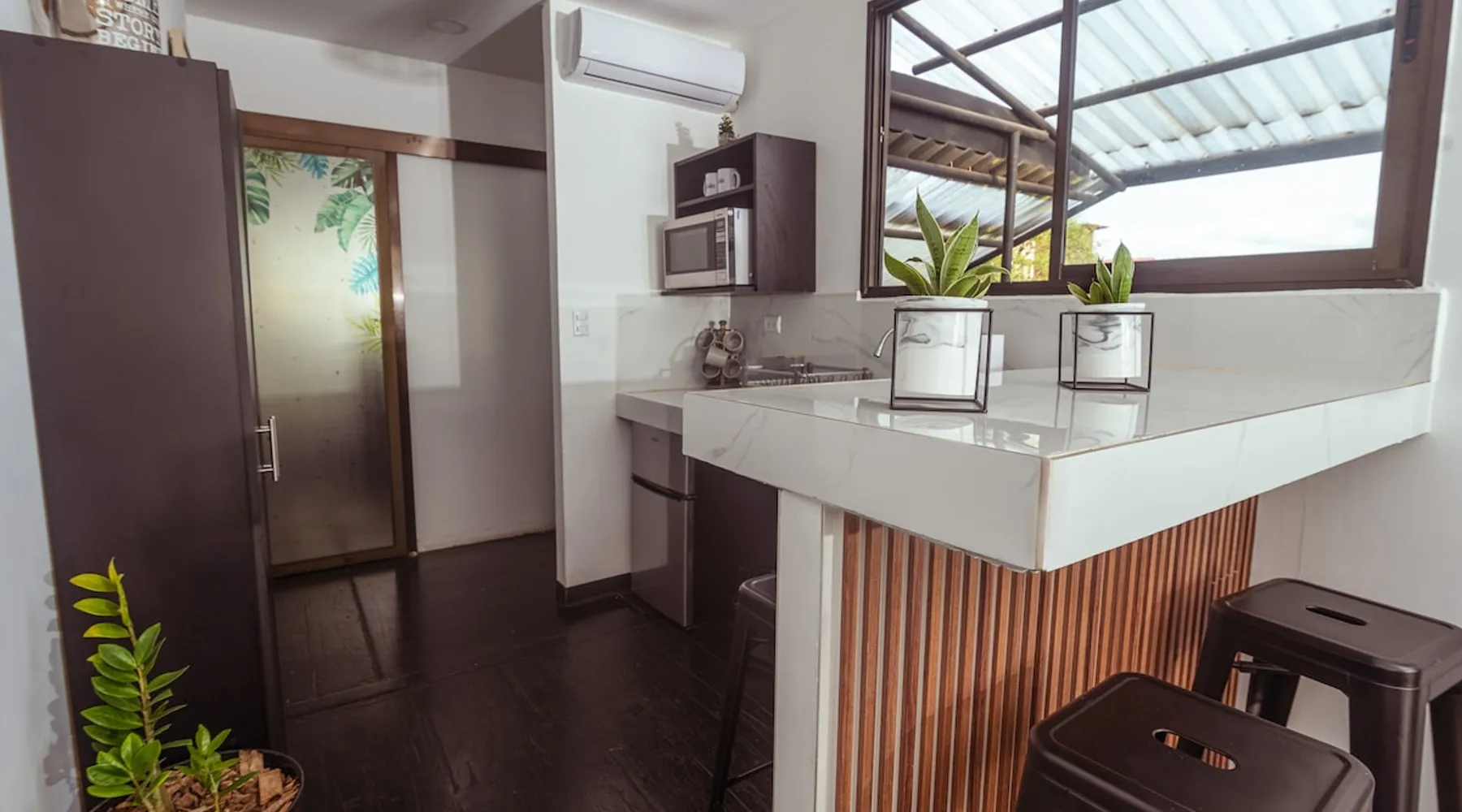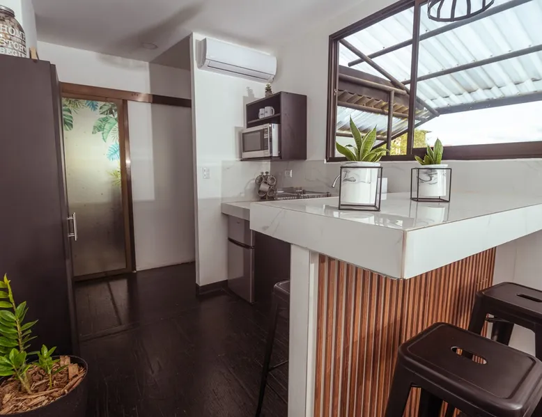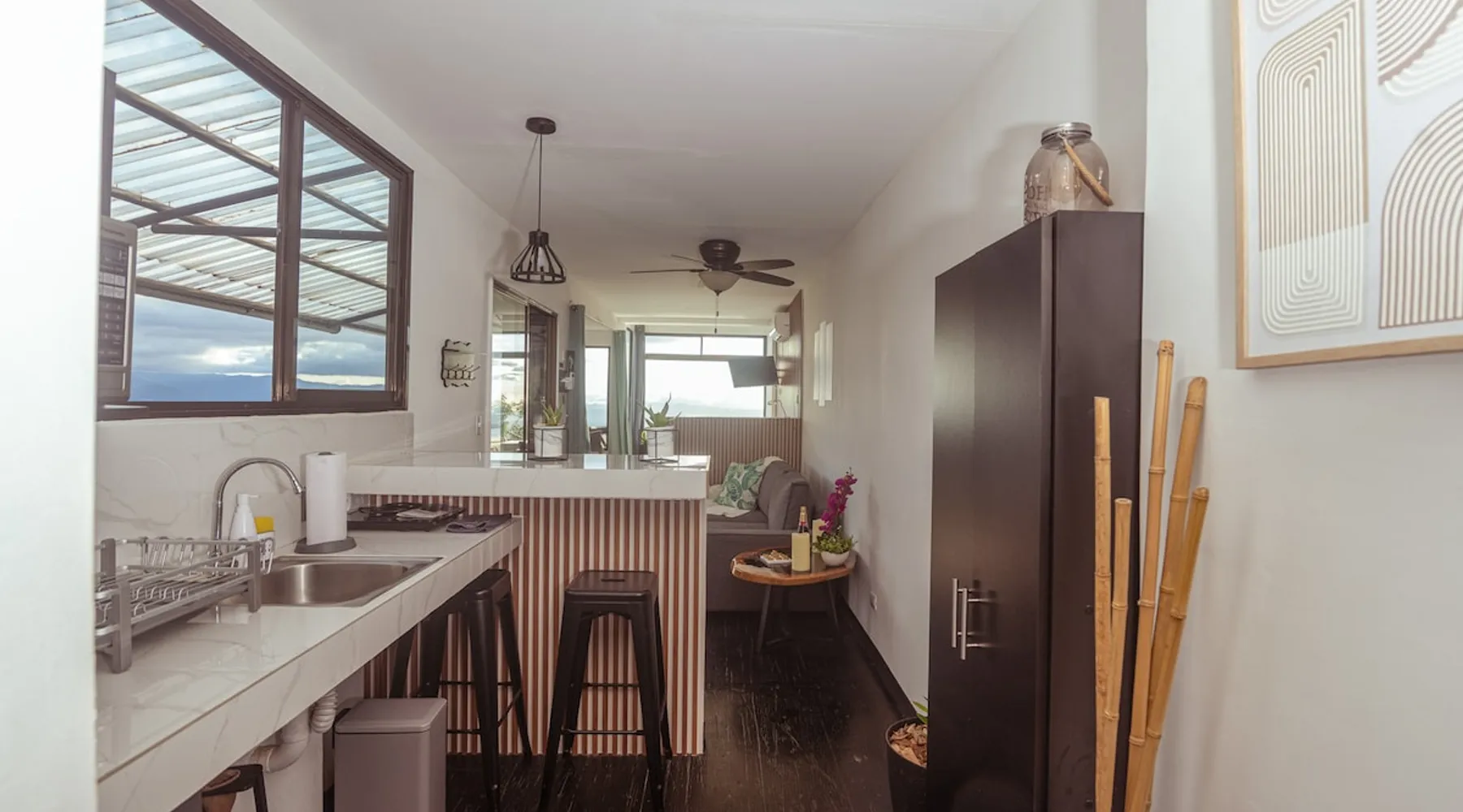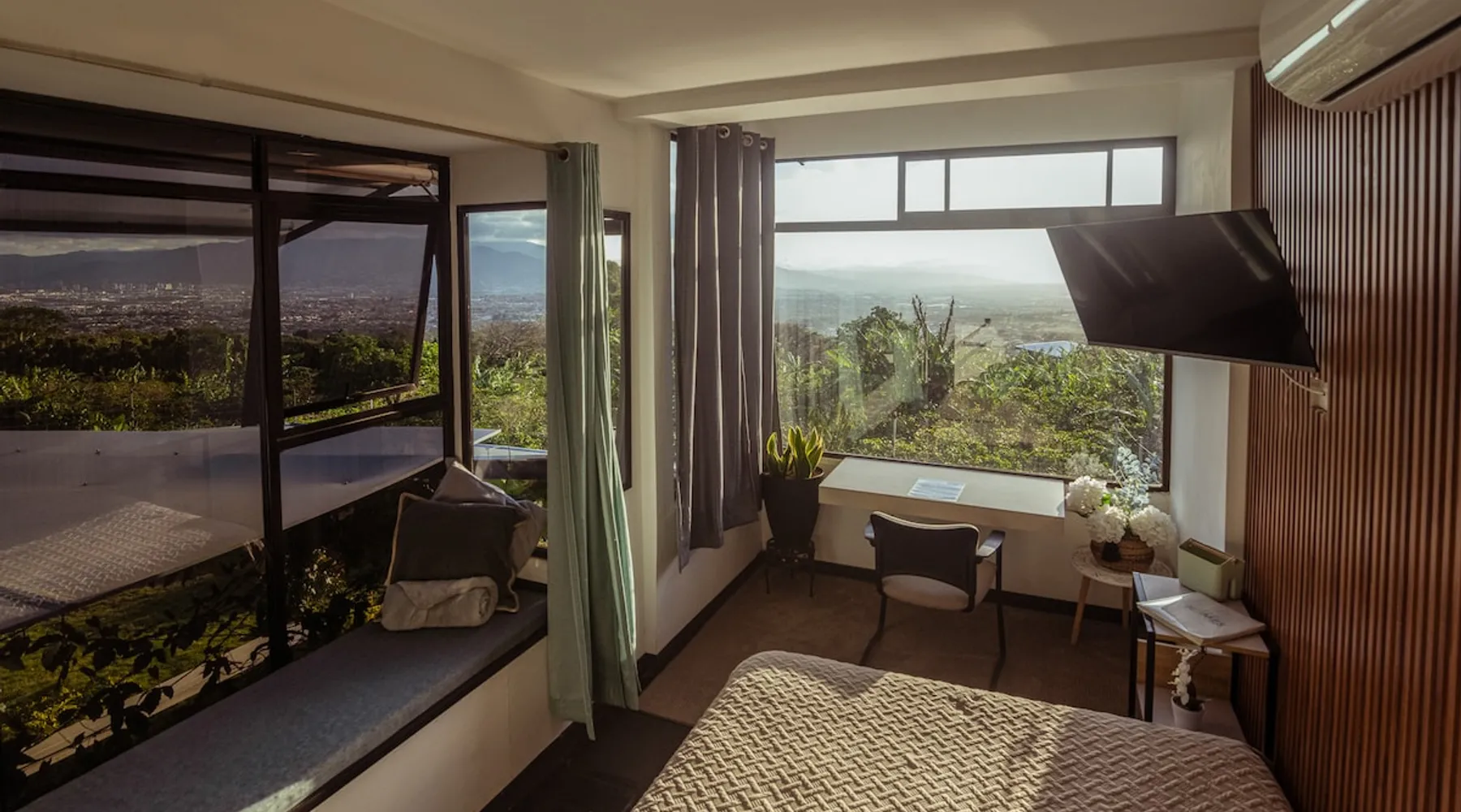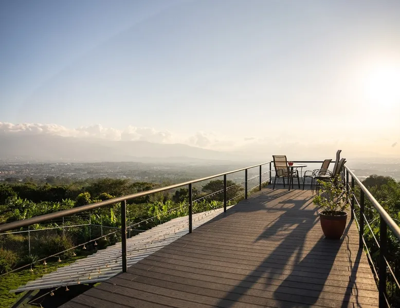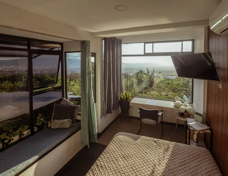 Due to its spectacular views, you will not forget your stay in this romantic and memorable place. At Dream Homes Vacaciones we hope that you have plenty of reasons to be happy. To achieve this we have created a cozy, relaxing, private and homely environment. Just 10 minutes from downtown Heredia you can enjoy your perfect plan, with the comforts of the city, in a magical atmosphere that will make you sigh with its dream views. May your favorite color always be a beautiful sunset 🤩 The space It is a large private space, very cozy with spectacular views of the Central Valley from its 3rd floor. On the 2nd floor is the container house designed with unique details and built with all the comforts of excellent accommodation. From anywhere you can admire and relax with the sound of the birds and the tranquility that this space offers. Guest access It has a large green area where you can use the campfire, the hammock, listen to the sound of the birds and see a wide variety of plants that you can also use for a delicious tea. Other things to note Sunset is between 04:30 pm - 06:00 pm