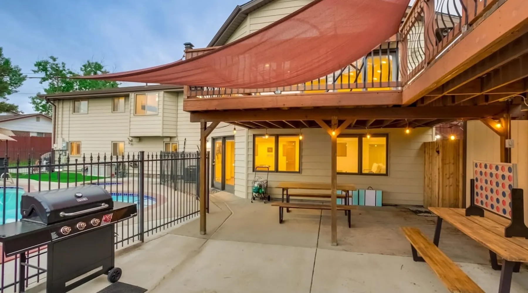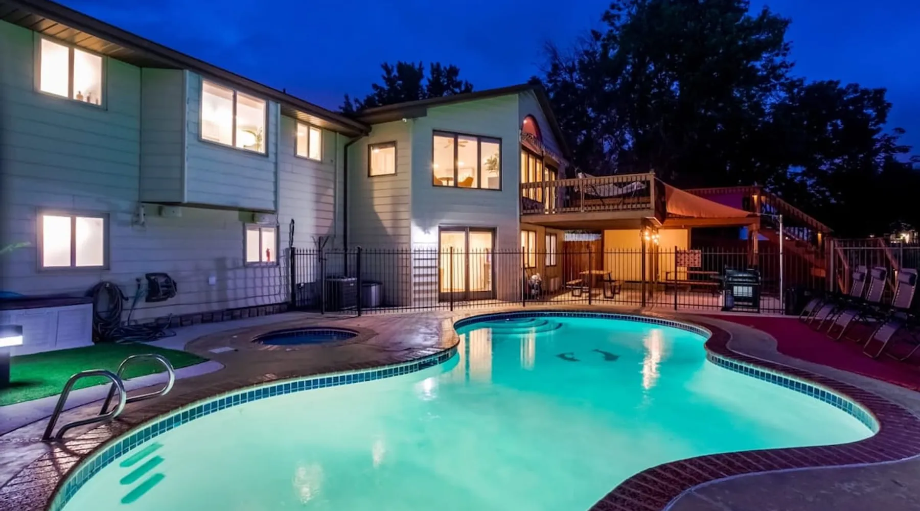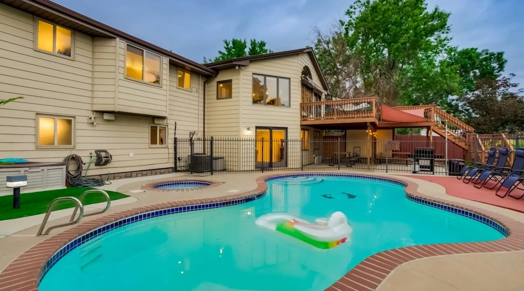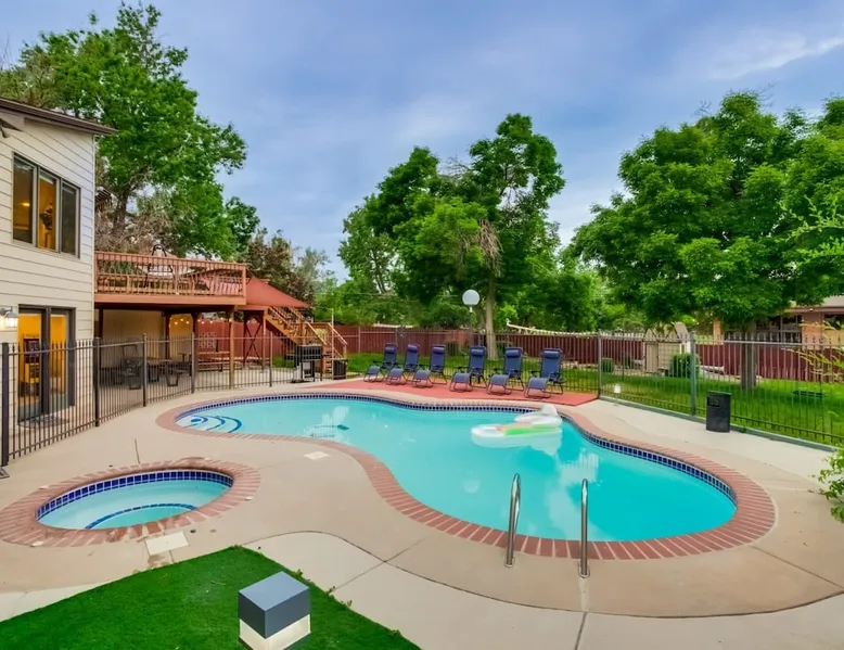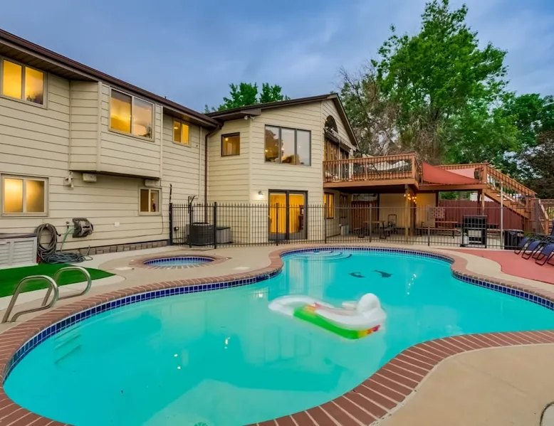 The Backyard Oasis is a bountiful home located on the edge of Arvada and Westminster, 20 minutes from Denver and 30 minutes from Boulder, we are focused on bringing together families through a quality space, a clean environment, and all that Arvada has to offer. The kitchen is fully stocked, there is more than enough room for everyone, brand new appliances, and every room was designed to make your stay as fun as it is comfortable. Fun, privacy, comfort, and space are what you will find here. The space ☆☆ BEDROOMS ☆☆ This home has 5 bedrooms and can accommodate up to 10 guests comfortably. There are a total of 3 Queen Beds and 4 twin beds Bedroom 1 - The stylish master bedroom with a comfortable Queen size bed and ample closet space is upstairs. Bedroom 2 – A large and beautiful bedroom offering a Queen bed and stylish design. Bedroom 3 – Queen size bed featured in this upstairs bedroom conveniently located near the entrance. Bedroom 4 – A comfortable room with a full size mirror and a double twin bed. Bedroom 5 - Located next the game room and includes the office space with a double twin bed set. ☆☆ BATHROOMS ☆☆ You'll find three clean and fully stocked bathrooms with bright lighting, large mirrors, and hotel-grade towels in this home. You'll find one walk-in shower, one bathtub/shower combo and a half bath. All showers are stocked with shampoo, conditioner, and body wash for your group's needs. ☆☆ KITCHEN & LOUNGE ☆☆ Prepare a quick snack or a large feast in the fully stocked kitchen. It features beautiful countertops and modern appliances, including a refrigerator, stove, oven, microwave, toaster, and coffee maker. The open-plan setting offers an unobstructed view out into both the living and dining areas. The space is perfect for enjoying a meal with your group and guests all together comfortably hosting a large group to enjoy time together! The room flows effortlessly into the spacious lounge, which is complete with plenty of couches and large windows letting in a lot of light. Plenty of great hangout spots throughout the house as well including 3 living rooms, a game room, a bar nook, and the outdoor space. Whether you want to open up your laptop to plan adventures for the day, host a dinner party, or just want to take things easy, this open concept living room gives you all the space you need. ☆☆ OUTSIDE SPACE ☆☆ The house includes plenty of outdoor seating, a grill, a hammock, a volleyball net, a small pool, and best of all a large and amazing pool. Light up the BBQ and enjoy the famous CO weather all together! There is ample parking in the driveway, garage, and on the street for up to 3 vehicles. **The pool will be open June until September 30th, weather permitting** KEY AMENITIES: ☀ 5 bedrooms – 7 Beds; 3 Queens, 2 sets of double twins ☀ 2.5 bathrooms; Walk-in shower and shower/tub combo ☀ 3 living rooms ☀ Game Room with Foosball + Arcade Machine ☀ Modern and socially designed living room lounge ☀ Outdoor Patio ☀ Hammock + Grill + Volleyball + Swing ☀ Large pool plus second, adjoining small pool (no hot tub) ☀ Large, efficient, washer/dryer ☀ 2 Bar areas ☀ 60” Smart TV upstairs ☀ 55” Smart TV downstairs ☀ Easy and simple automatic, self-check in process ☀ Room darkening curtains in all bedrooms ☀ For Children: Pack & Play, Changing Table. Experience Arvada with us & learn more below! Guest access You’ll have access to every room and feature of this home except the owner's closet. Make yourself at home; your hosts are just a phone call or text away if you have any questions or want recommendations for things to do nearby. There is a keypad on the front door for easy and secure access to the home. Other things to note ☆☆ IMPORTANT ☆☆ - This home includes a heated main pool and a side pool. The home does not include a hot tub. - Pool and small pool are closed for the Winter Months (October 20th - June 1st) - We have a NO PARTY Policy along with quiet hour and noise rules that are essential to respecting our neighbors. This home is in a residential area and being respectful to the neighbors is very important. Parties ad excessive noisy will be shut down, and possibly incur civil prosecution. If you are unsure if your group fits this description, please reach out to ask and we will be happy to help. Several days prior to check-in I will send you a link which contains an e-manual. In this manual you will find all necessary and relevant information relating to your stay. I have also included my suggestions for the best things to do around Denver, my favorite restaurants, hikes, nightlife, and much more! Please note that we have installed cameras outside of the property for safety purposes. There are no cameras inside of the property. There is noise detection software installed on the inside of the home. This device CANNOT record or hear anything that is said, its function is to alert us if noise above a certain decibel level is reached. Please note that smoking of any kind is forbidden inside and will result in a minimum fine of $1000. You are welcome to step on to the back patio and enjoy. Reservations may be subject to extra guest fees, as well as additional charges for optional services such as adding pets or requesting early check-ins. Once a week, one of our team members will stop by the property to put out the trash cans and or do the lawn + pool maintenance. They will NOT enter the home. This day may or may not fall during your stay.