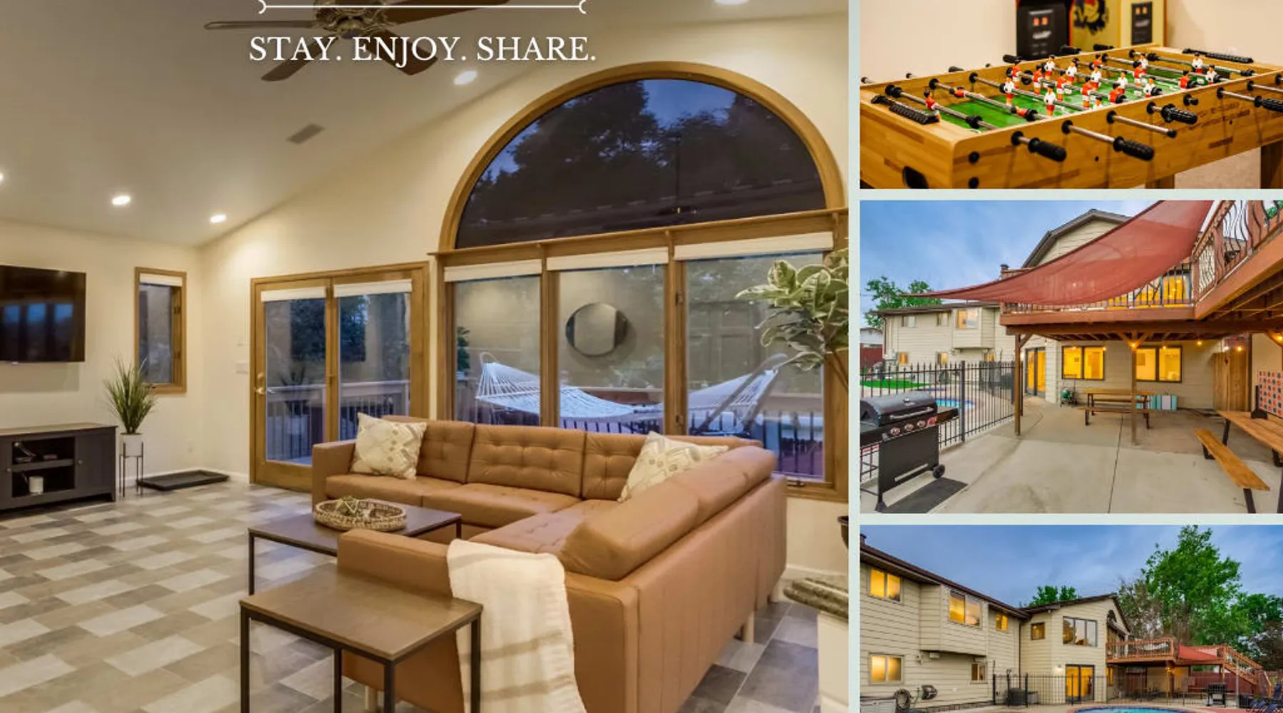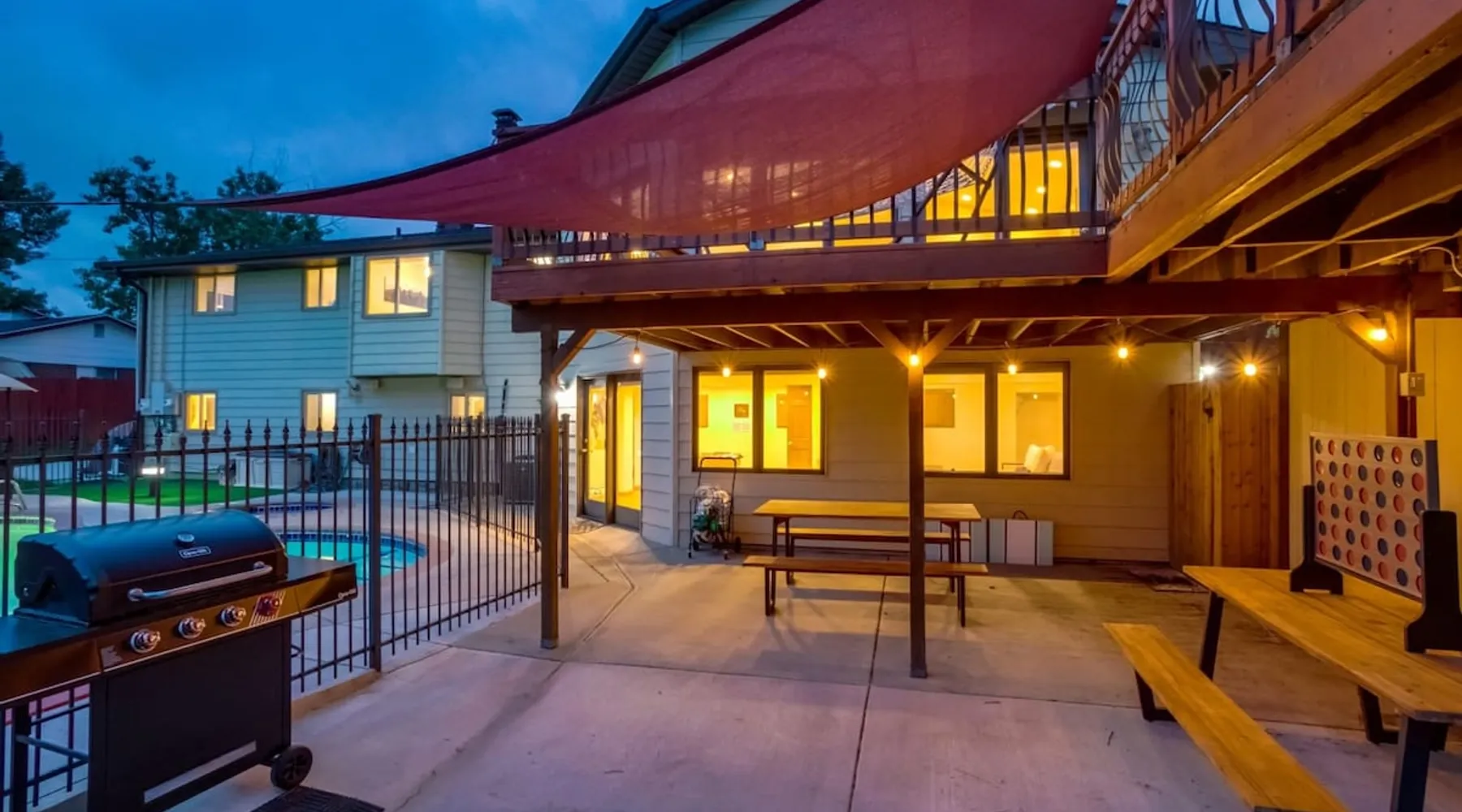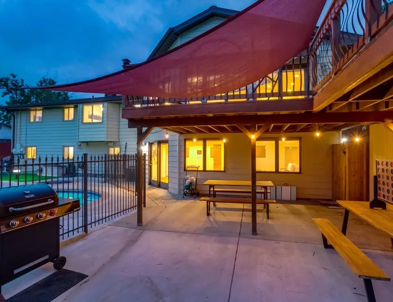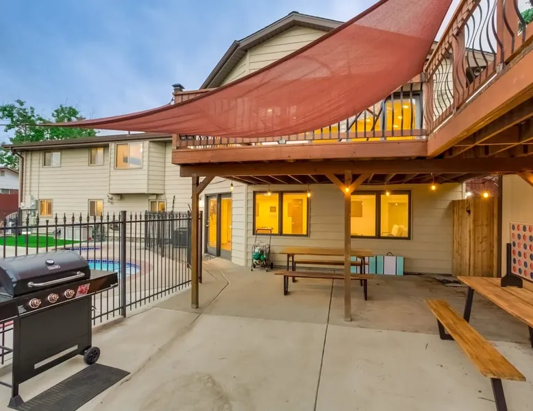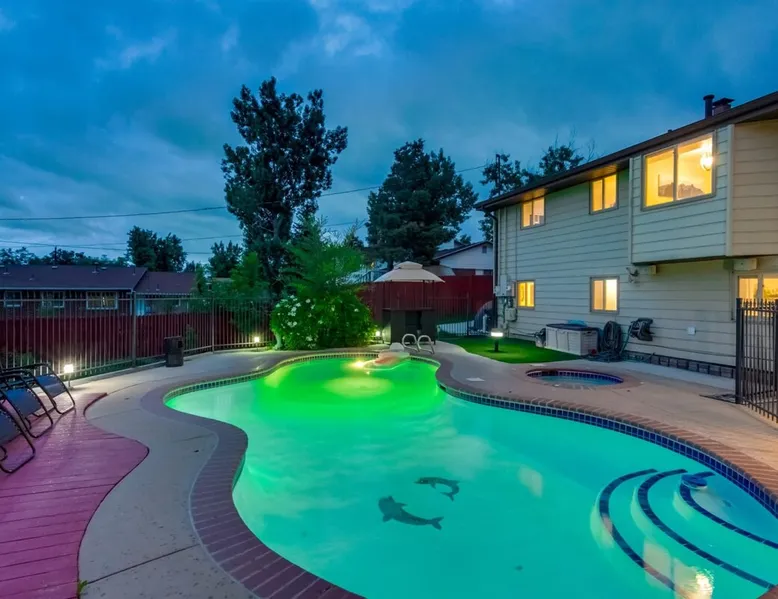 The Backyard Oasis is a bountiful home located on the edge of Arvada and Westminster, 20 minutes from Denver and 30 minutes from Boulder, we are focused on bringing together families through a quality space, a clean environment, and all that Arvada has to offer. The kitchen is fully stocked, there is more than enough room for everyone, brand new appliances, and every room was designed to make your stay as fun as it is comfortable. Fun, privacy, comfort, and space are what you will find here. The space ☆☆ BEDROOMS ☆☆ This home has 5 bedrooms and can accommodate up to 10 guests comfortably. There are a total of 3 Queen Beds and 4 twin beds Bedroom 1 - The stylish master bedroom with a comfortable Queen size bed and ample closet space is upstairs. Bedroom 2 – A large and beautiful bedroom offering a Queen bed and stylish design. Bedroom 3 – Queen size bed featured in this upstairs bedroom conveniently located near the entrance. Bedroom 4 – A comfortable room with a full size mirror and a double twin bed. Bedroom 5 - Located next the game room and includes the office space with a double twin bed set. ☆☆ BATHROOMS ☆☆ You'll find three clean and fully stocked bathrooms with bright lighting, large mirrors, and hotel-grade towels in this home. You'll find one walk-in shower, one bathtub/shower combo and a half bath. All showers are stocked with shampoo, conditioner, and body wash for your group's needs. ☆☆ KITCHEN & LOUNGE ☆☆ Prepare a quick snack or a large feast in the fully stocked kitchen. It features beautiful countertops and modern appliances, including a refrigerator, stove, oven, microwave, toaster, and coffee maker. The open-plan setting offers an unobstructed view out into both the living and dining areas. The space is perfect for enjoying a meal with your group and guests all together comfortably hosting a large group to enjoy time together! The room flows effortlessly into the spacious lounge, which is complete with plenty of couches and large windows letting in a lot of light. Plenty of great hangout spots throughout the house as well including 3 living rooms, a game room, a bar nook, and the outdoor space. Whether you want to open up your laptop to plan adventures for the day, host a dinner party, or just want to take things easy, this open concept living room gives you all the space you need. ☆☆ OUTSIDE SPACE ☆☆ The house includes plenty of outdoor seating, a grill, a hammock, a volleyball net, a small pool, and best of all a large and amazing pool. Light up the BBQ and enjoy the famous CO weather all together! There is ample parking in the driveway, garage, and on the street for up to 3 vehicles. **The pool will be open June until September 30th, weather permitting** KEY AMENITIES: ☀ 5 bedrooms – 7 Beds; 3 Queens, 2 sets of double twins ☀ 2.5 bathrooms; Walk-in shower and shower/tub combo ☀ 3 living rooms ☀ Game Room with Foosball + Arcade Machine ☀ Modern and socially designed living room lounge ☀ Outdoor Patio ☀ Hammock + Grill + Volleyball + Swing ☀ Large pool plus second, adjoining small pool (no hot tub) ☀ Large, efficient, washer/dryer ☀ 2 Bar areas ☀ 60” Smart TV upstairs ☀ 55” Smart TV downstairs ☀ Easy and simple automatic, self-check in process ☀ Room darkening curtains in all bedrooms ☀ For Children: Pack & Play, Changing Table. Experience Arvada with us & learn more below! Guest access You’ll have access to every room and feature of this home except the owner's closet. Make yourself at home; your hosts are just a phone call or text away if you have any questions or want recommendations for things to do nearby. There is a keypad on the front door for easy and secure access to the home. Other things to note ☆☆ IMPORTANT ☆☆ - This home includes a heated main pool and a side pool. The home does not include a hot tub. - Pool and small pool are closed for the Winter Months (October 20th - June 1st) - We have a NO PARTY Policy along with quiet hour and noise rules that are essential to respecting our neighbors. This home is in a residential area and being respectful to the neighbors is very important. Parties ad excessive noisy will be shut down, and possibly incur civil prosecution. If you are unsure if your group fits this description, please reach out to ask and we will be happy to help. Several days prior to check-in I will send you a link which contains an e-manual. In this manual you will find all necessary and relevant information relating to your stay. I have also included my suggestions for the best things to do around Denver, my favorite restaurants, hikes, nightlife, and much more! Please note that we have installed cameras outside of the property for safety purposes. There are no cameras inside of the property. There is noise detection software installed on the inside of the home. This device CANNOT record or hear anything that is said, its function is to alert us if noise above a certain decibel level is reached. Please note that smoking of any kind is forbidden inside and will result in a minimum fine of $1000. You are welcome to step on to the back patio and enjoy. Reservations may be subject to extra guest fees, as well as additional charges for optional services such as adding pets or requesting early check-ins. Once a week, one of our team members will stop by the property to put out the trash cans and or do the lawn + pool maintenance. They will NOT enter the home. This day may or may not fall during your stay.