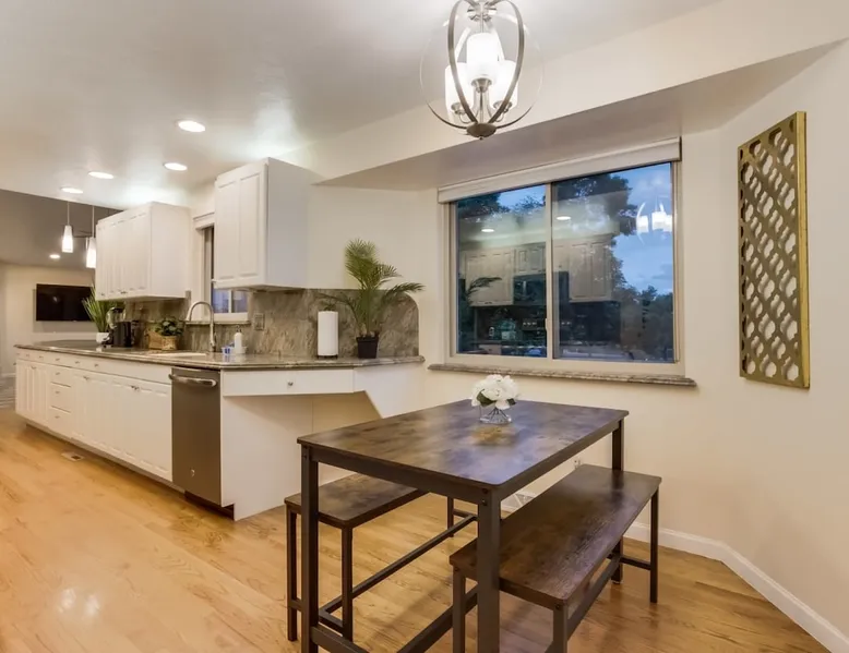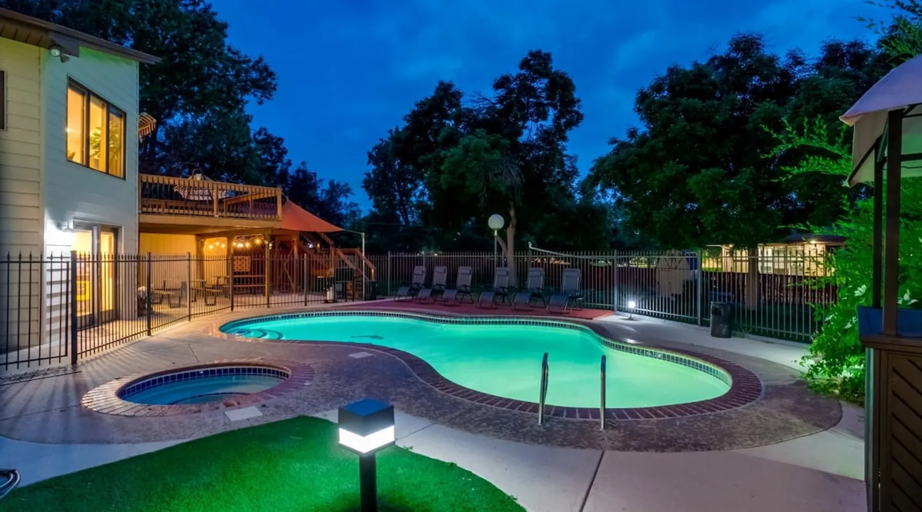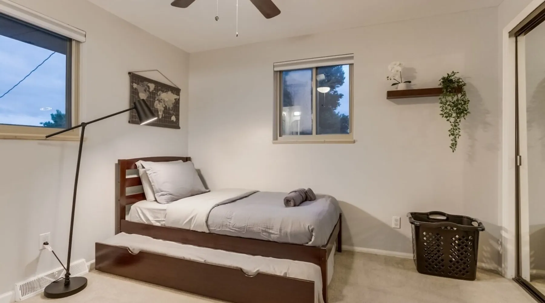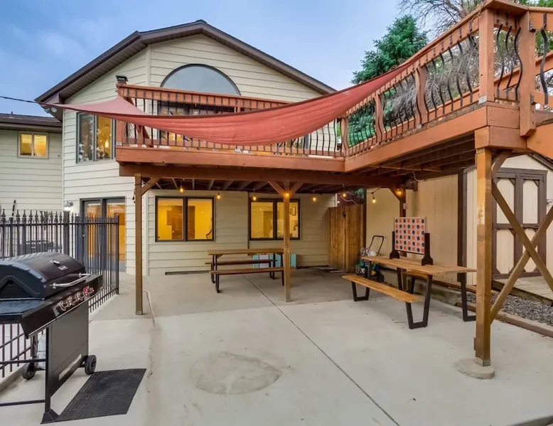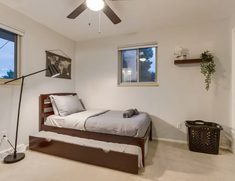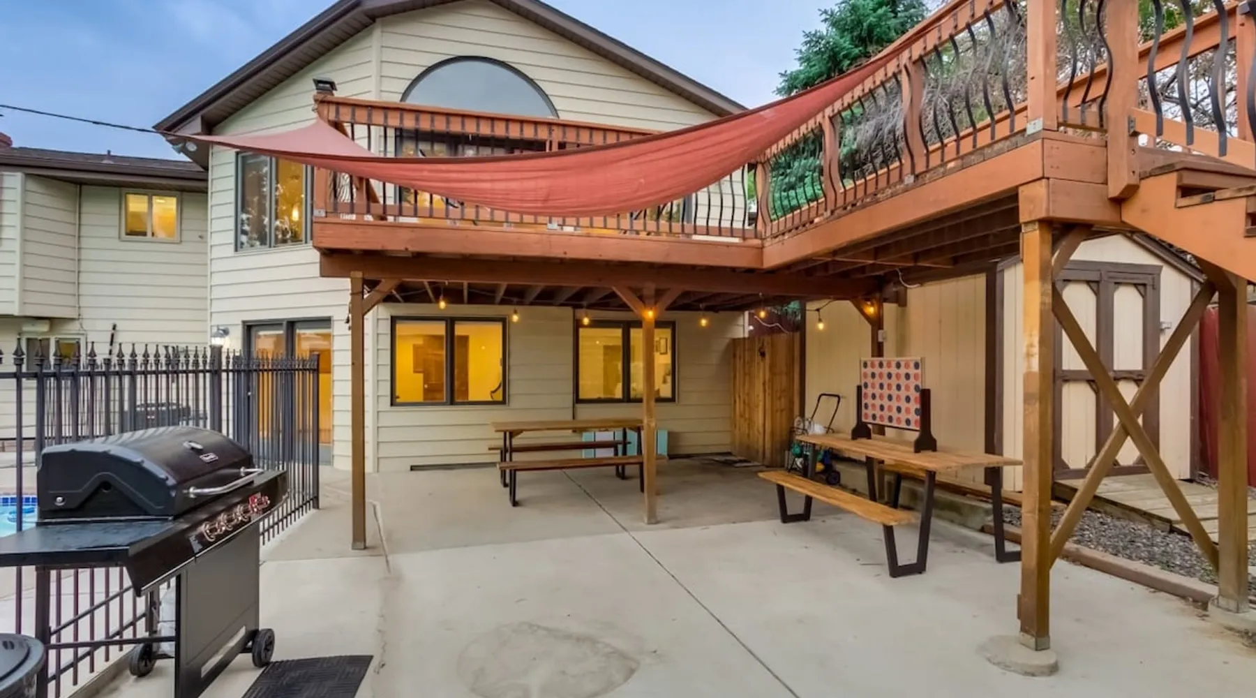 The Backyard Oasis is a bountiful home located on the edge of Arvada and Westminster, 20 minutes from Denver and 30 minutes from Boulder, we are focused on bringing together families through a quality space, a clean environment, and all that Arvada has to offer. The kitchen is fully stocked, there is more than enough room for everyone, brand new appliances, and every room was designed to make your stay as fun as it is comfortable. Fun, privacy, comfort, and space are what you will find here. The space ☆☆ BEDROOMS ☆☆ This home has 5 bedrooms and can accommodate up to 10 guests comfortably. There are a total of 3 Queen Beds and 4 twin beds Bedroom 1 - The stylish master bedroom with a comfortable Queen size bed and ample closet space is upstairs. Bedroom 2 – A large and beautiful bedroom offering a Queen bed and stylish design. Bedroom 3 – Queen size bed featured in this upstairs bedroom conveniently located near the entrance. Bedroom 4 – A comfortable room with a full size mirror and a double twin bed. Bedroom 5 - Located next the game room and includes the office space with a double twin bed set. ☆☆ BATHROOMS ☆☆ You'll find three clean and fully stocked bathrooms with bright lighting, large mirrors, and hotel-grade towels in this home. You'll find one walk-in shower, one bathtub/shower combo and a half bath. All showers are stocked with shampoo, conditioner, and body wash for your group's needs. ☆☆ KITCHEN & LOUNGE ☆☆ Prepare a quick snack or a large feast in the fully stocked kitchen. It features beautiful countertops and modern appliances, including a refrigerator, stove, oven, microwave, toaster, and coffee maker. The open-plan setting offers an unobstructed view out into both the living and dining areas. The space is perfect for enjoying a meal with your group and guests all together comfortably hosting a large group to enjoy time together! The room flows effortlessly into the spacious lounge, which is complete with plenty of couches and large windows letting in a lot of light. Plenty of great hangout spots throughout the house as well including 3 living rooms, a game room, a bar nook, and the outdoor space. Whether you want to open up your laptop to plan adventures for the day, host a dinner party, or just want to take things easy, this open concept living room gives you all the space you need. ☆☆ OUTSIDE SPACE ☆☆ The house includes plenty of outdoor seating, a grill, a hammock, a volleyball net, a small pool, and best of all a large and amazing pool. Light up the BBQ and enjoy the famous CO weather all together! There is ample parking in the driveway, garage, and on the street for up to 3 vehicles. **The pool will be open June until September 30th, weather permitting** KEY AMENITIES: ☀ 5 bedrooms – 7 Beds; 3 Queens, 2 sets of double twins ☀ 2.5 bathrooms; Walk-in shower and shower/tub combo ☀ 3 living rooms ☀ Game Room with Foosball + Arcade Machine ☀ Modern and socially designed living room lounge ☀ Outdoor Patio ☀ Hammock + Grill + Volleyball + Swing ☀ Large pool plus second, adjoining small pool (no hot tub) ☀ Large, efficient, washer/dryer ☀ 2 Bar areas ☀ 60” Smart TV upstairs ☀ 55” Smart TV downstairs ☀ Easy and simple automatic, self-check in process ☀ Room darkening curtains in all bedrooms ☀ For Children: Pack & Play, Changing Table. Experience Arvada with us & learn more below! Guest access You’ll have access to every room and feature of this home except the owner's closet. Make yourself at home; your hosts are just a phone call or text away if you have any questions or want recommendations for things to do nearby. There is a keypad on the front door for easy and secure access to the home. Other things to note ☆☆ IMPORTANT ☆☆ - This home includes a heated main pool and a side pool. The home does not include a hot tub. - Pool and small pool are closed for the Winter Months (October 20th - June 1st) - We have a NO PARTY Policy along with quiet hour and noise rules that are essential to respecting our neighbors. This home is in a residential area and being respectful to the neighbors is very important. Parties ad excessive noisy will be shut down, and possibly incur civil prosecution. If you are unsure if your group fits this description, please reach out to ask and we will be happy to help. Several days prior to check-in I will send you a link which contains an e-manual. In this manual you will find all necessary and relevant information relating to your stay. I have also included my suggestions for the best things to do around Denver, my favorite restaurants, hikes, nightlife, and much more! Please note that we have installed cameras outside of the property for safety purposes. There are no cameras inside of the property. There is noise detection software installed on the inside of the home. This device CANNOT record or hear anything that is said, its function is to alert us if noise above a certain decibel level is reached. Please note that smoking of any kind is forbidden inside and will result in a minimum fine of $1000. You are welcome to step on to the back patio and enjoy. Reservations may be subject to extra guest fees, as well as additional charges for optional services such as adding pets or requesting early check-ins. Once a week, one of our team members will stop by the property to put out the trash cans and or do the lawn + pool maintenance. They will NOT enter the home. This day may or may not fall during your stay.