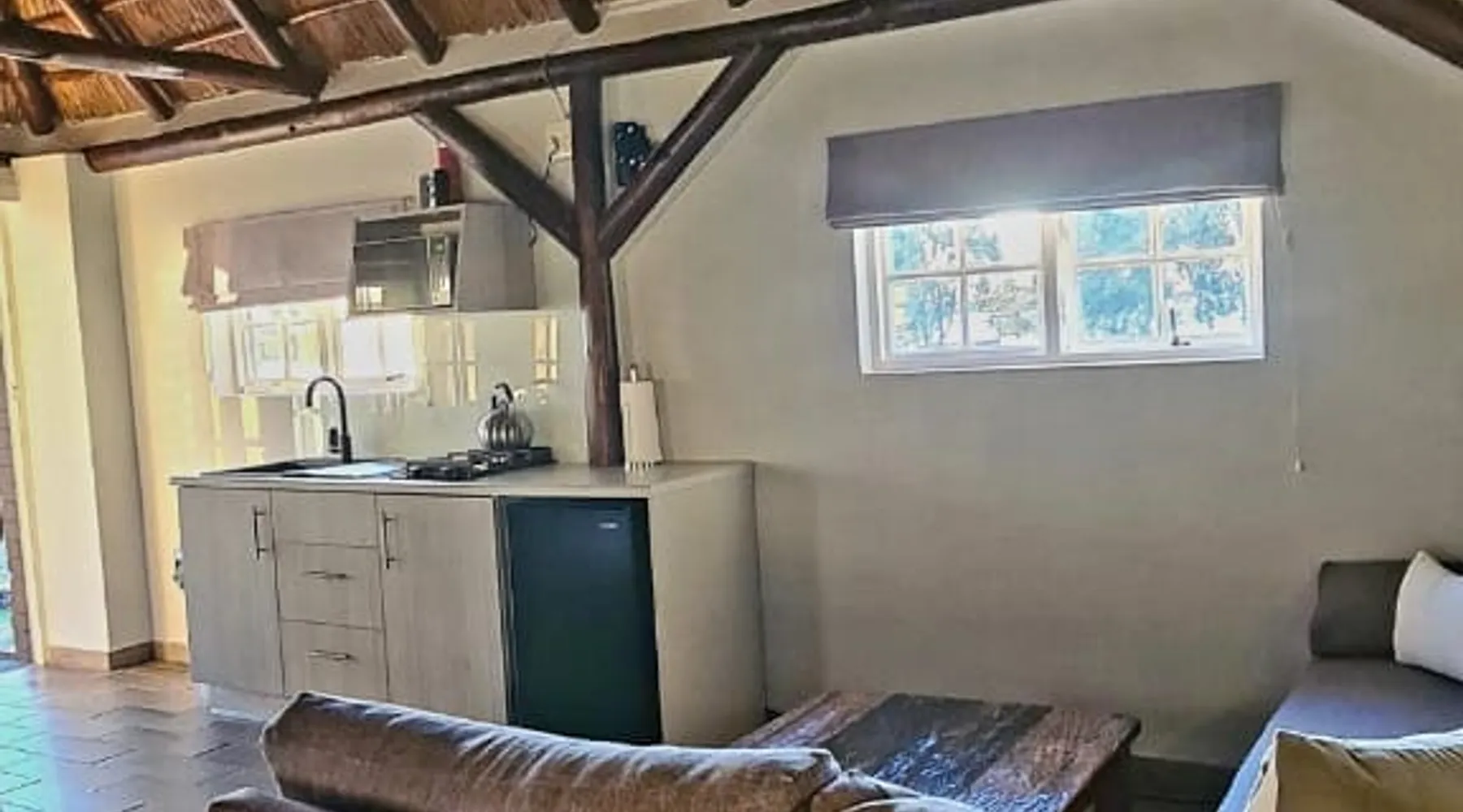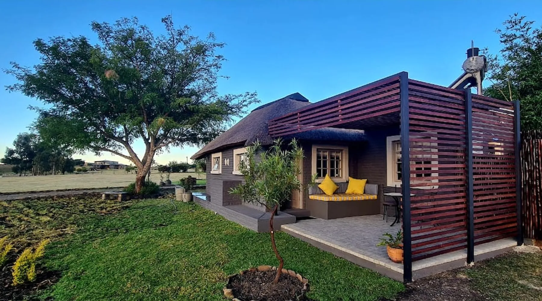 Extremely private with beautiful views of the dam and incredible sunsets. The space Cozy and comfortable space, private can accommodate a small family maximum of 4 Guest access Complete cottage, braai area and boma. Waterfront to dam Other things to note We are isolated so please bring all your supplies. Meals can be provided on request.