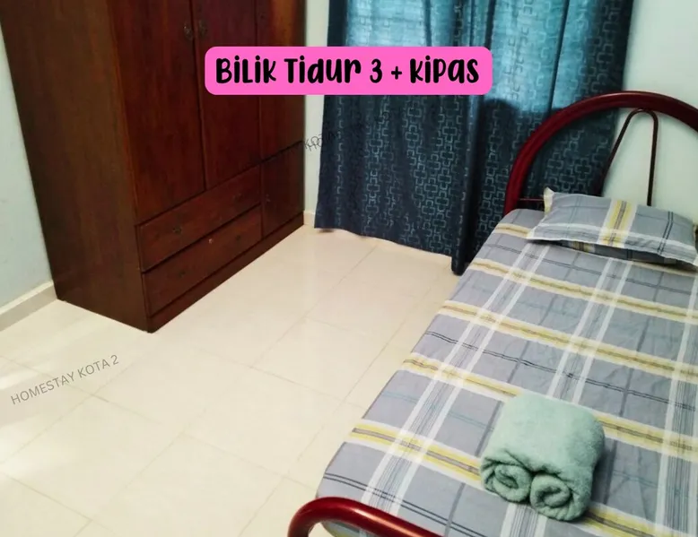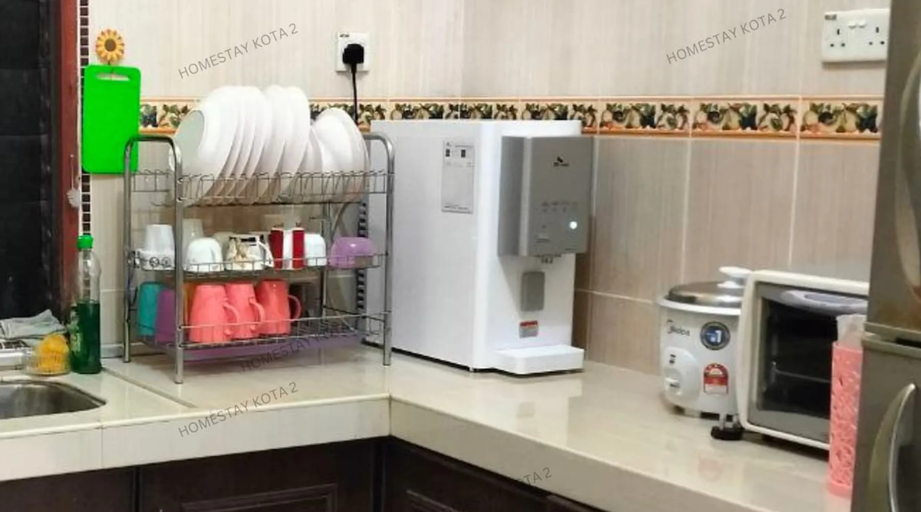 -3 bilik tidur 1 bilik tidur Queen (aircond + kipas) 1 bilik tidur Queen (aircond + kipas) 1 bilik tidur katil single (kipas) -2 bilik air -Ruang tamu dan ruang menonton tv (beraircond) -Ruang dapur Check in - 3.00 Petang Check out - 12.00 Tengahari *KEMUDAHAN YANG DISEDIAKAN* - Penapis air (SK Magic) - Peralatan asas dapur - Seterika - Peti ais - Periuk Nasi Elektrik - Mesin basuh - Tuala - Smart TV - Toto dan bantal - Selimut - Stove dan Gas - Sejadah