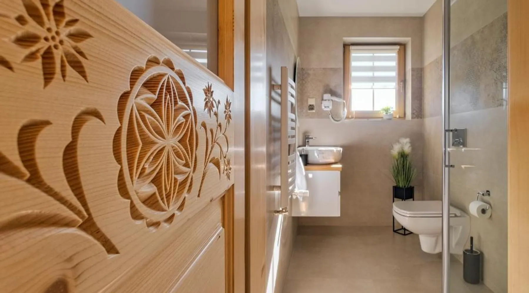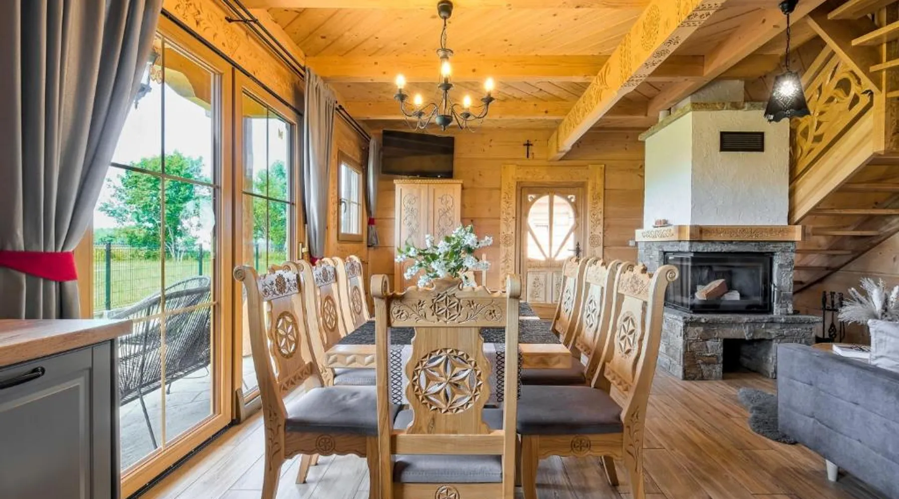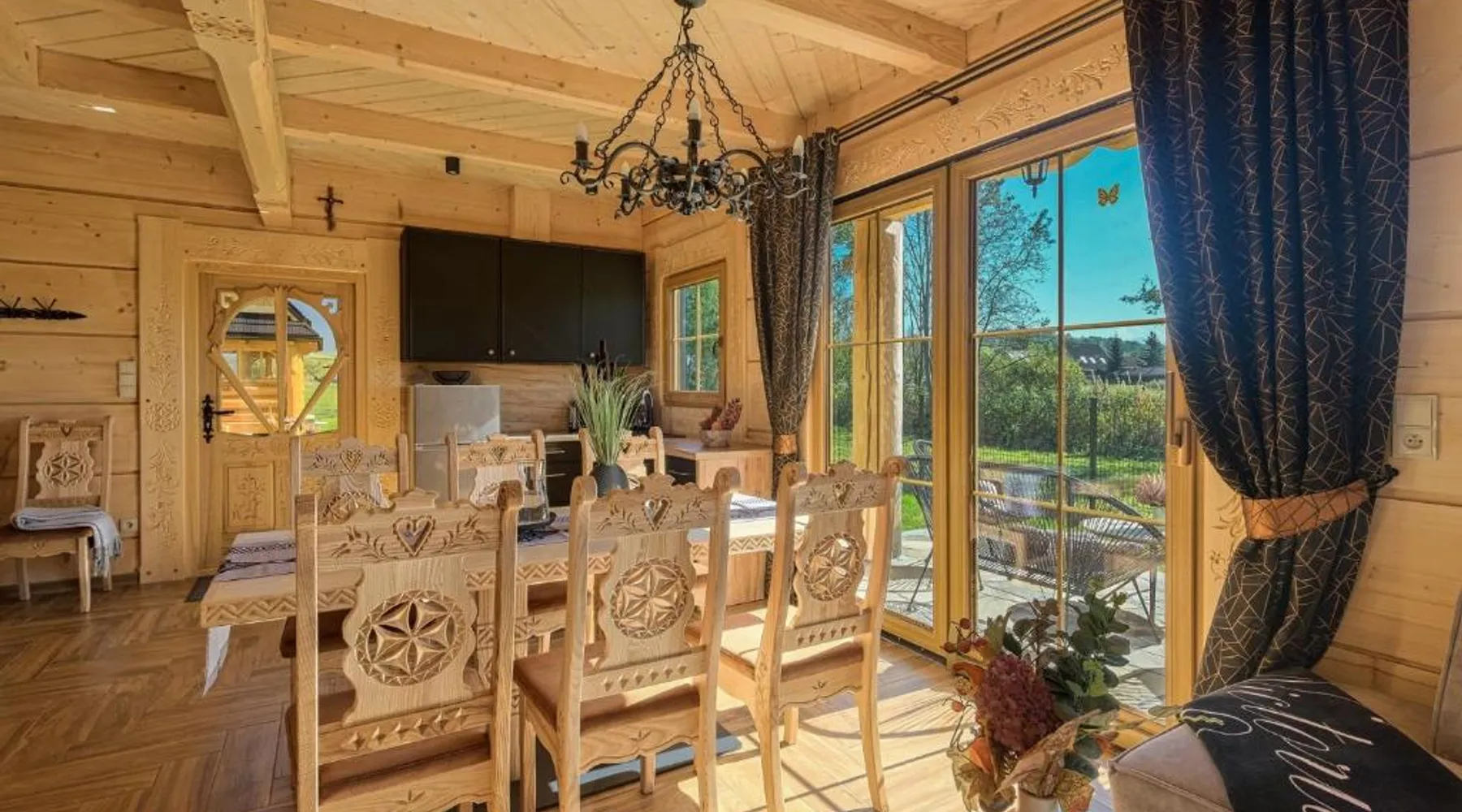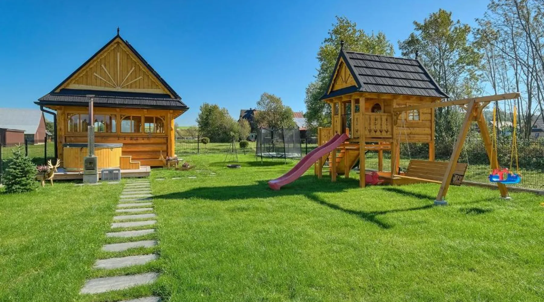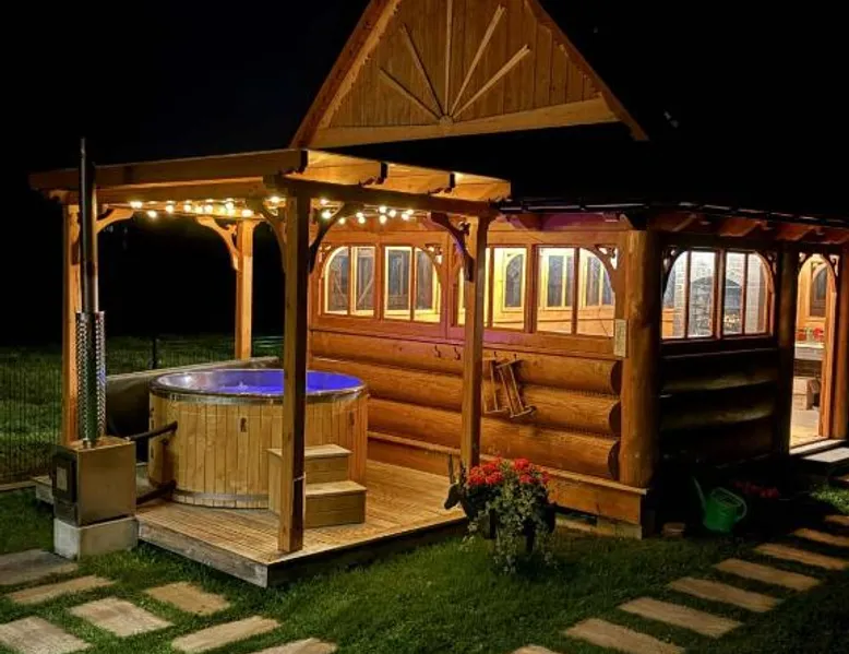Comfortable Accommodations: Domki Góralskie Anna Maria in Chochołów offers a holiday home with a sun terrace, garden, and free WiFi. The property features a lounge, outdoor fireplace, shared kitchen, and outdoor play area. Modern Amenities: Guests enjoy a private bathroom, kitchenette, and balcony with garden and mountain views. Additional facilities include a children's playground, ski storage, and free on-site private parking. Local Attractions: Located 11 mi from Gubalowka Mountain and 13 mi from Zakopane Railway Station, the property is close to Tatra National Park and other attractions. Activities such as skiing and cycling are available nearby. Highly Rated by Guests: Domki Góralskie Anna Maria receives high ratings for its comfortable accommodations and excellent facilities. Featuring a private entrance, this holiday home consists of 1 living room, 2 separate bedrooms and 2 bathrooms with a shower and a hairdryer. Guests will find a refrigerator, a dishwasher, kitchenware and a microwave in the fully equipped kitchen. The holiday home also offers a barbecue. Boasting a terrace with garden views, this holiday home also provides soundproof walls and a flat-screen TV. The unit offers 4 beds.