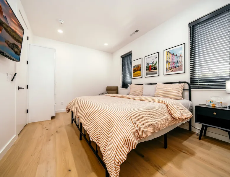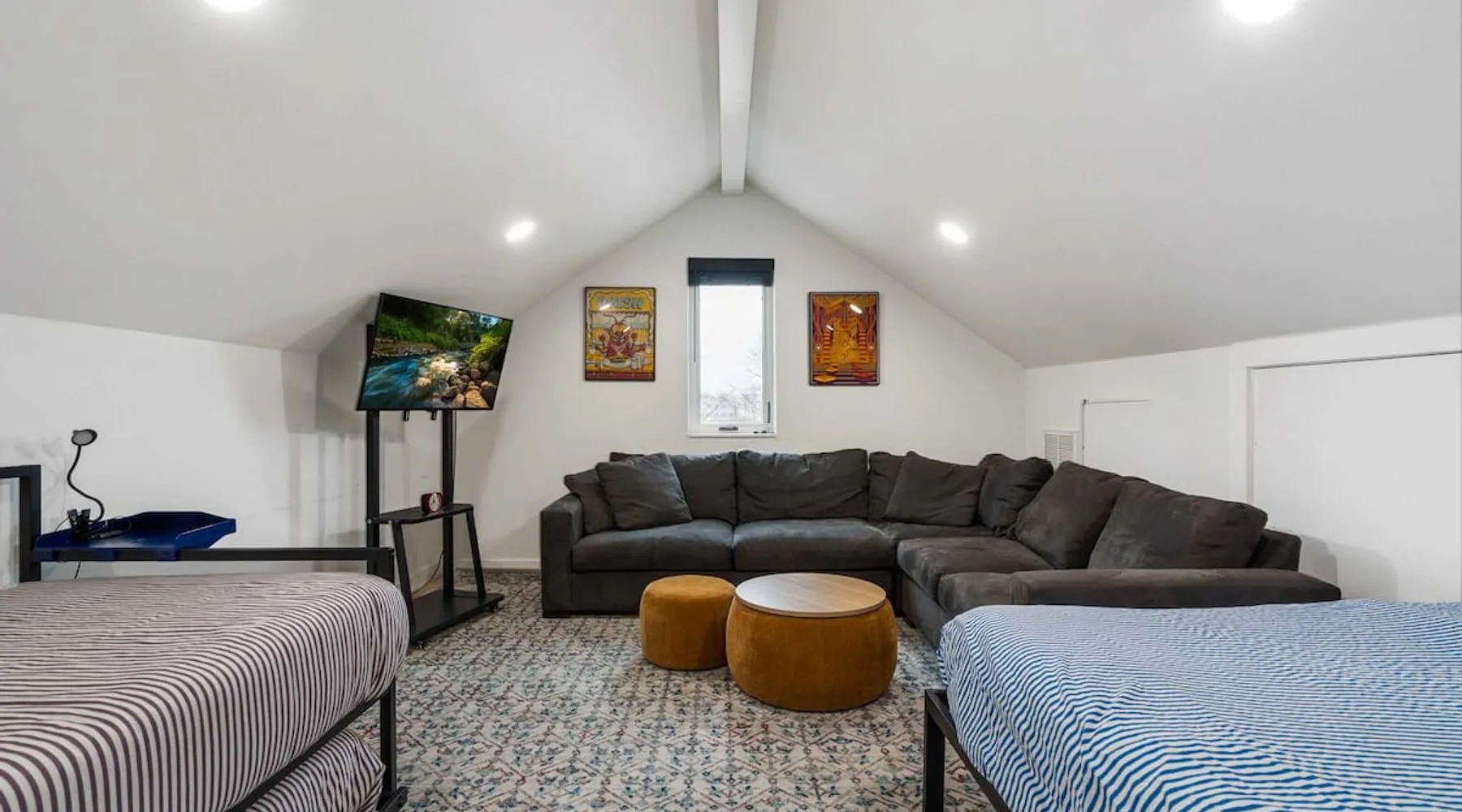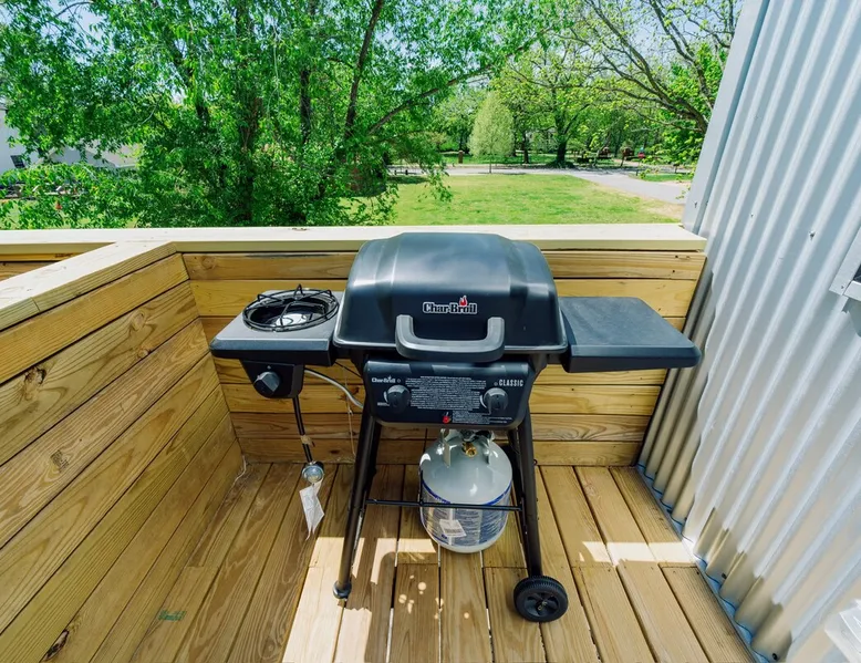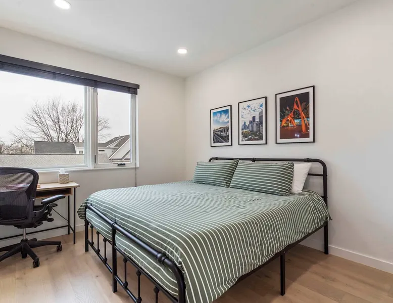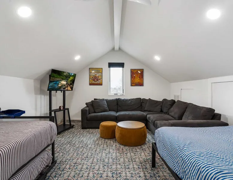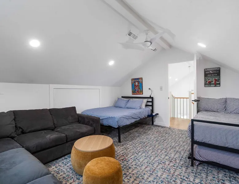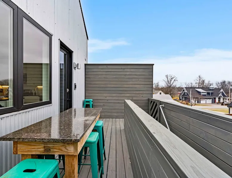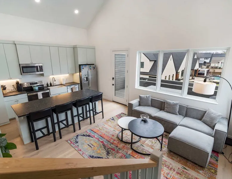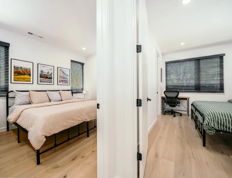 Discover the Bakewell Backhouse, a modern Norwegian style home located in the heart of Downtown Bentonville. Ascend a private, lit pathway to private balcony and home made for guests. Inside, enjoy high ceilings, abundant natural light, and treetop views. Experience Downtown Bentonville while enjoying a tranquil treehouse ambiance at the Bakewell Backhouse. We are Inclusive. All are welcome. The space Welcome to the "Bakewell Backhouse," a hidden sanctuary nestled within the heart of downtown Bentonville, just blocks to the square. Ascend a private, illuminated pathway that leads to your own lockable balcony, a haven for peaceful moments. Grill your favorites against the backdrop of scenic vistas or start your day with a cup of coffee amidst the treetops – a tranquil downtown retreat right at your doorstep. Step inside this immaculate abode to find a space where modern architecture and lofty ceilings unite. Sunlight filters through numerous windows, painting the interior with natural warmth and granting a magnificent view of the surrounding treetops and beautiful Downtown homes. The Bakewell Backhouse offers an upscale treehouse ambiance that soothes and inspires. The lower level is a haven of comfort, housing two bedrooms adorned with king beds for indulgent nights of rest. A cozy living room equipped with a smart TV invites relaxation, while an open kitchen boasts contemporary finishes to cater to culinary adventures. An array of games and books promises entertainment and leisure. Upstairs, a bedroom, adorned with two full beds and a twin trundle, perfect for groups of up to four. An additional smart TV, paired with comfortable sofas, creates a delightful space for unwinding. Crafted with a modern Norwegian aesthetic, this retreat is designed exclusively for guests. Privacy is paramount, with dedicated parking, a gated balcony, and complete separation from the main house through a charming terrace and breezeway. For outdoor enthusiasts, bicycle storage is conveniently located within the carport. The "Bakewell Backhouse" is more than an Airbnb; it's a haven where architecture, nature, and comfort intertwine seamlessly, creating an unforgettable escape to remember. Guest access House Manual: Please park only in the carport or gravel space next to the carport. The garage and driveway are used by the front house. Other things to note Heads Up About Downtown Vibes This home is located in the heart of one of the nation’s fastest-growing regions,a small town with big-city energy! Being downtown means you’re steps from the action, which we love, but it also means there’s always the potential for city sounds, neighbors, or nearby construction. While we can’t guarantee total silence, we do want you to be comfortable. If you experience any excessive noise outside of the city's quiet hours (10 PM – 7 AM), please don’t hesitate to reach out to our team. We’re here to help make your stay as peaceful as possible. Nothing ruins a getaway like a rushed Sunday morning. Sleep in, sip your coffee, or hit the trails one last time, because Pink Door is a vibe, and early Sunday checkouts are not it. Enjoy a complimentary noon checkout on Sundays!