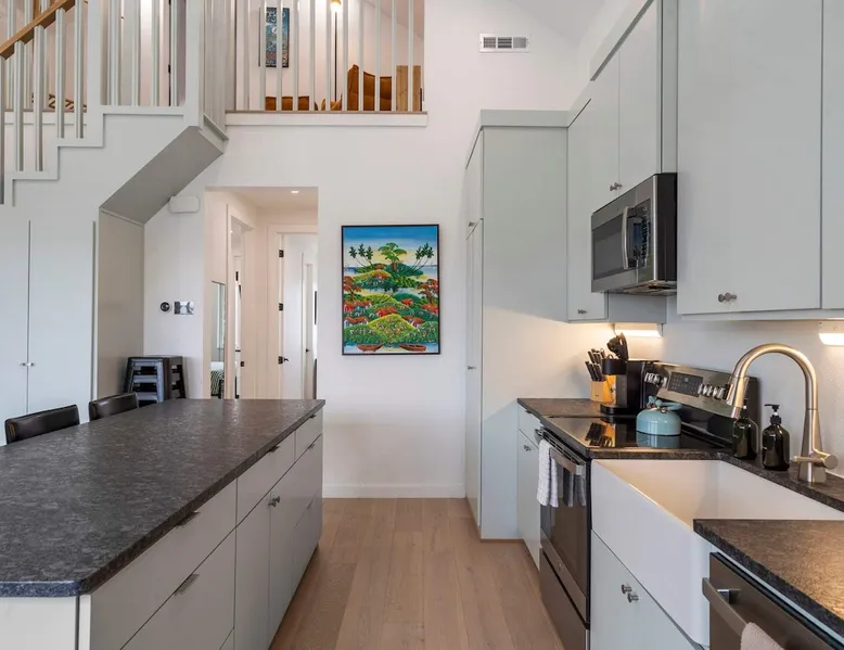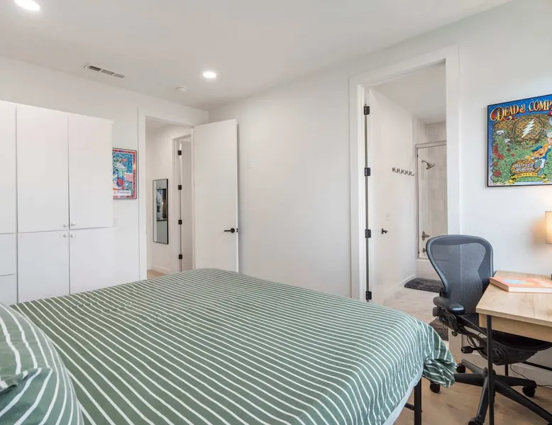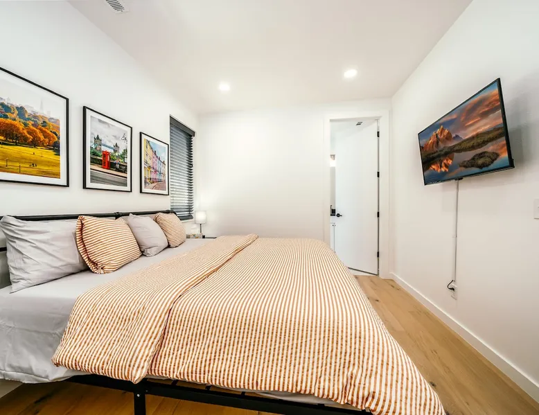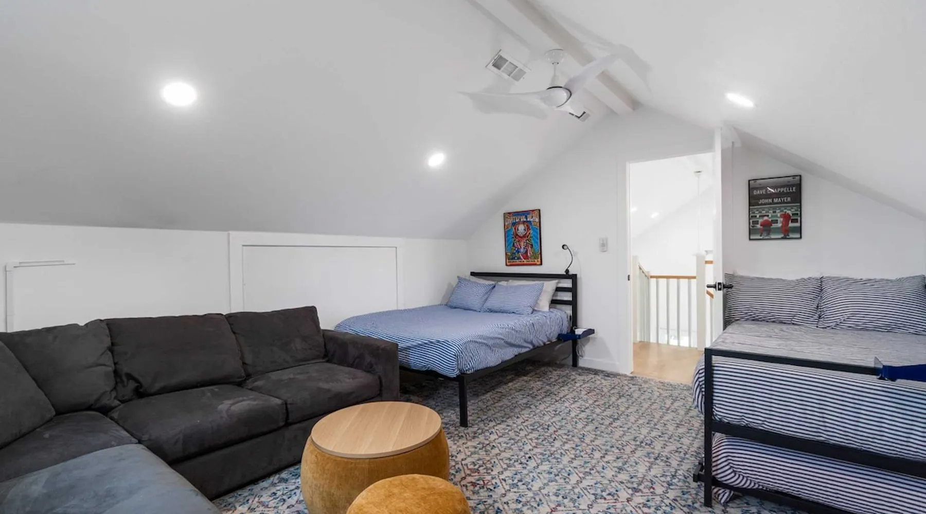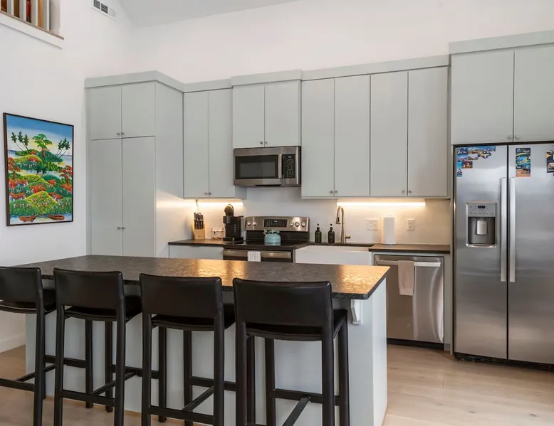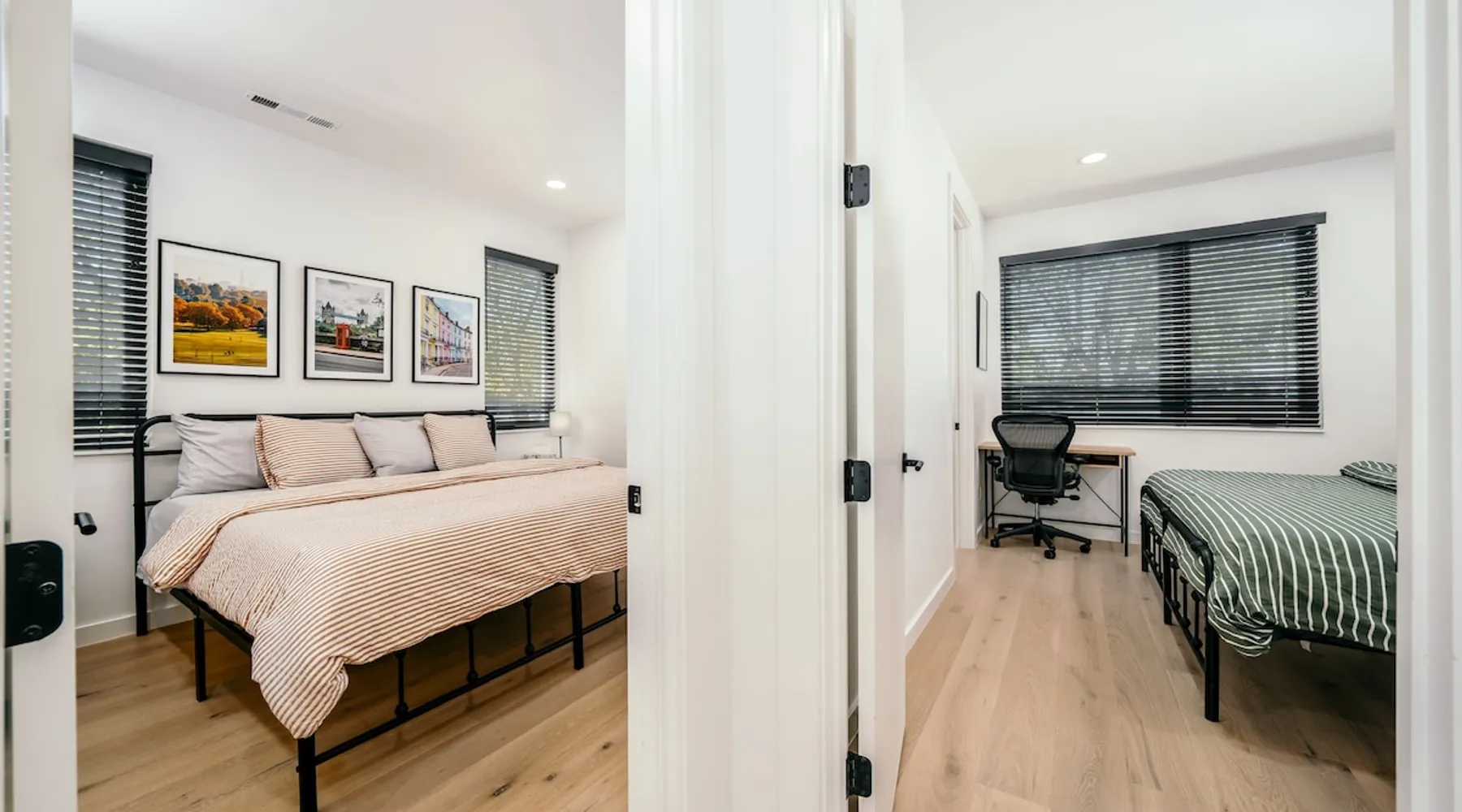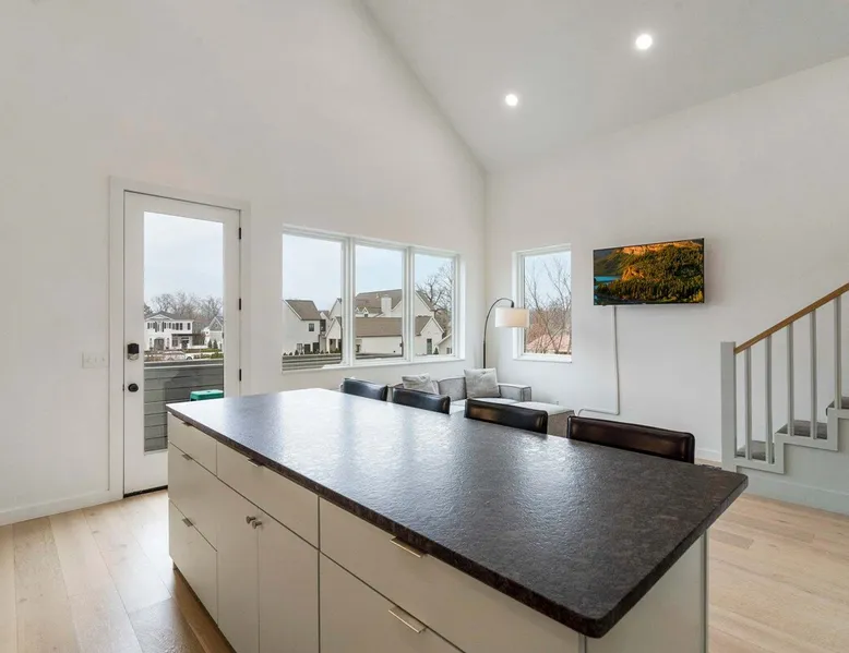 Discover the Bakewell Backhouse, a modern Norwegian style home located in the heart of Downtown Bentonville. Ascend a private, lit pathway to private balcony and home made for guests. Inside, enjoy high ceilings, abundant natural light, and treetop views. Experience Downtown Bentonville while enjoying a tranquil treehouse ambiance at the Bakewell Backhouse. We are Inclusive. All are welcome. The space Welcome to the "Bakewell Backhouse," a hidden sanctuary nestled within the heart of downtown Bentonville, just blocks to the square. Ascend a private, illuminated pathway that leads to your own lockable balcony, a haven for peaceful moments. Grill your favorites against the backdrop of scenic vistas or start your day with a cup of coffee amidst the treetops – a tranquil downtown retreat right at your doorstep. Step inside this immaculate abode to find a space where modern architecture and lofty ceilings unite. Sunlight filters through numerous windows, painting the interior with natural warmth and granting a magnificent view of the surrounding treetops and beautiful Downtown homes. The Bakewell Backhouse offers an upscale treehouse ambiance that soothes and inspires. The lower level is a haven of comfort, housing two bedrooms adorned with king beds for indulgent nights of rest. A cozy living room equipped with a smart TV invites relaxation, while an open kitchen boasts contemporary finishes to cater to culinary adventures. An array of games and books promises entertainment and leisure. Upstairs, a bedroom, adorned with two full beds and a twin trundle, perfect for groups of up to four. An additional smart TV, paired with comfortable sofas, creates a delightful space for unwinding. Crafted with a modern Norwegian aesthetic, this retreat is designed exclusively for guests. Privacy is paramount, with dedicated parking, a gated balcony, and complete separation from the main house through a charming terrace and breezeway. For outdoor enthusiasts, bicycle storage is conveniently located within the carport. The "Bakewell Backhouse" is more than an Airbnb; it's a haven where architecture, nature, and comfort intertwine seamlessly, creating an unforgettable escape to remember. Guest access House Manual: Please park only in the carport or gravel space next to the carport. The garage and driveway are used by the front house. Other things to note Heads Up About Downtown Vibes This home is located in the heart of one of the nation’s fastest-growing regions,a small town with big-city energy! Being downtown means you’re steps from the action, which we love, but it also means there’s always the potential for city sounds, neighbors, or nearby construction. While we can’t guarantee total silence, we do want you to be comfortable. If you experience any excessive noise outside of the city's quiet hours (10 PM – 7 AM), please don’t hesitate to reach out to our team. We’re here to help make your stay as peaceful as possible. Nothing ruins a getaway like a rushed Sunday morning. Sleep in, sip your coffee, or hit the trails one last time, because Pink Door is a vibe, and early Sunday checkouts are not it. Enjoy a complimentary noon checkout on Sundays!