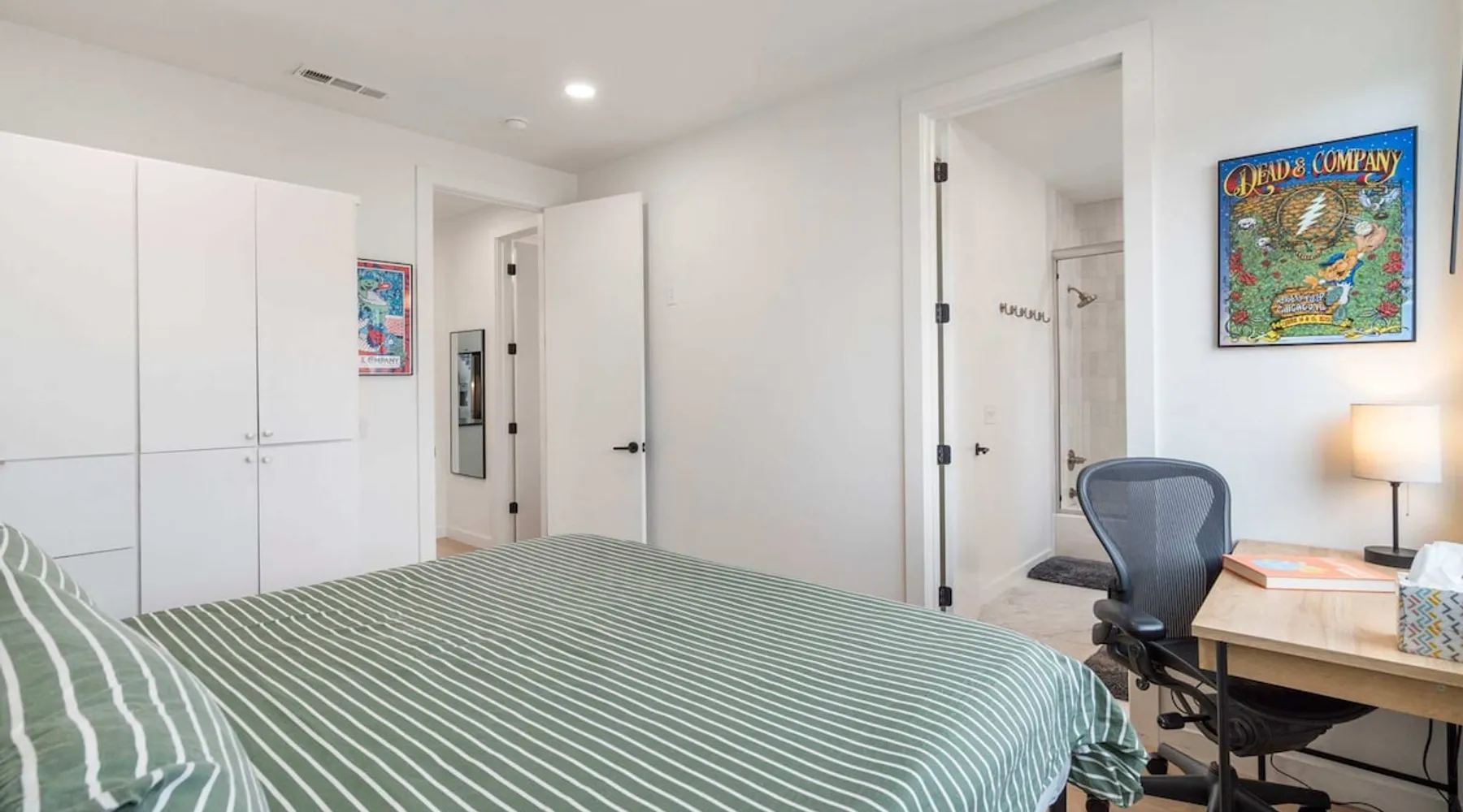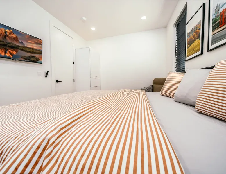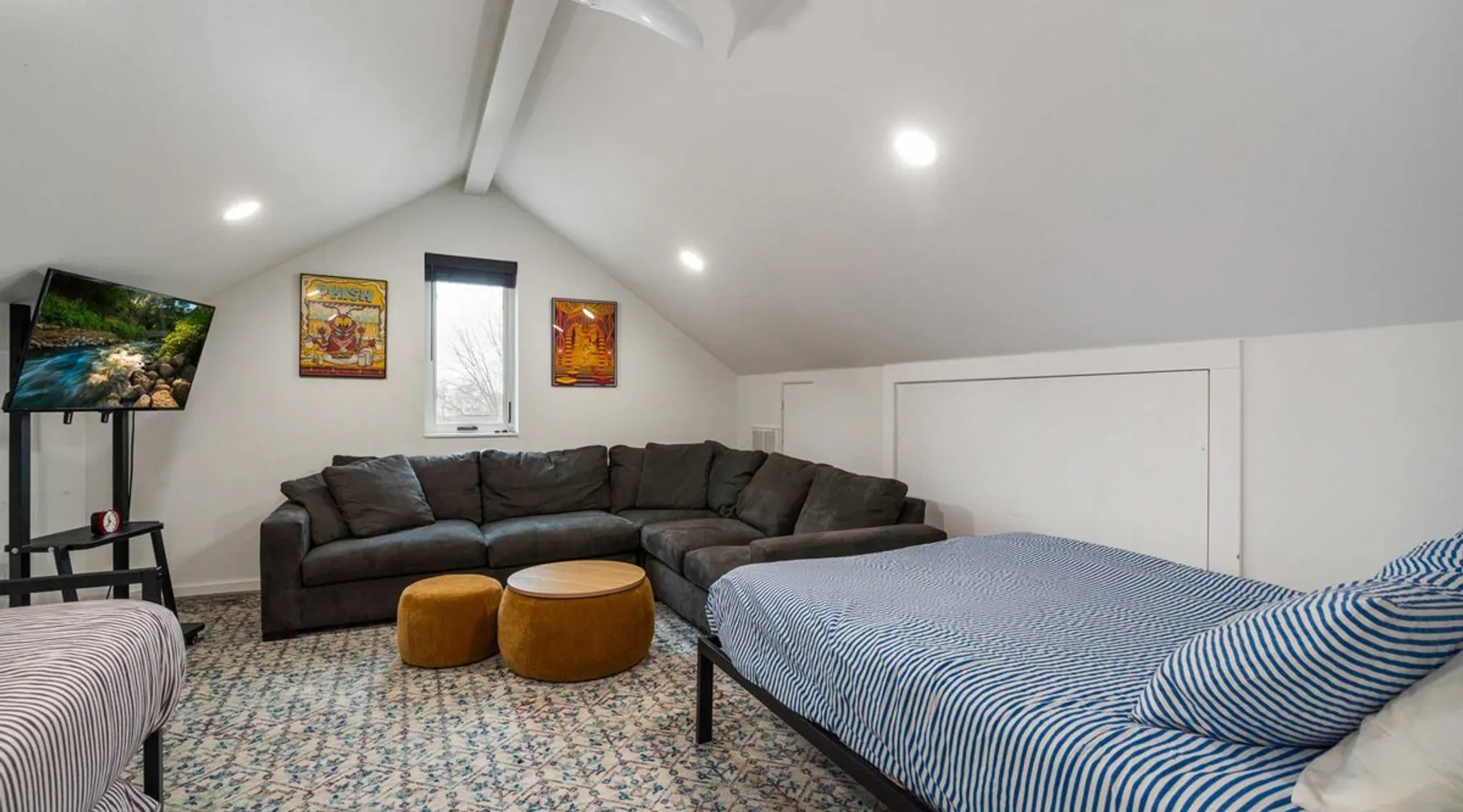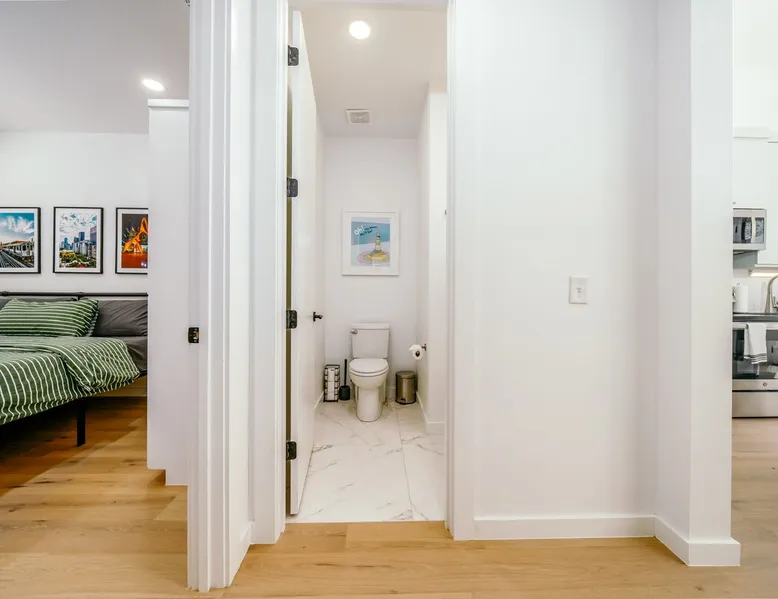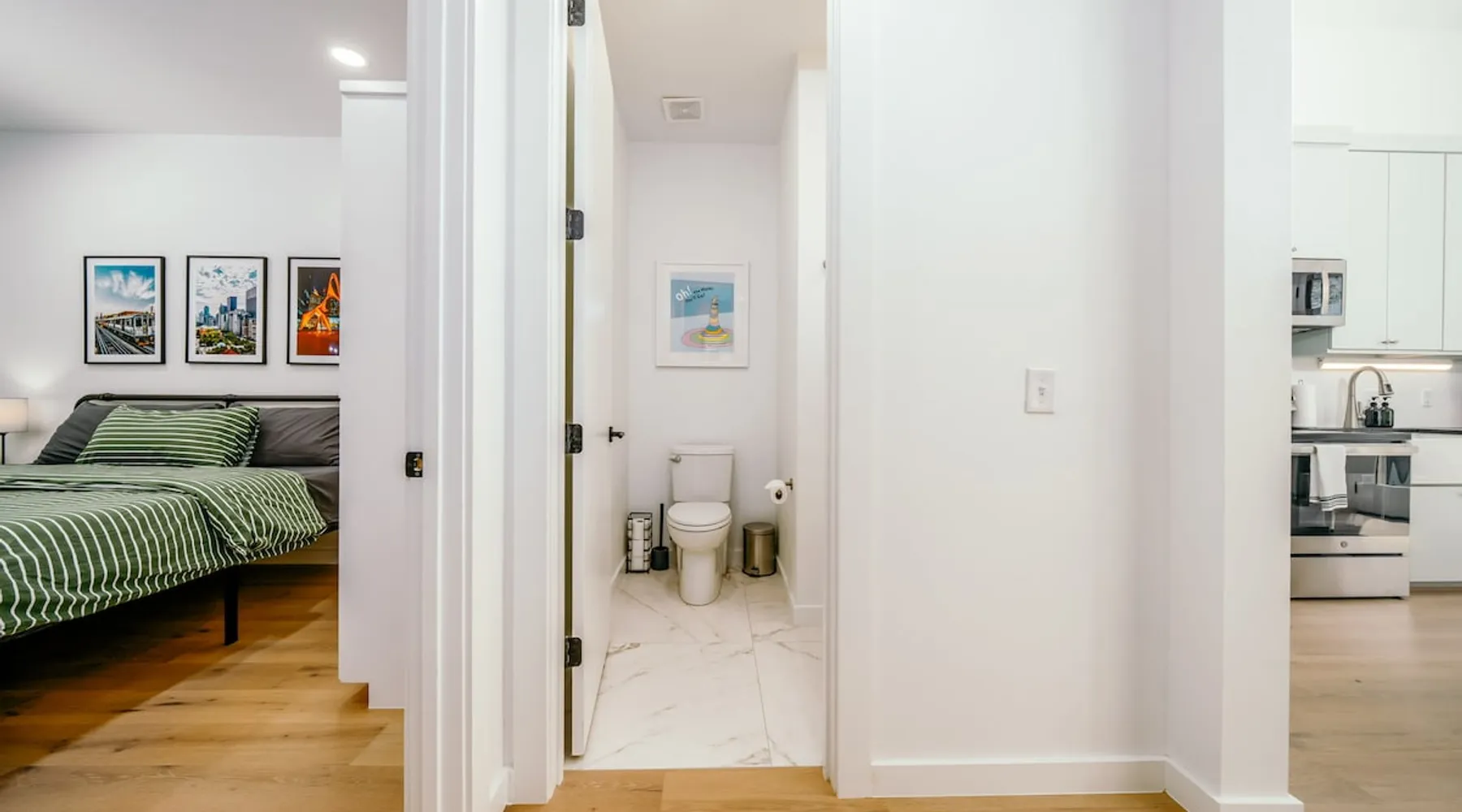 Discover the Bakewell Backhouse, a modern Norwegian style home located in the heart of Downtown Bentonville. Ascend a private, lit pathway to private balcony and home made for guests. Inside, enjoy high ceilings, abundant natural light, and treetop views. Experience Downtown Bentonville while enjoying a tranquil treehouse ambiance at the Bakewell Backhouse. We are Inclusive. All are welcome. The space Welcome to the "Bakewell Backhouse," a hidden sanctuary nestled within the heart of downtown Bentonville, just blocks to the square. Ascend a private, illuminated pathway that leads to your own lockable balcony, a haven for peaceful moments. Grill your favorites against the backdrop of scenic vistas or start your day with a cup of coffee amidst the treetops – a tranquil downtown retreat right at your doorstep. Step inside this immaculate abode to find a space where modern architecture and lofty ceilings unite. Sunlight filters through numerous windows, painting the interior with natural warmth and granting a magnificent view of the surrounding treetops and beautiful Downtown homes. The Bakewell Backhouse offers an upscale treehouse ambiance that soothes and inspires. The lower level is a haven of comfort, housing two bedrooms adorned with king beds for indulgent nights of rest. A cozy living room equipped with a smart TV invites relaxation, while an open kitchen boasts contemporary finishes to cater to culinary adventures. An array of games and books promises entertainment and leisure. Upstairs, a bedroom, adorned with two full beds and a twin trundle, perfect for groups of up to four. An additional smart TV, paired with comfortable sofas, creates a delightful space for unwinding. Crafted with a modern Norwegian aesthetic, this retreat is designed exclusively for guests. Privacy is paramount, with dedicated parking, a gated balcony, and complete separation from the main house through a charming terrace and breezeway. For outdoor enthusiasts, bicycle storage is conveniently located within the carport. The "Bakewell Backhouse" is more than an Airbnb; it's a haven where architecture, nature, and comfort intertwine seamlessly, creating an unforgettable escape to remember. Guest access House Manual: Please park only in the carport or gravel space next to the carport. The garage and driveway are used by the front house. Other things to note Heads Up About Downtown Vibes This home is located in the heart of one of the nation’s fastest-growing regions,a small town with big-city energy! Being downtown means you’re steps from the action, which we love, but it also means there’s always the potential for city sounds, neighbors, or nearby construction. While we can’t guarantee total silence, we do want you to be comfortable. If you experience any excessive noise outside of the city's quiet hours (10 PM – 7 AM), please don’t hesitate to reach out to our team. We’re here to help make your stay as peaceful as possible. Nothing ruins a getaway like a rushed Sunday morning. Sleep in, sip your coffee, or hit the trails one last time, because Pink Door is a vibe, and early Sunday checkouts are not it. Enjoy a complimentary noon checkout on Sundays!