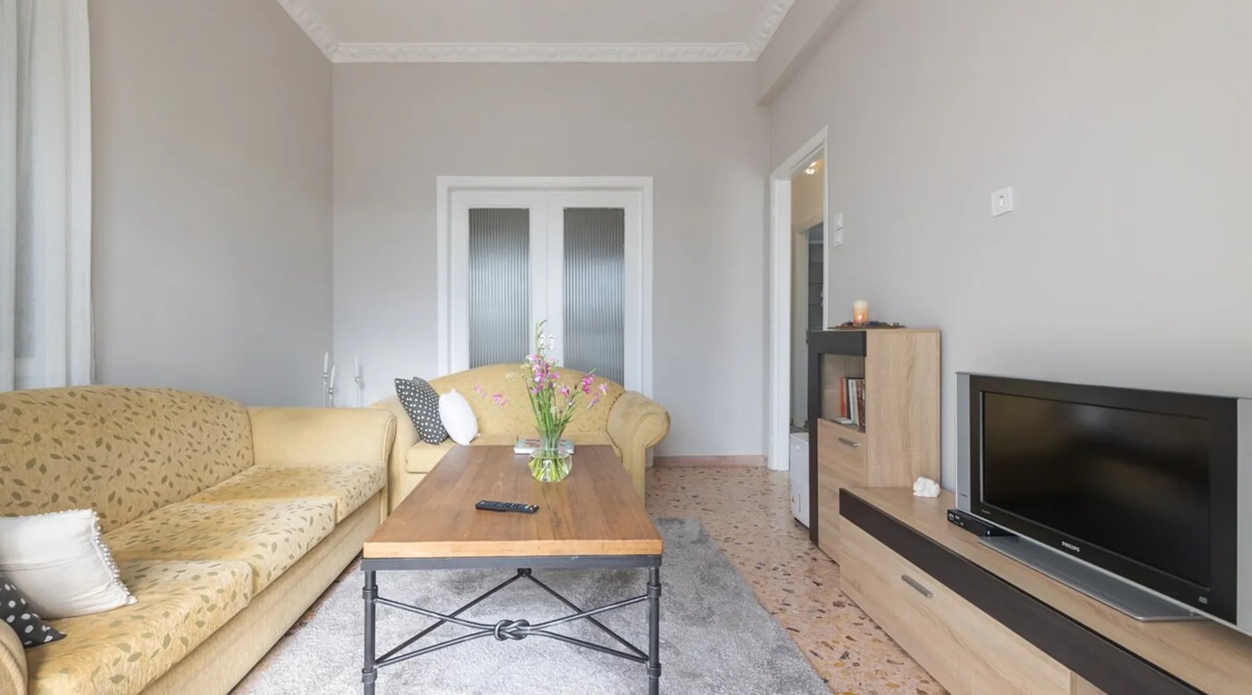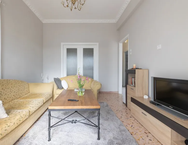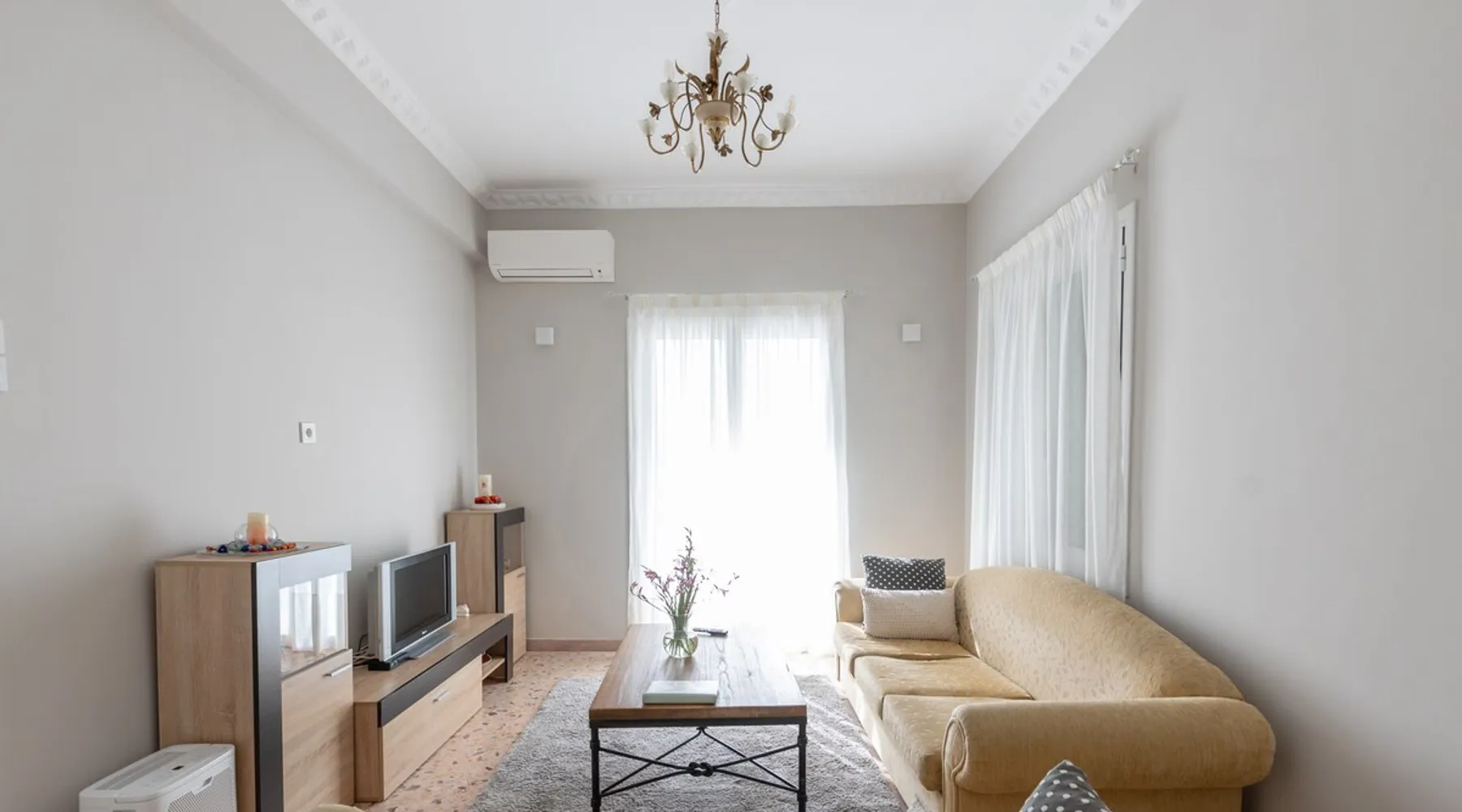 Two bedroom apartment next to the church of Ypapanti. Air conditioning in bedrooms and living room. The apartment is on the first floor. Registration Details 00001918960